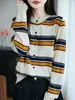 Cárdigan de Punto de Lana Merino Fina de Otoño Temprano 2025 con Cuello Redondo y Manga Larga para Mujer, Bloque de Color, Holgado, Versátil, Top con Temperamento