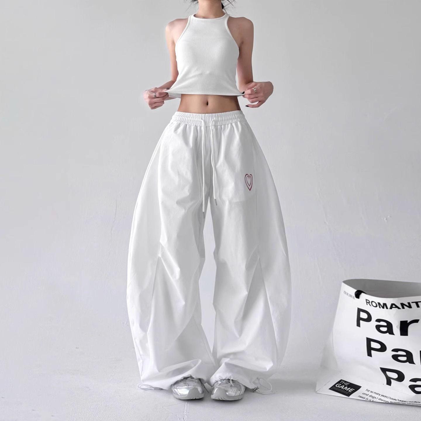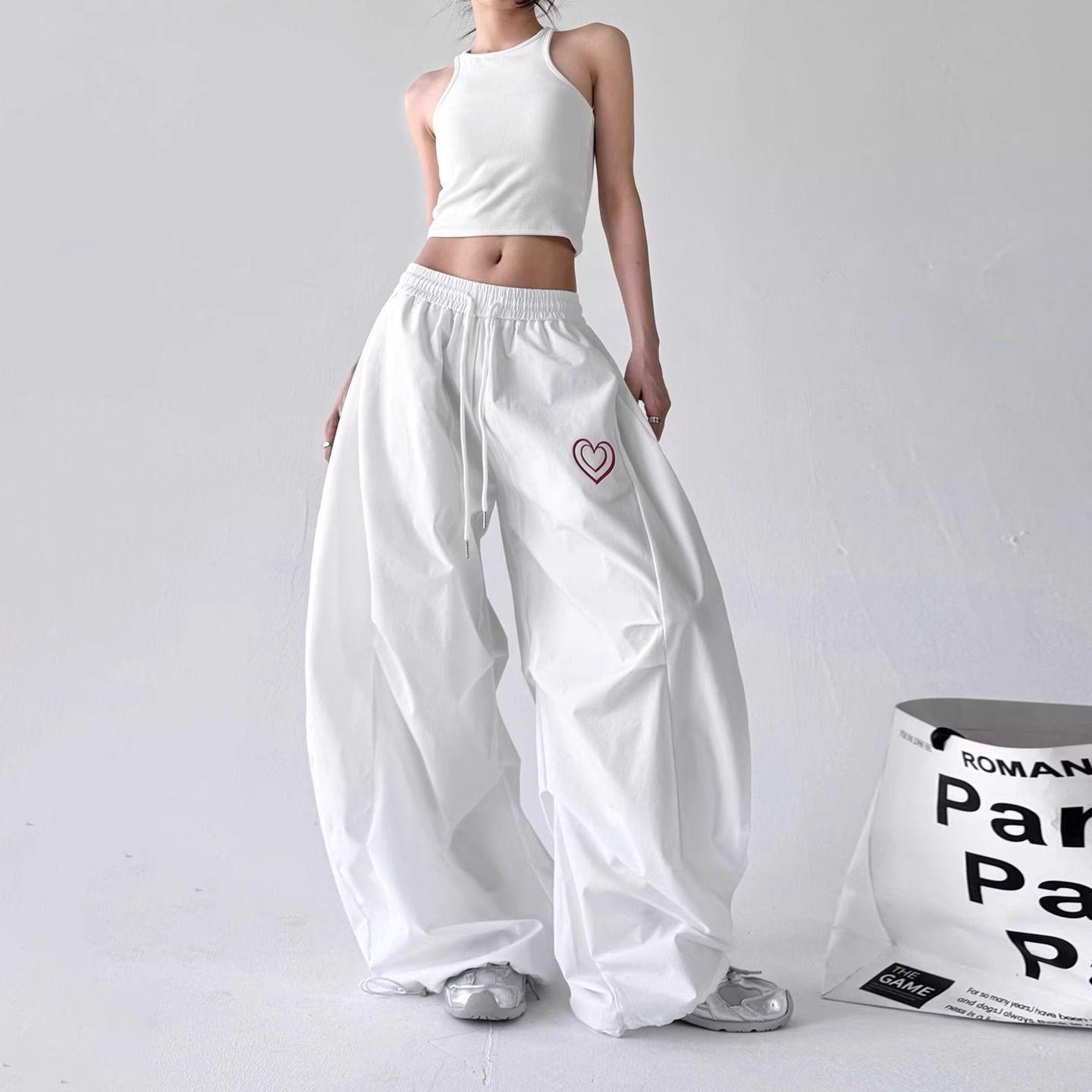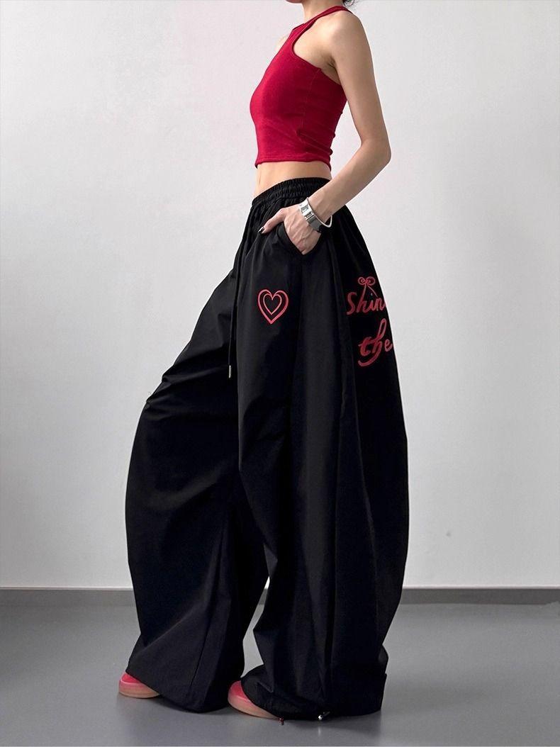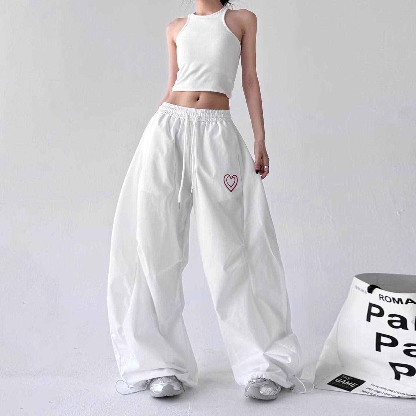 Pantalones casuales con diseño de corazón y letras para mujer, verano 2025, nuevos, hip-hop, secado rápido, street dance, pierna recta, pierna ancha, pantalones largos