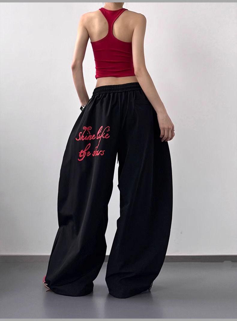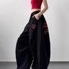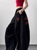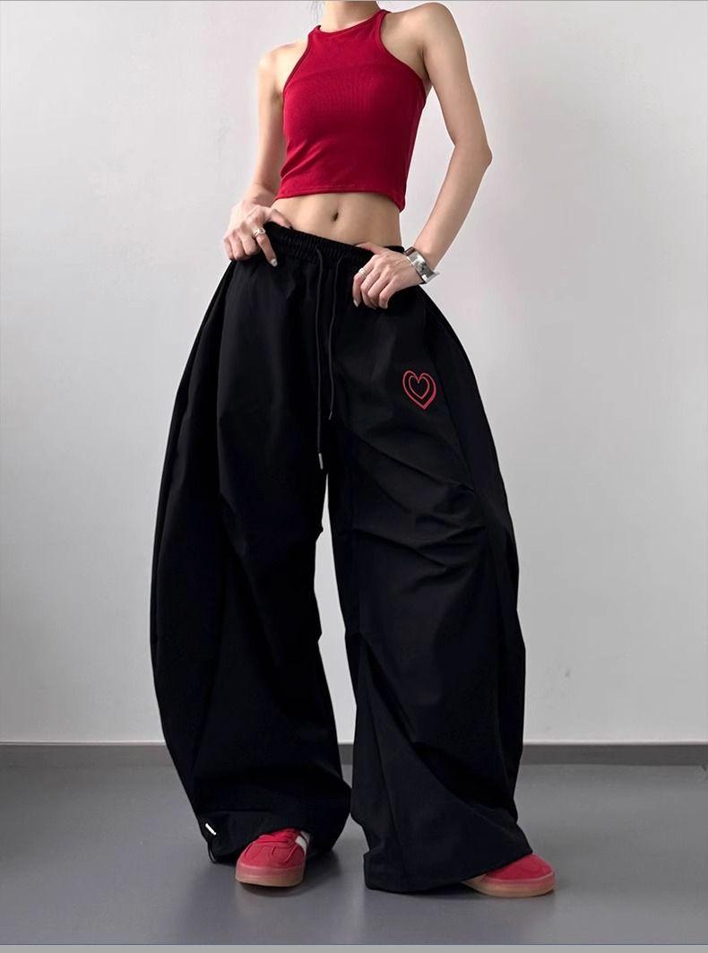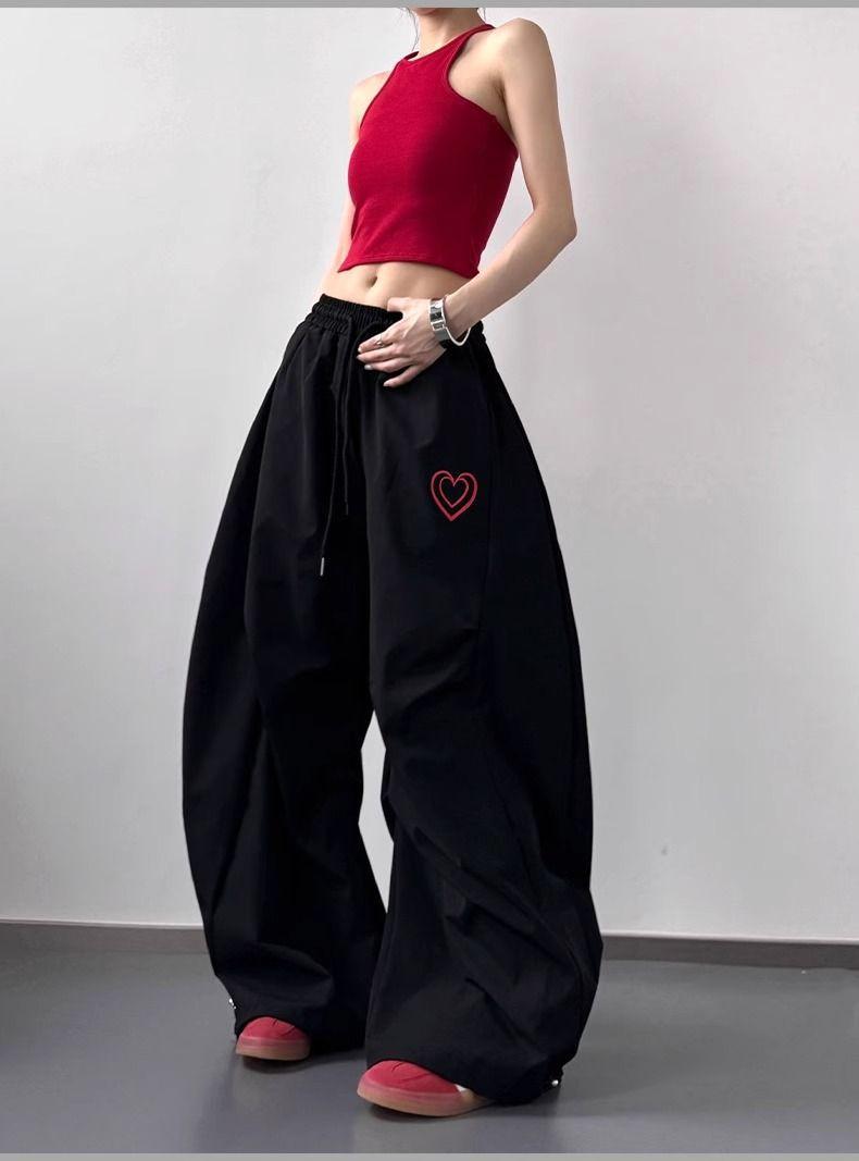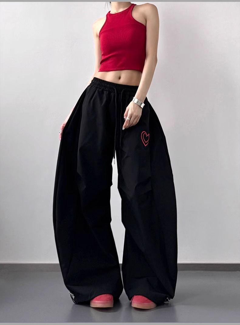 Pantalones casuales con diseño de corazón y letras para mujer, verano 2025, nuevos, hip-hop, secado rápido, street dance, pierna recta, pierna ancha, pantalones largos
