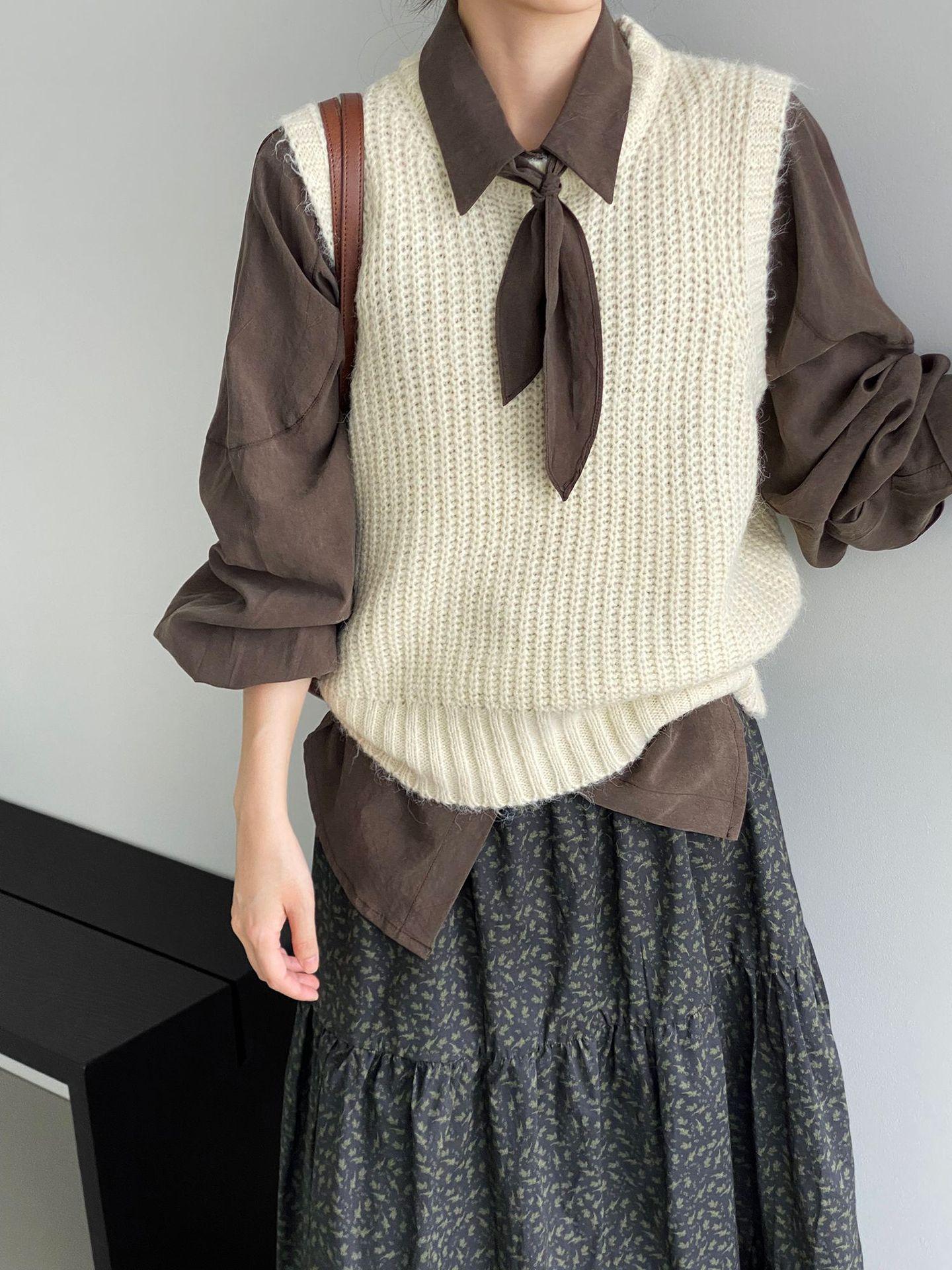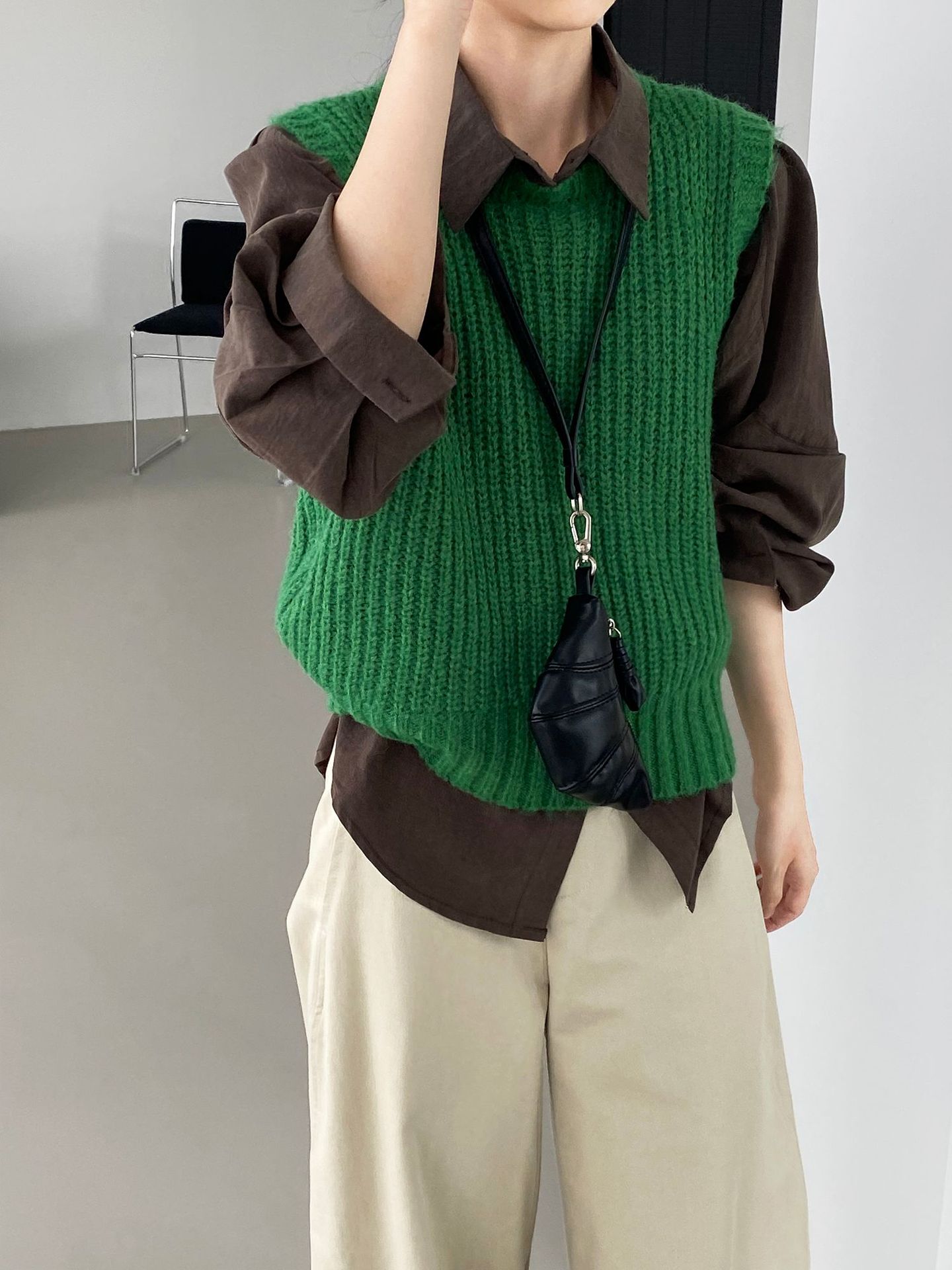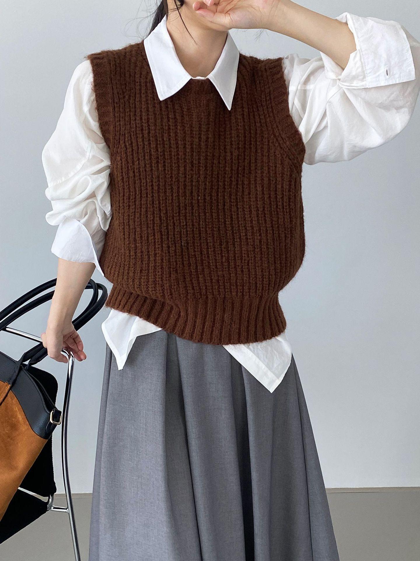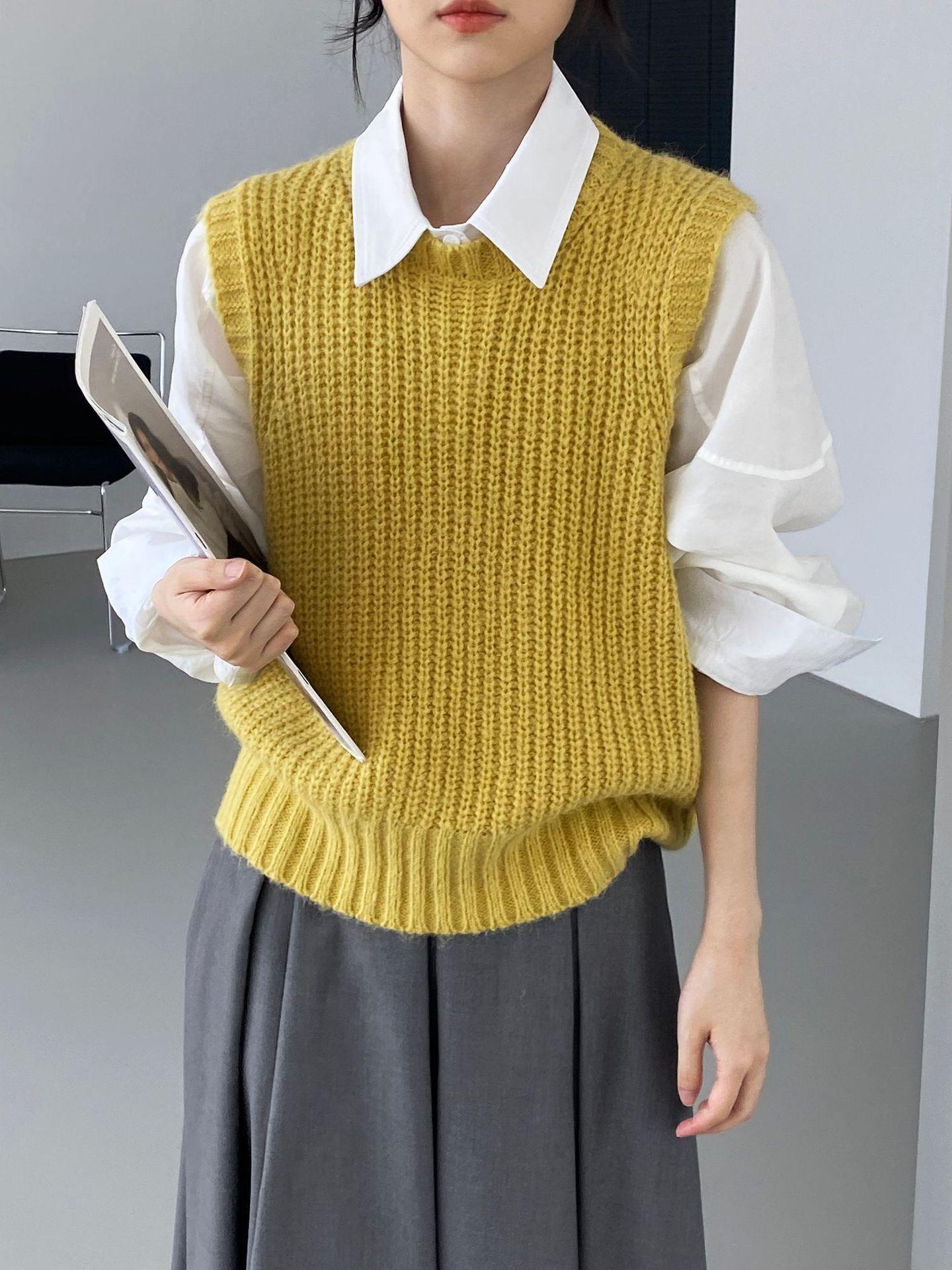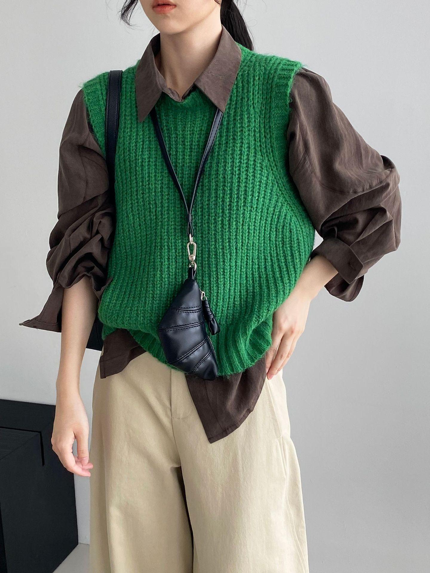 ¡Entonces recomienda el verde! Chaleco de punto de cuello redondo en capas para otoño/invierno para mujer, estilo coreano versátil Y1254