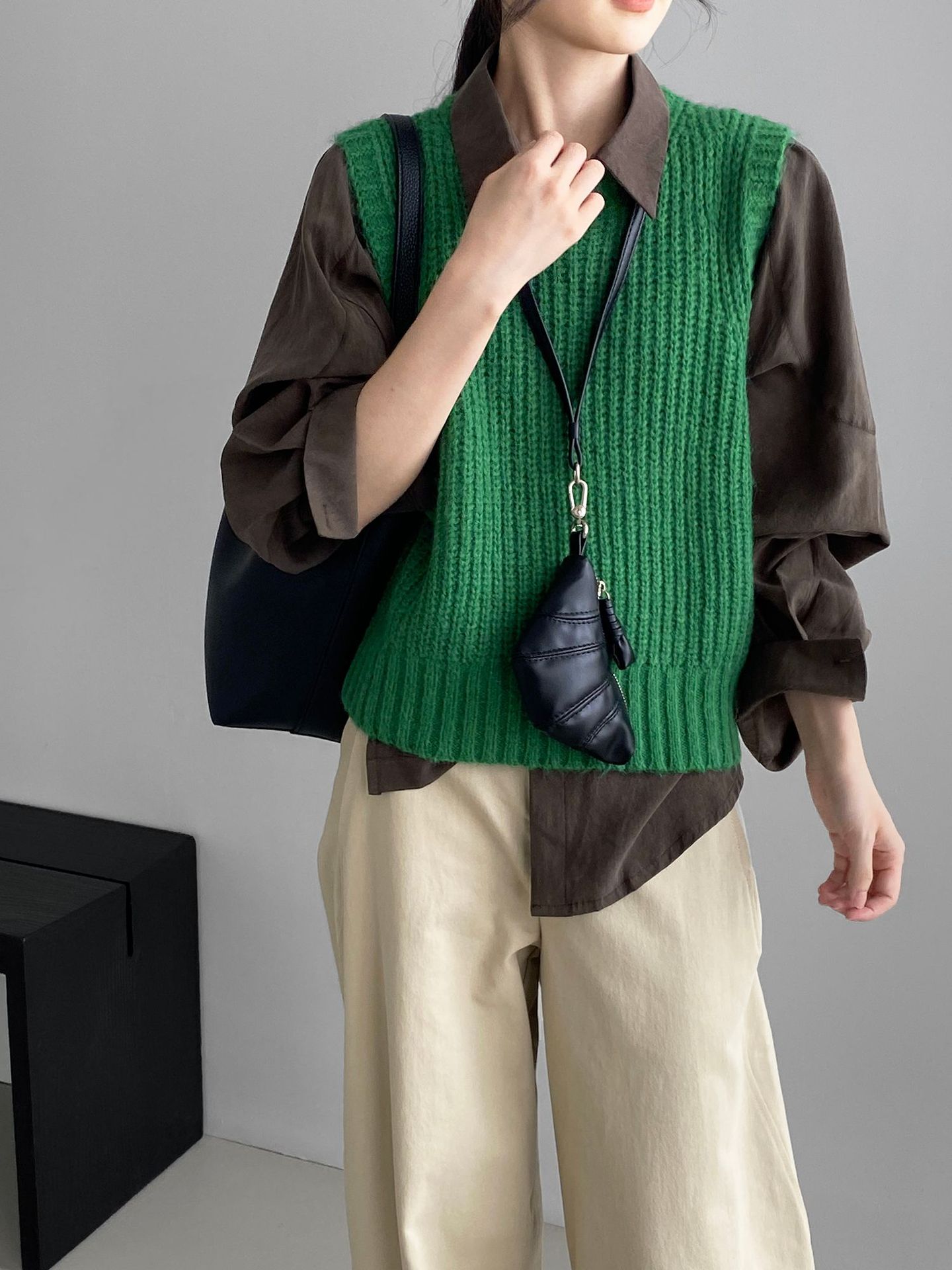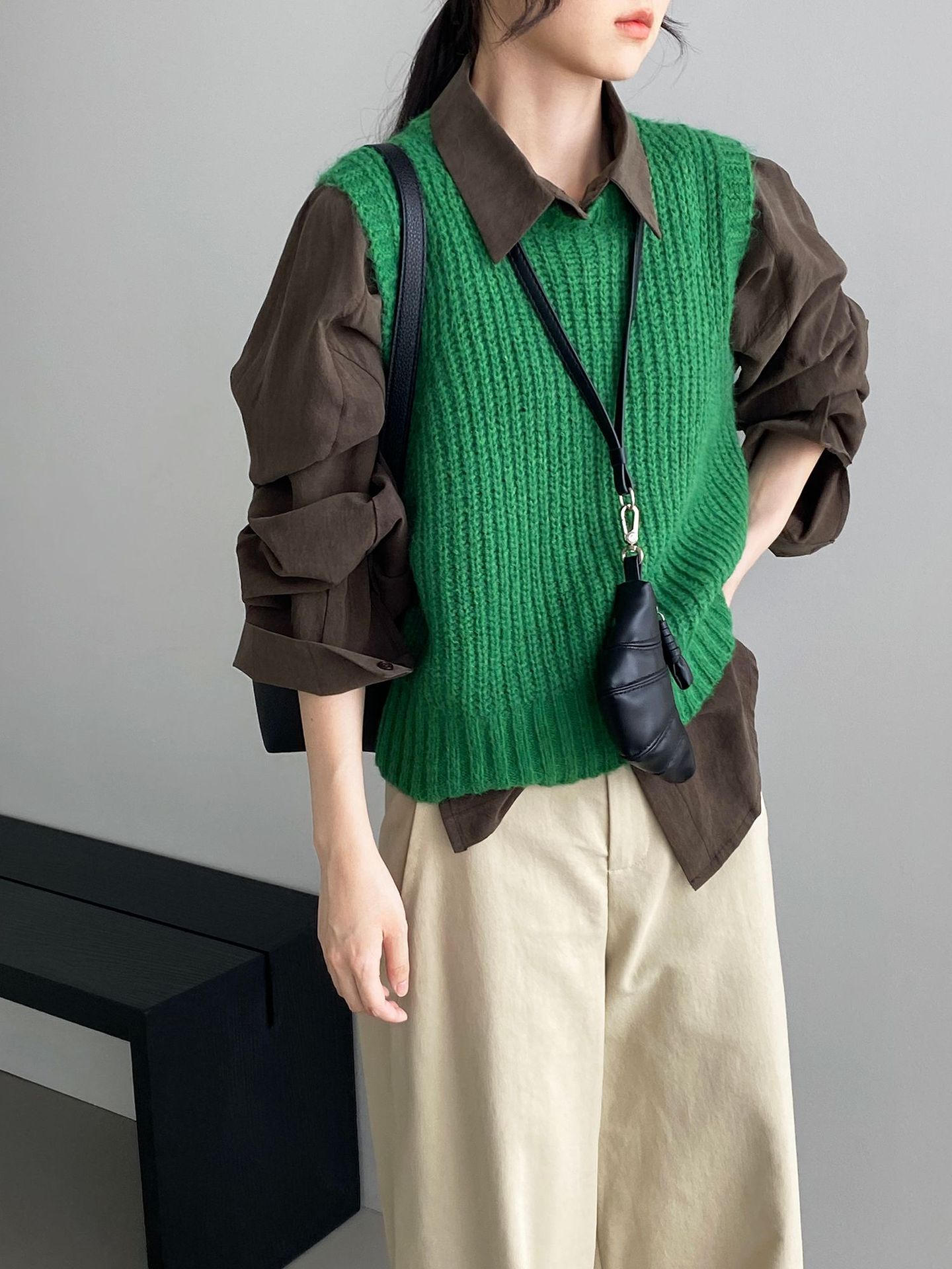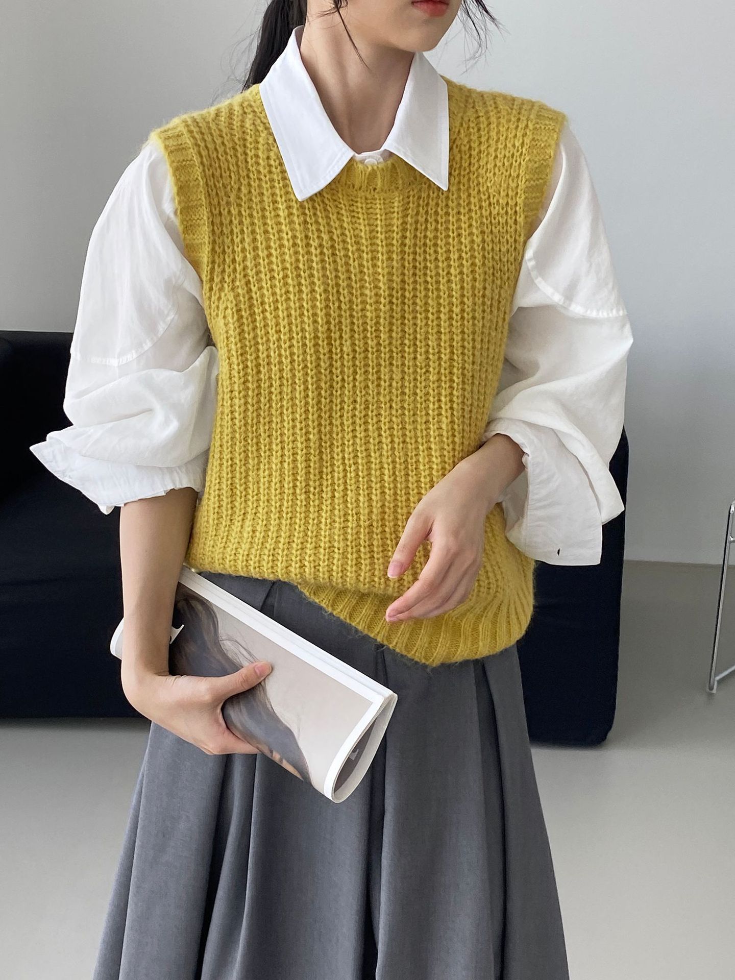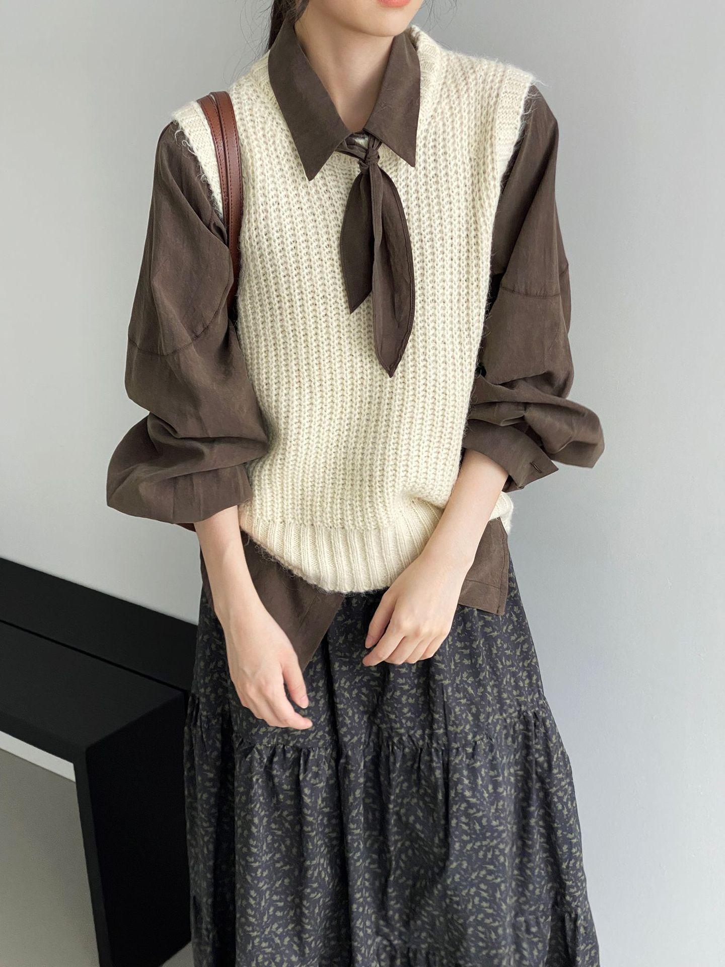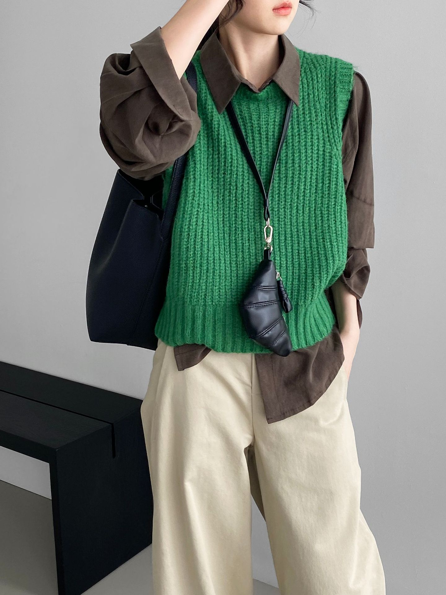 ¡Entonces recomienda el verde! Chaleco de punto de cuello redondo en capas para otoño/invierno para mujer, estilo coreano versátil Y1254
