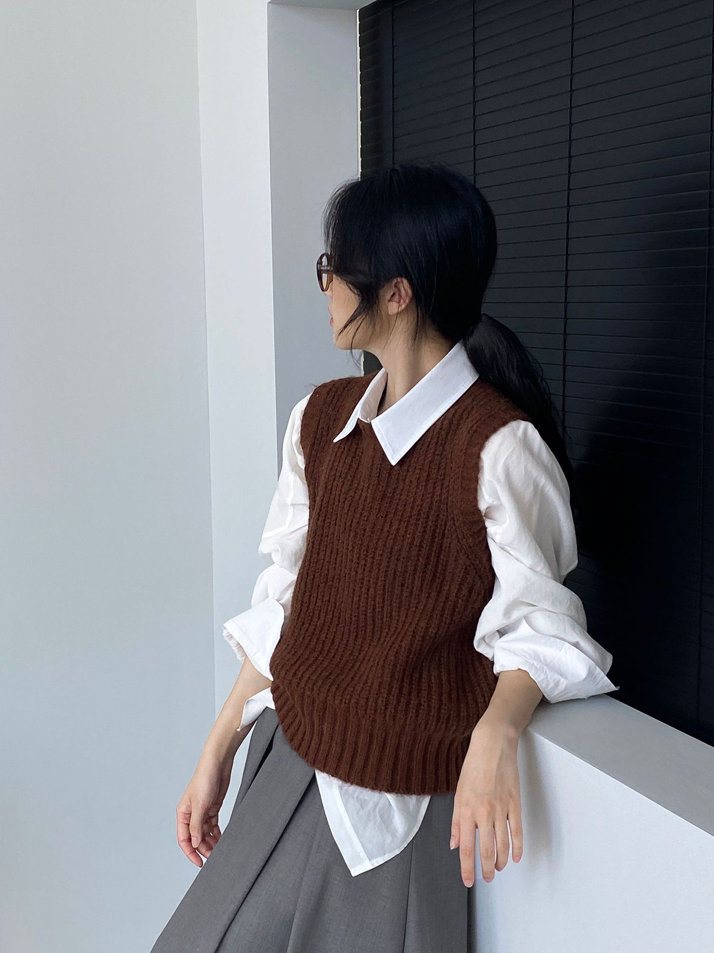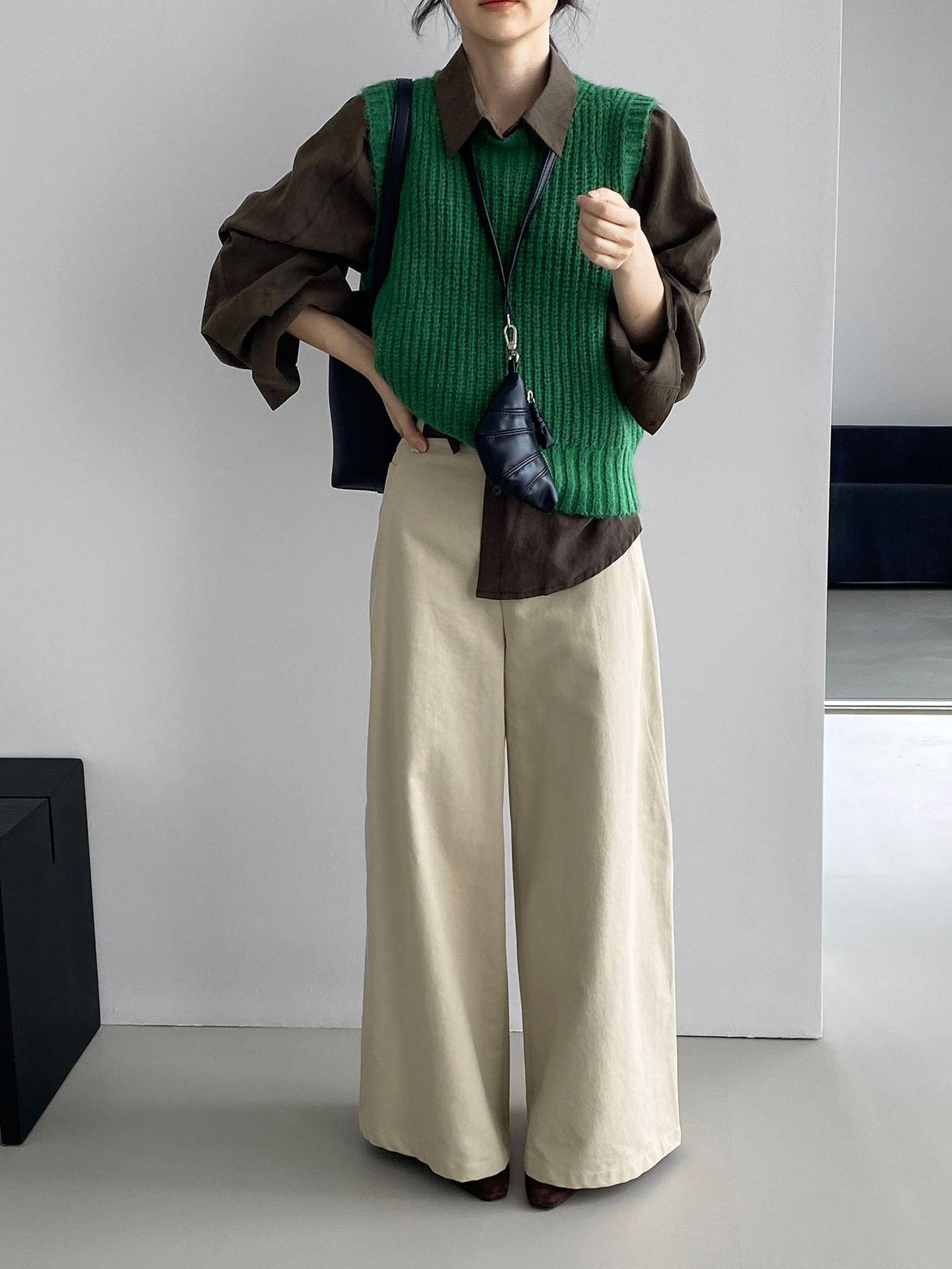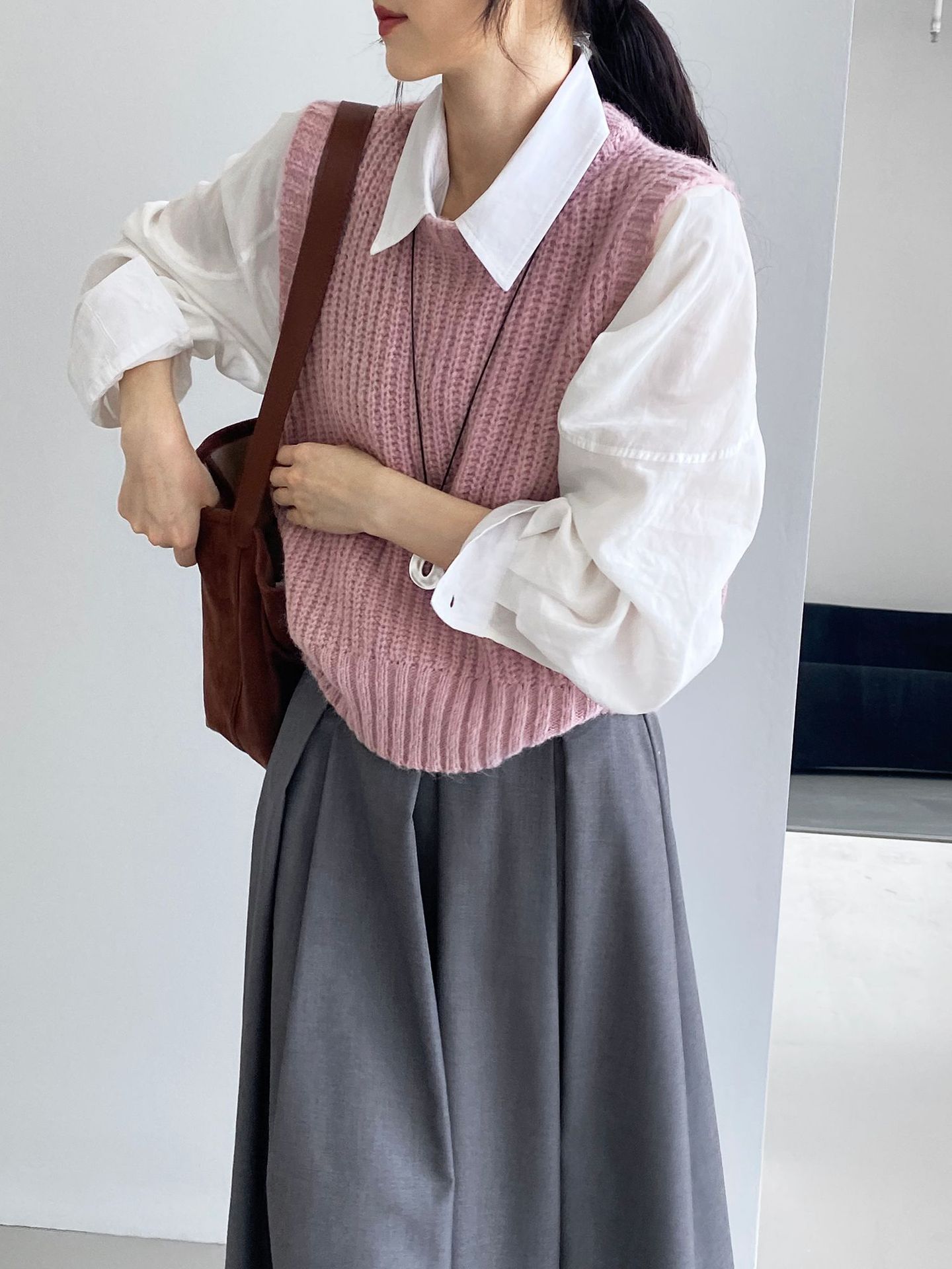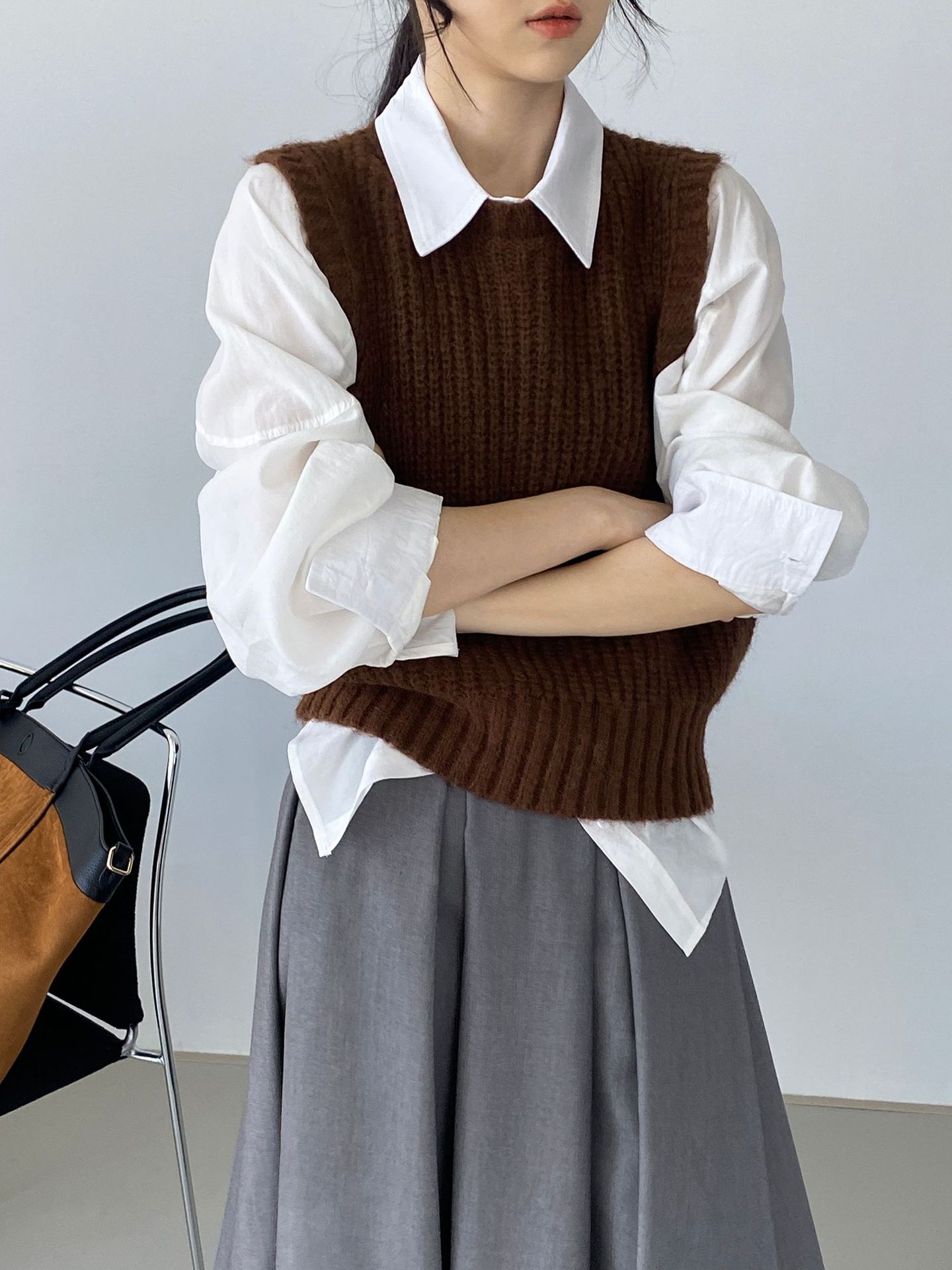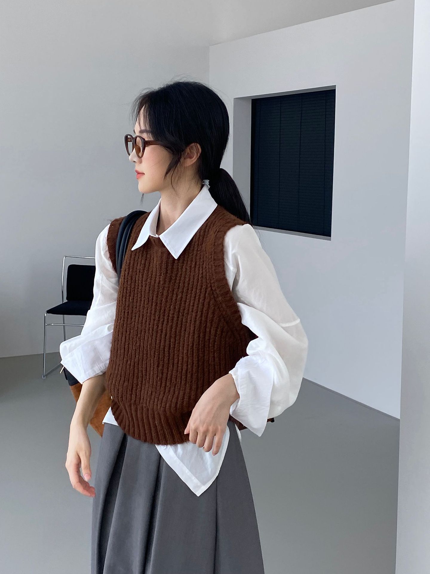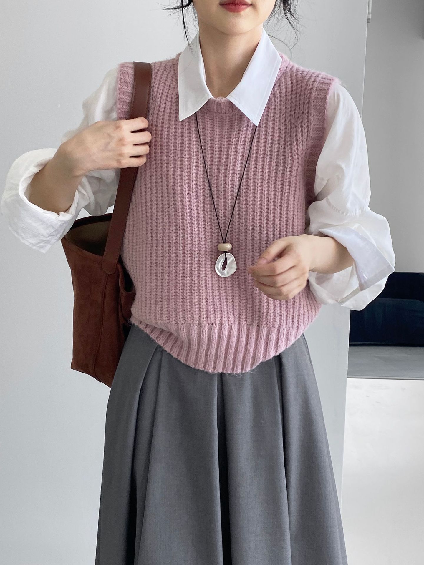 ¡Entonces recomienda el verde! Chaleco de punto de cuello redondo en capas para otoño/invierno para mujer, estilo coreano versátil Y1254