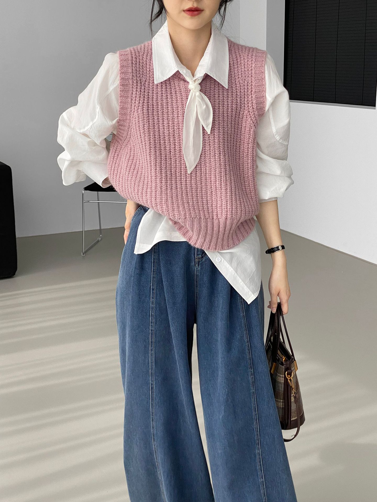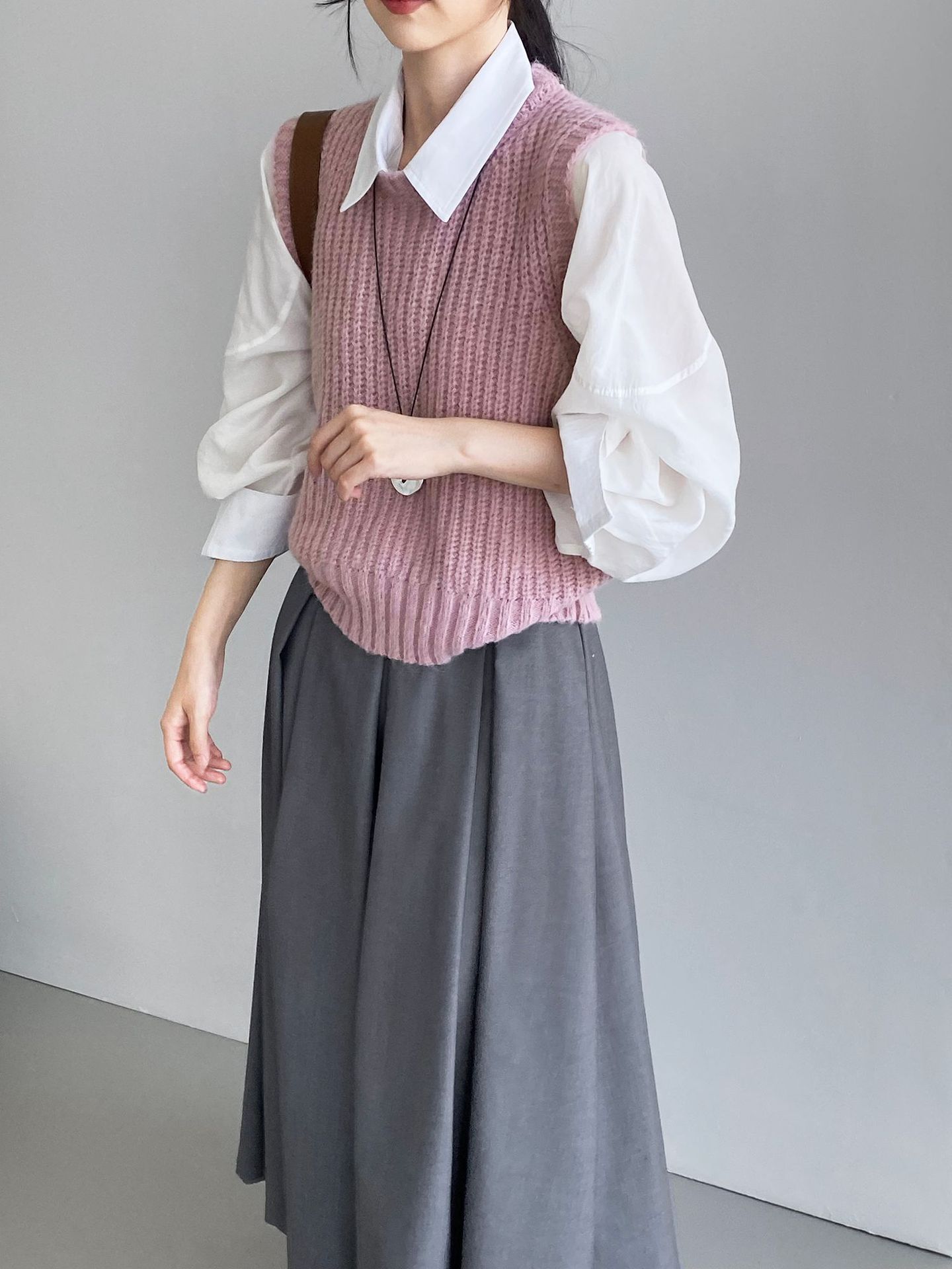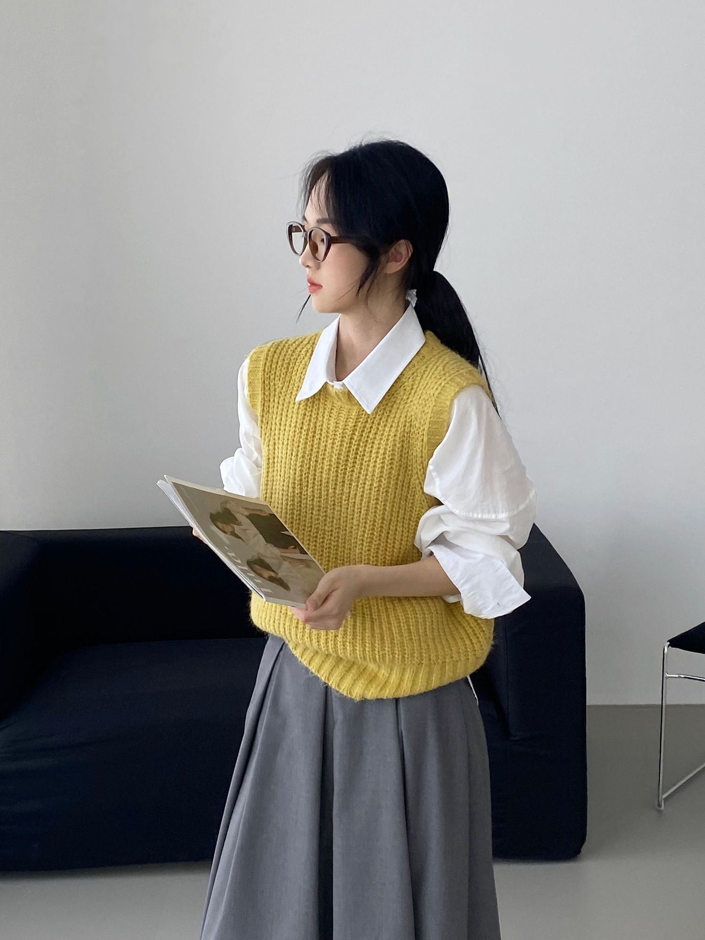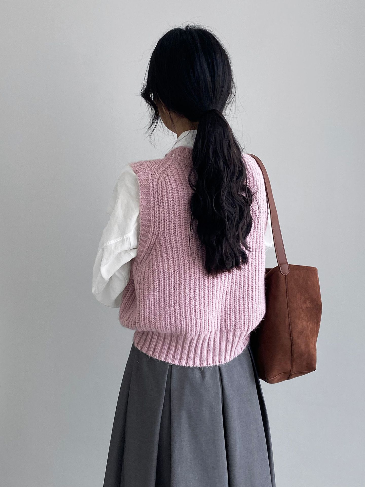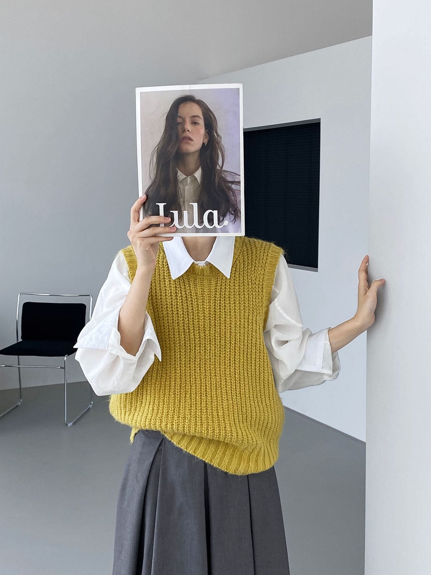 ¡Entonces recomienda el verde! Chaleco de punto de cuello redondo en capas para otoño/invierno para mujer, estilo coreano versátil Y1254