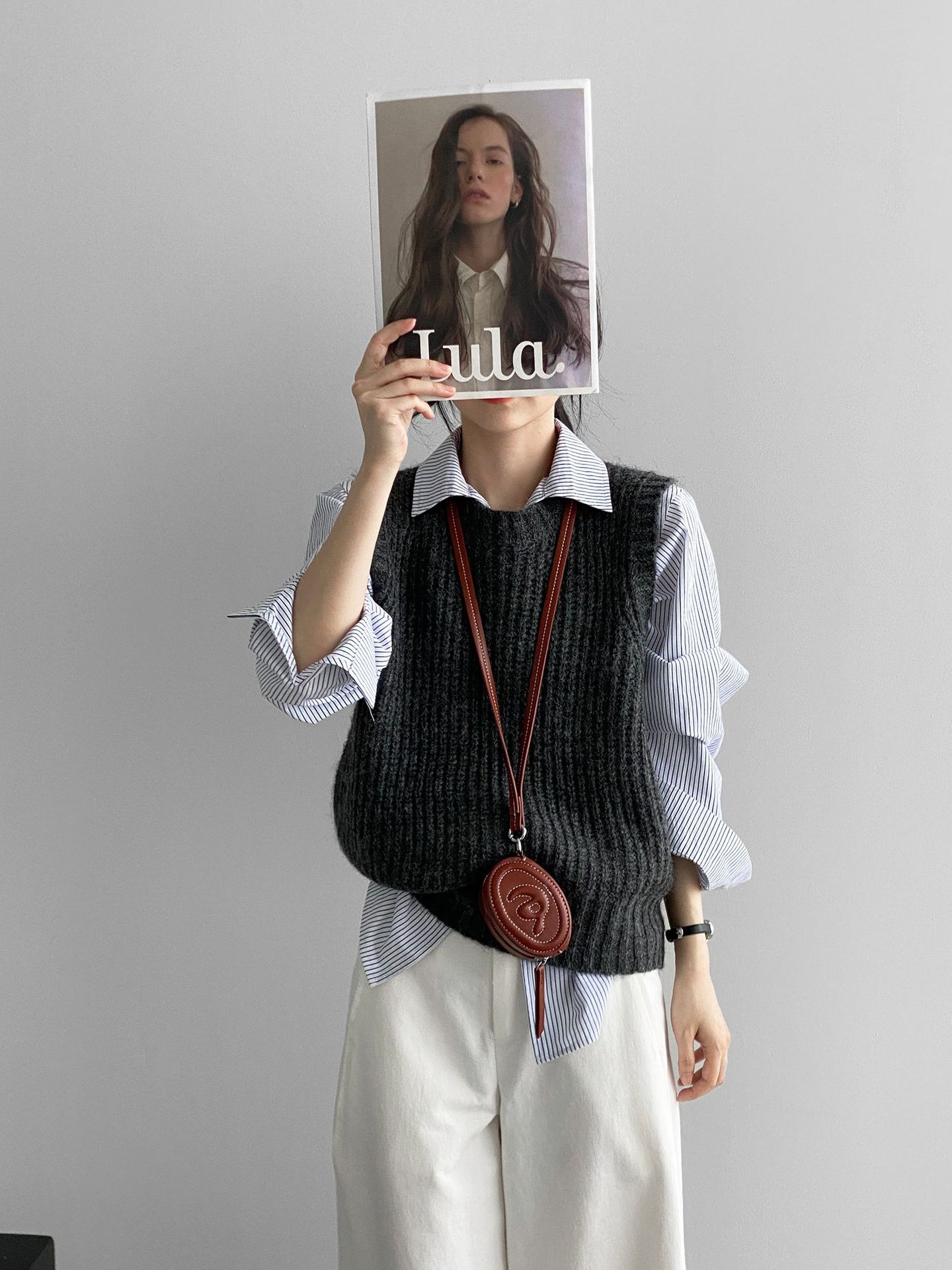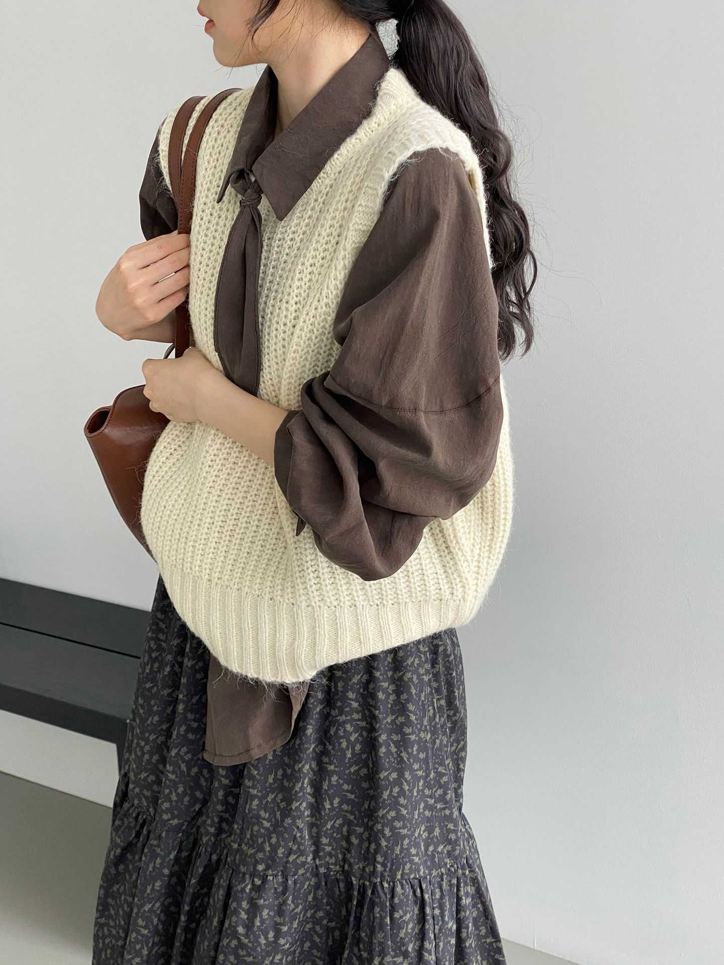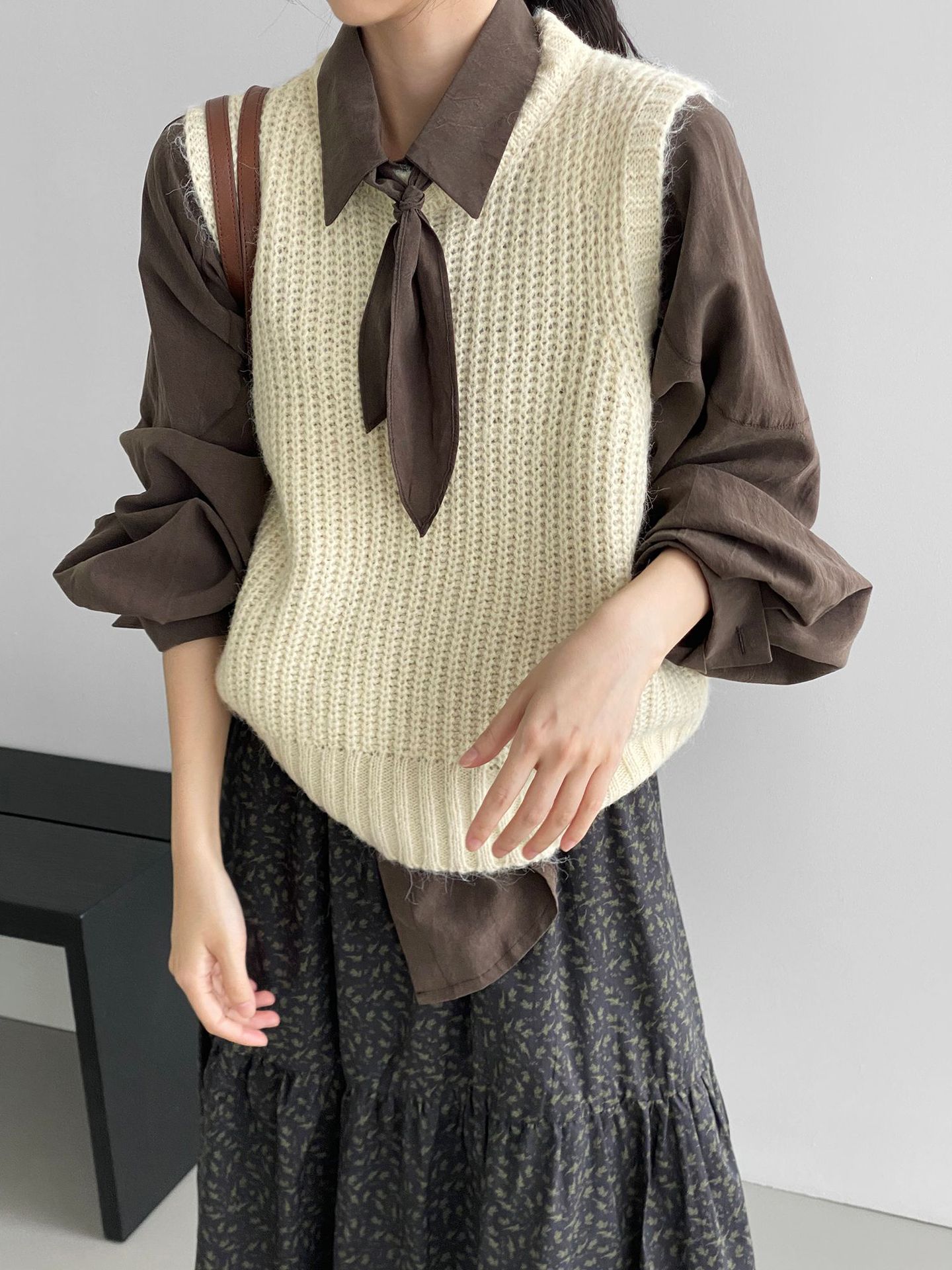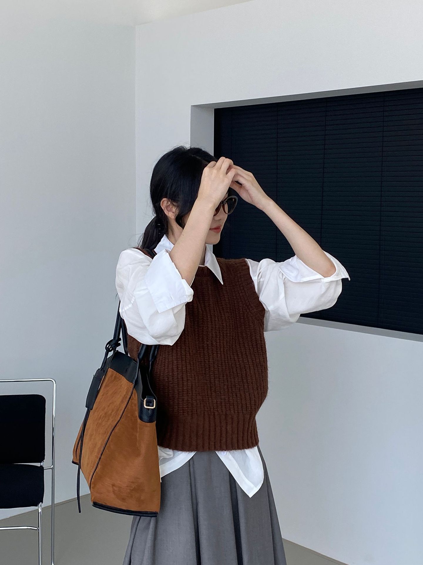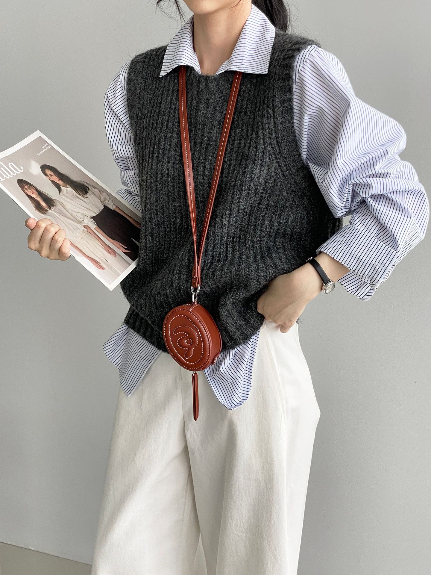 ¡Entonces recomienda el verde! Chaleco de punto de cuello redondo en capas para otoño/invierno para mujer, estilo coreano versátil Y1254