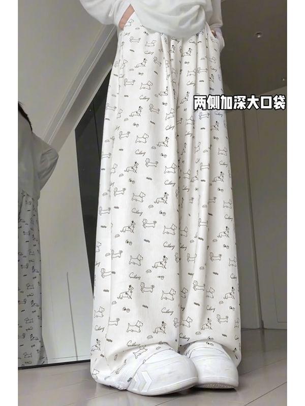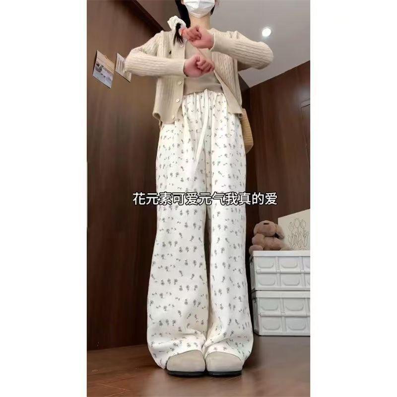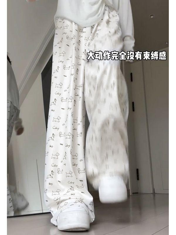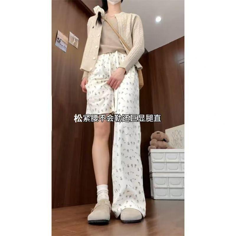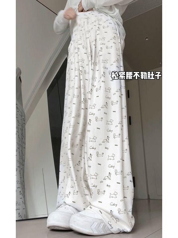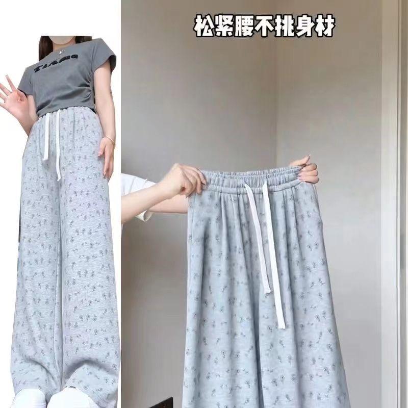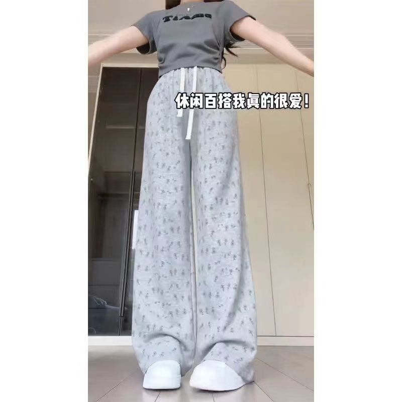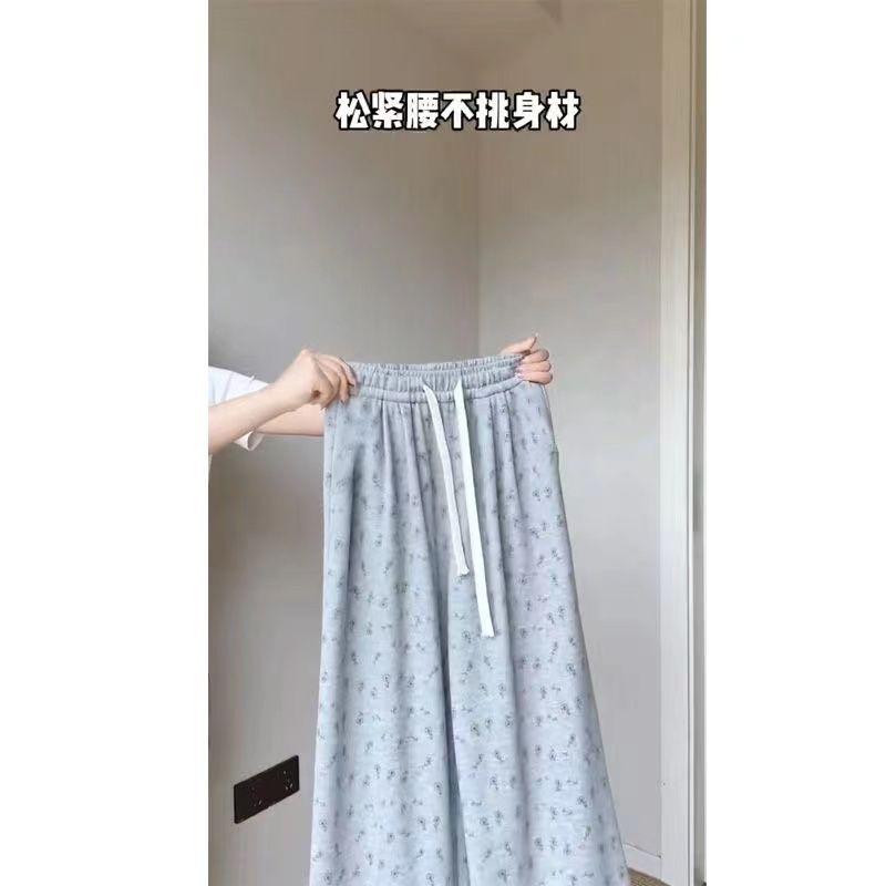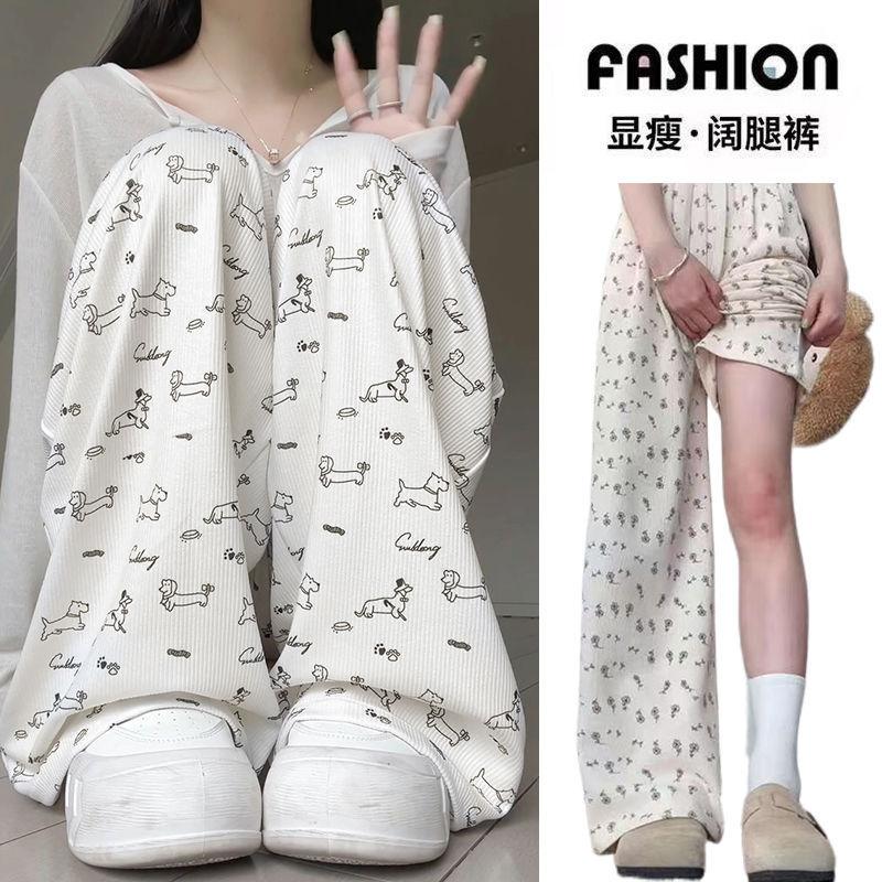 Pantalones Anchos Delgados de Seda de Hielo Fresco para Mujer, Versátiles, con Estampado, Estilo Coreano, Adelgazantes, Casuales para Estudiante, Pantalones de Verano, Tendencia ins