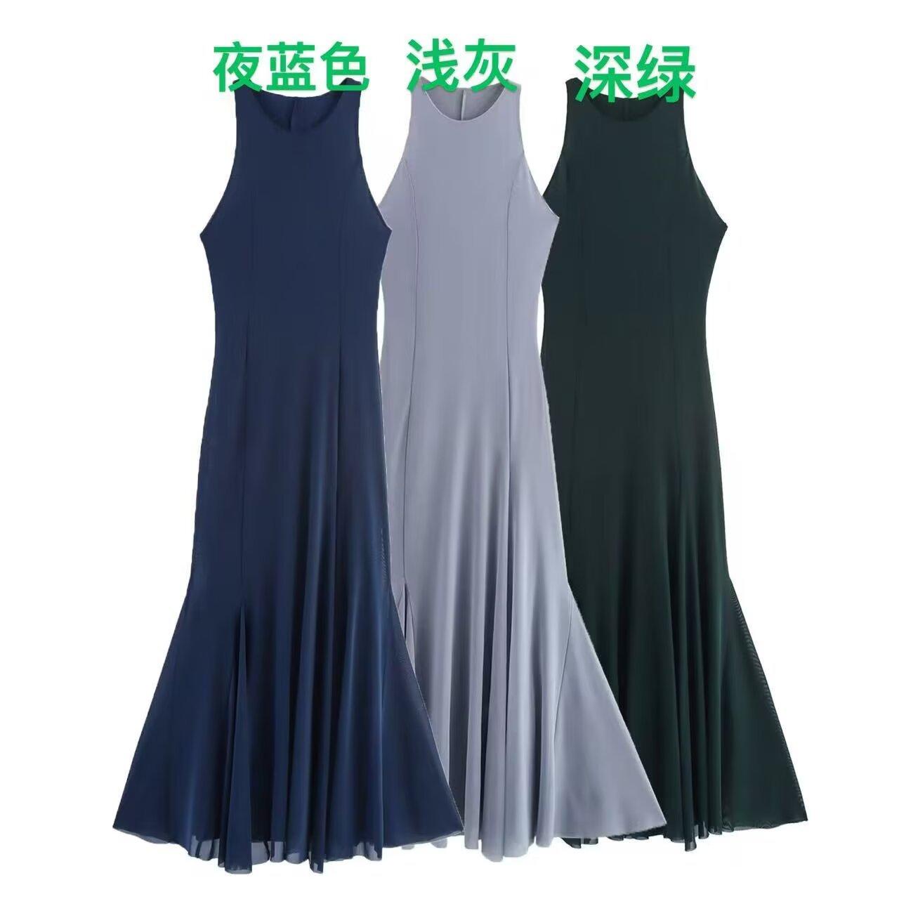 Moda transfronteriza europea y americana para mujer AliExpress más vendido elegante vestido largo de tela triangular de seda de red