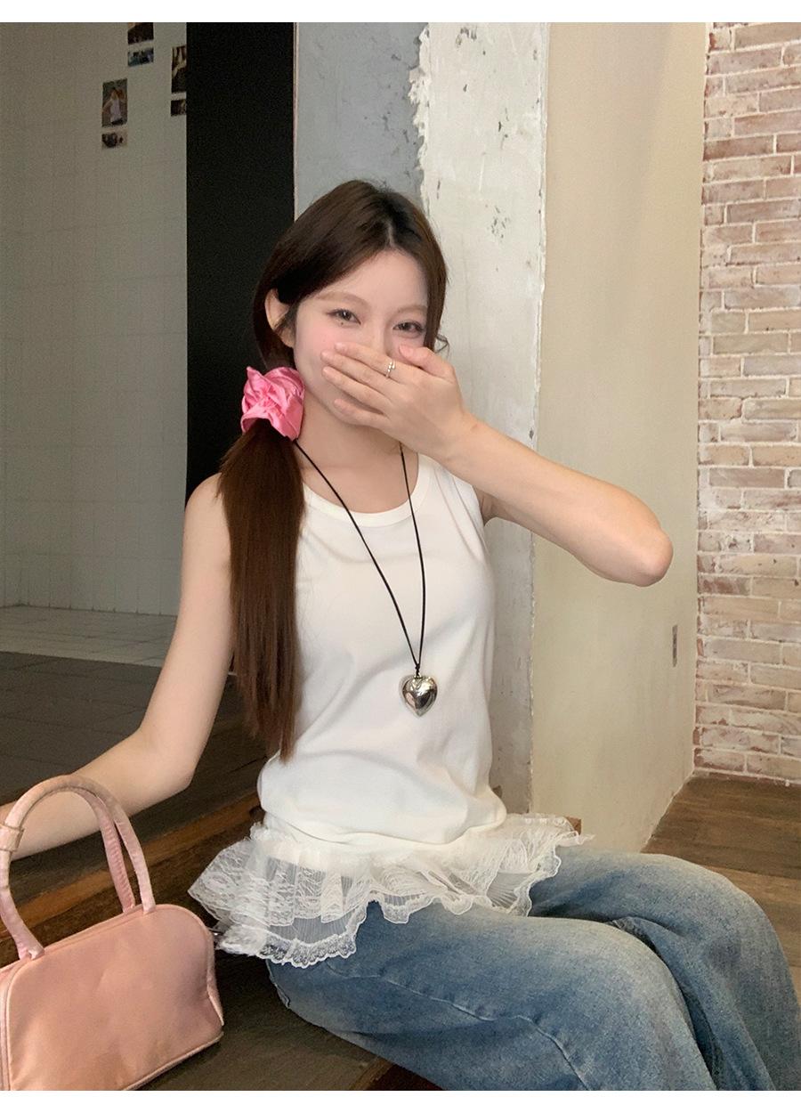 Camisola de Encaje de Moda para Mujer 2025 Nuevo Diseño Nicho Versátil Capa Interior Top Base