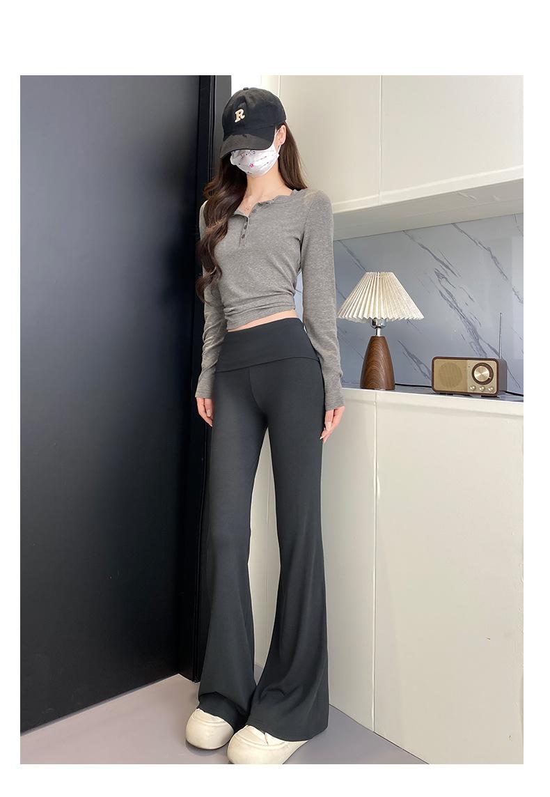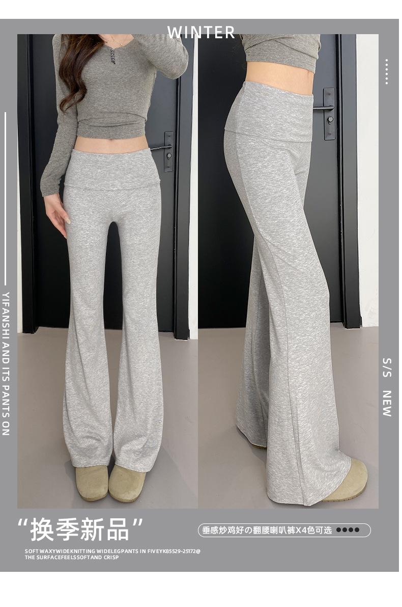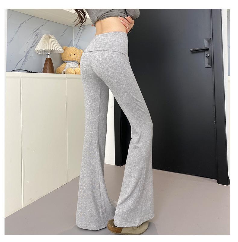 Pantalones microacampanados de cintura vuelta para mujer verano 2025 nuevos talla pequeña caída adelgazantes otoño pantalones deportivos acampanados casuales