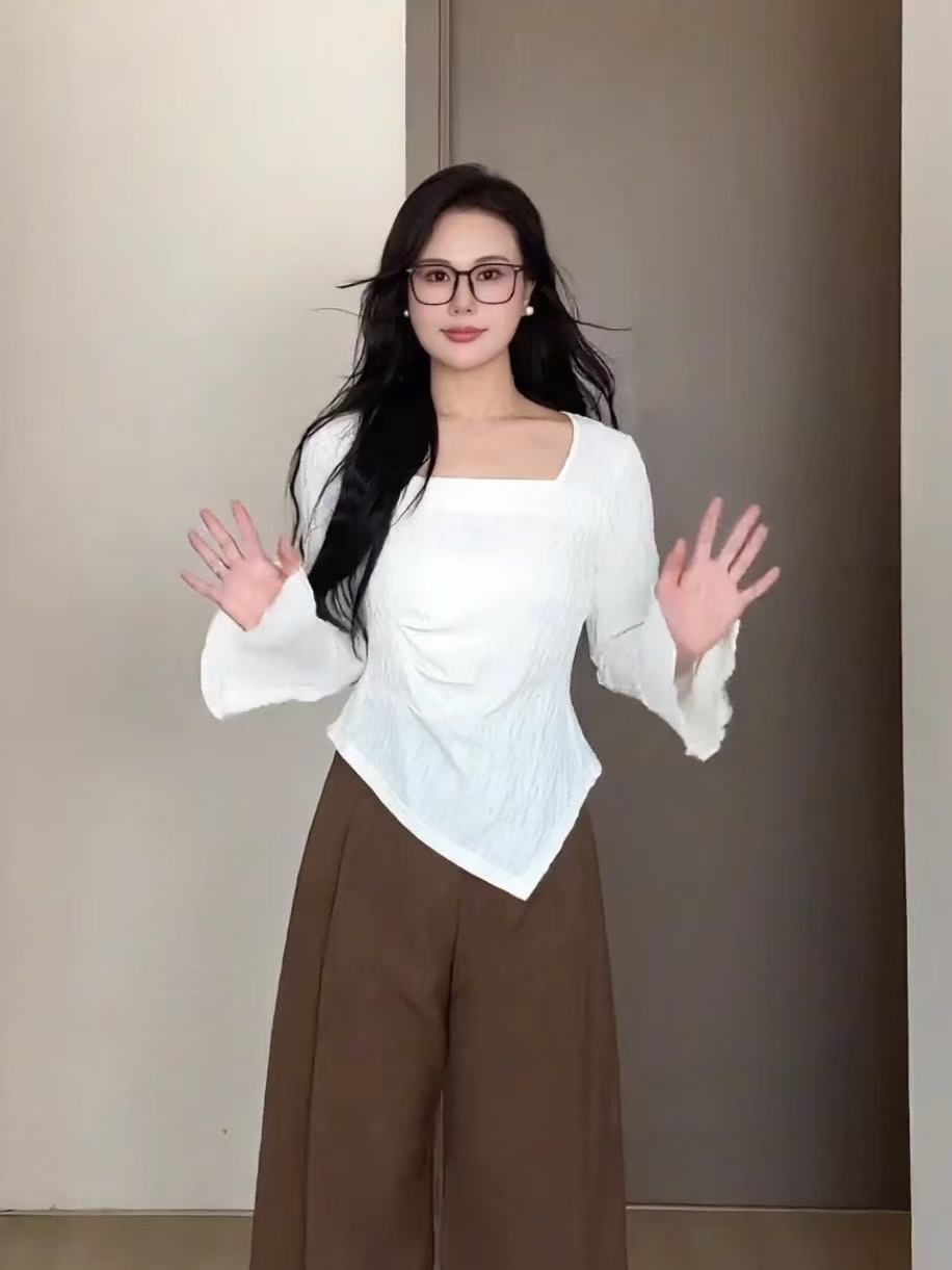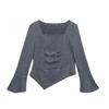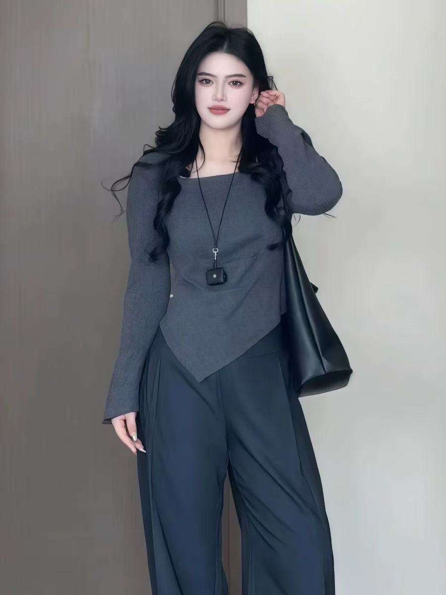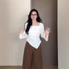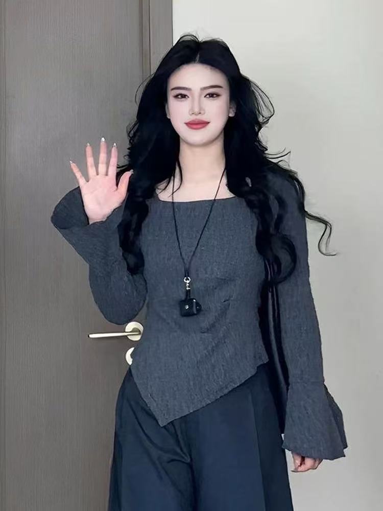 Talla Grande Estilo Coreano Cuello Cuadrado Temperamento Moda Adelgazante Irregular Camisa Mujer Principios de Otoño Temporada Sentido del Diseño Nicho Chic Top
