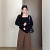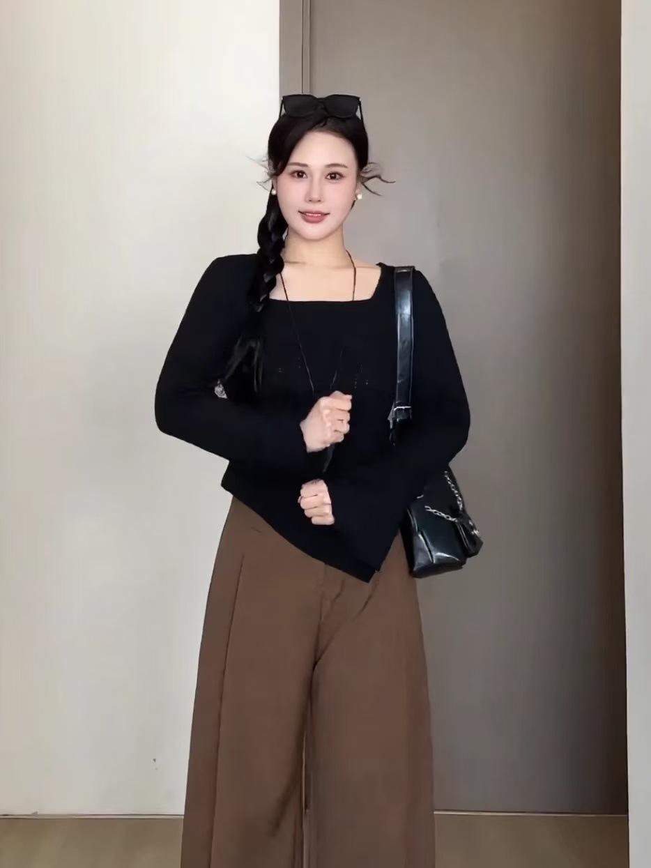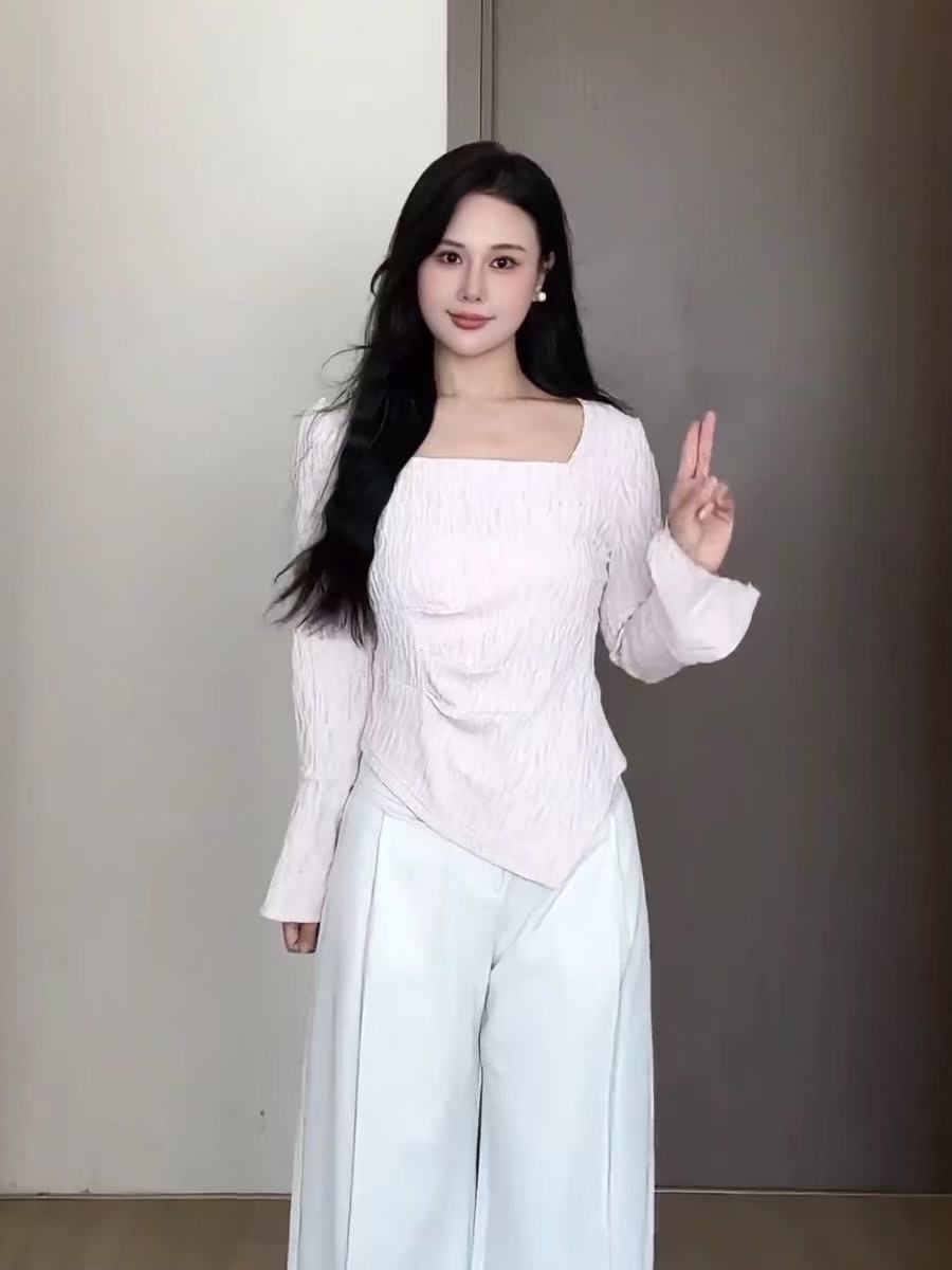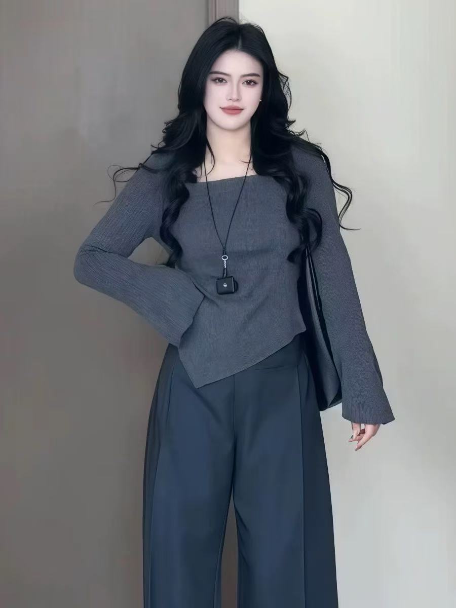 Talla Grande Estilo Coreano Cuello Cuadrado Temperamento Moda Adelgazante Irregular Camisa Mujer Principios de Otoño Temporada Sentido del Diseño Nicho Chic Top