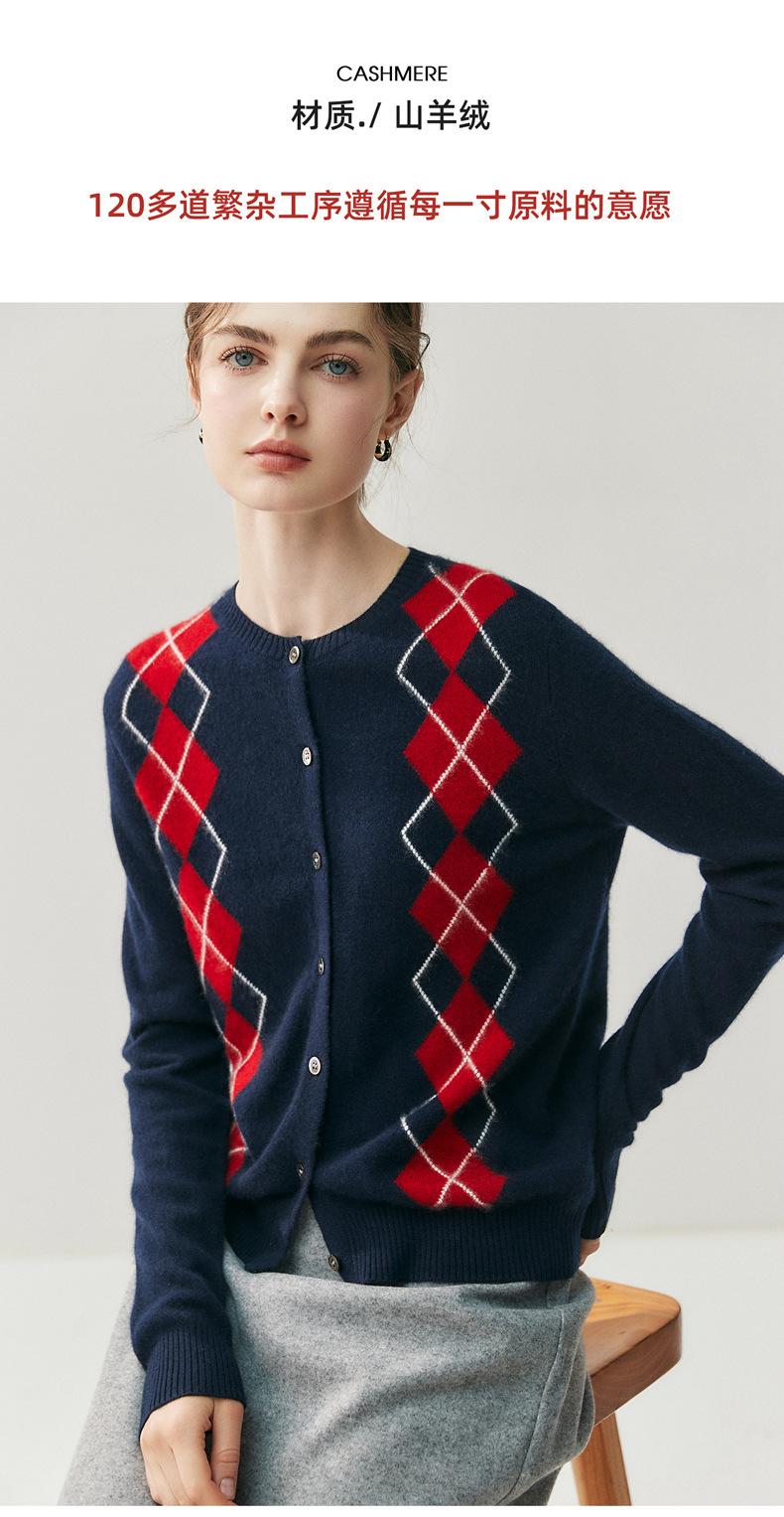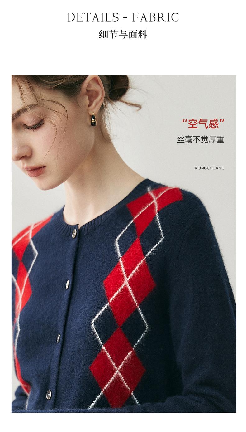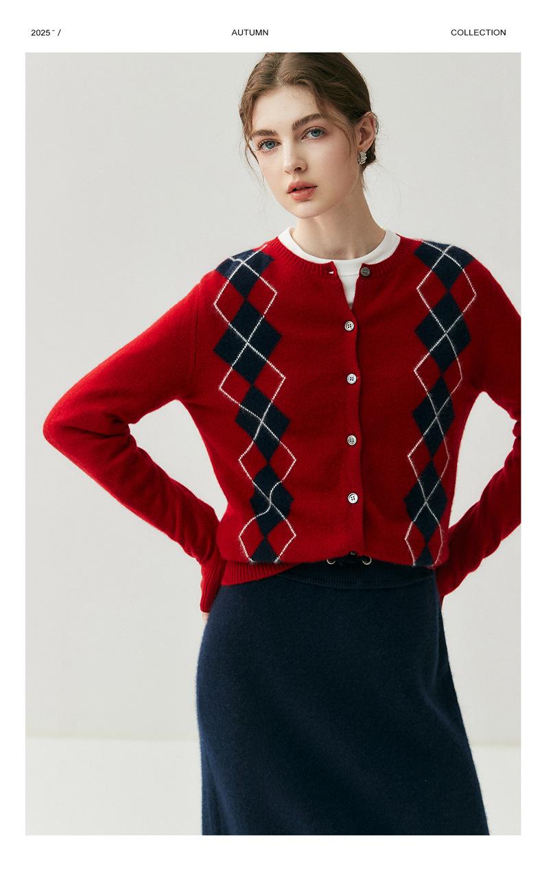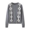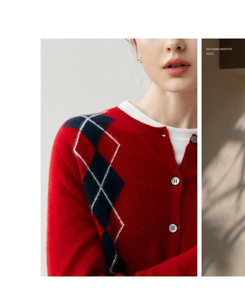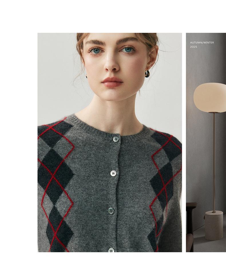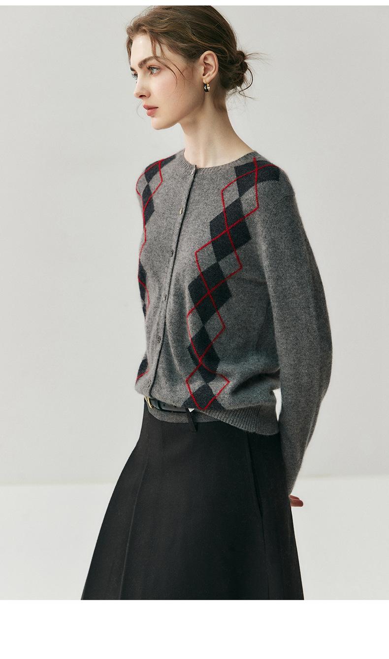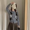 Otoño/Invierno Diseño Argyle Retro Cárdigan de Punto de Cachemira para Mujer Abrigo Suelto Adelgazante Suéter Grueso Ropa Exterior
