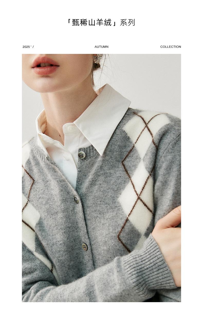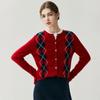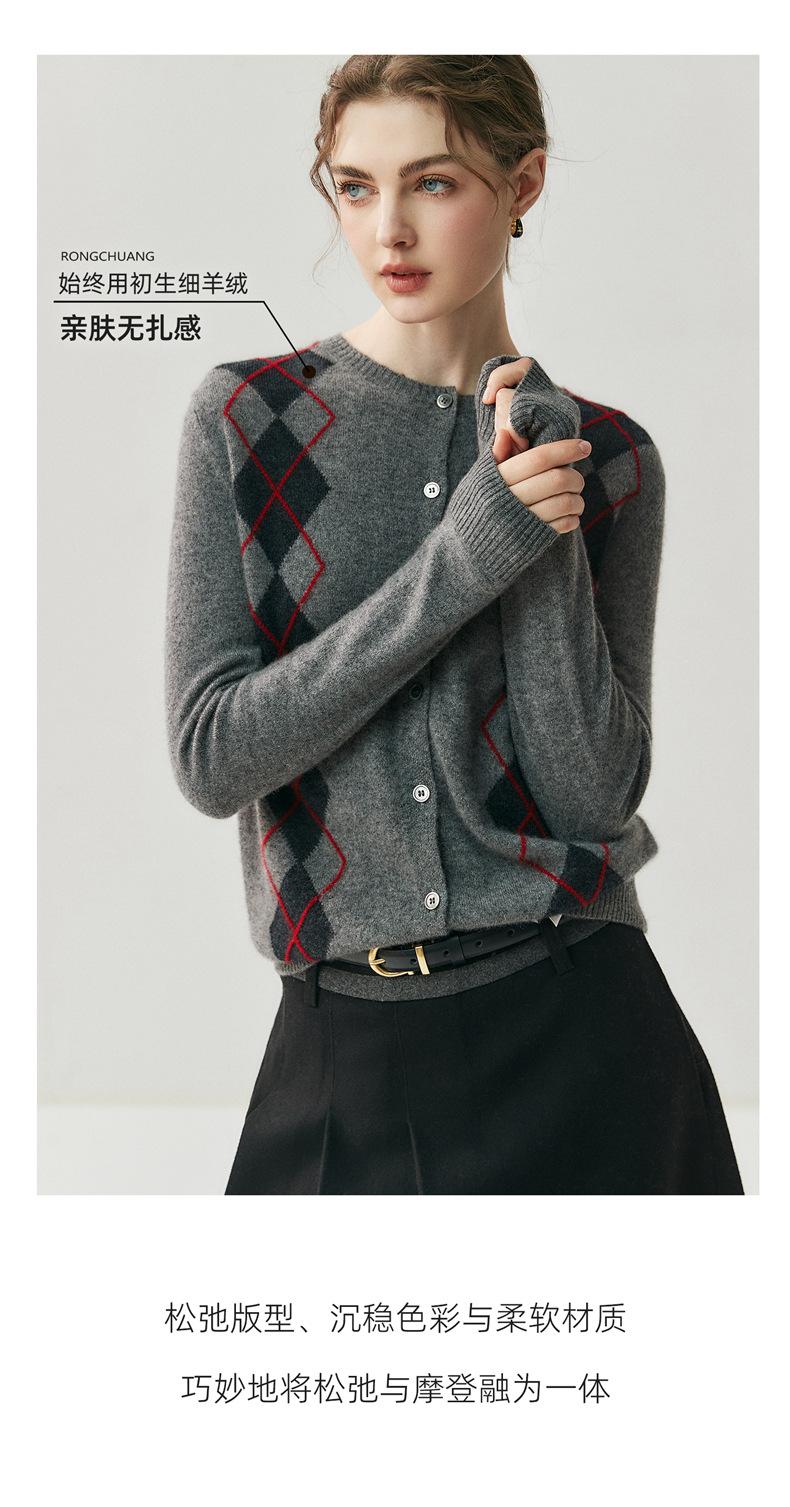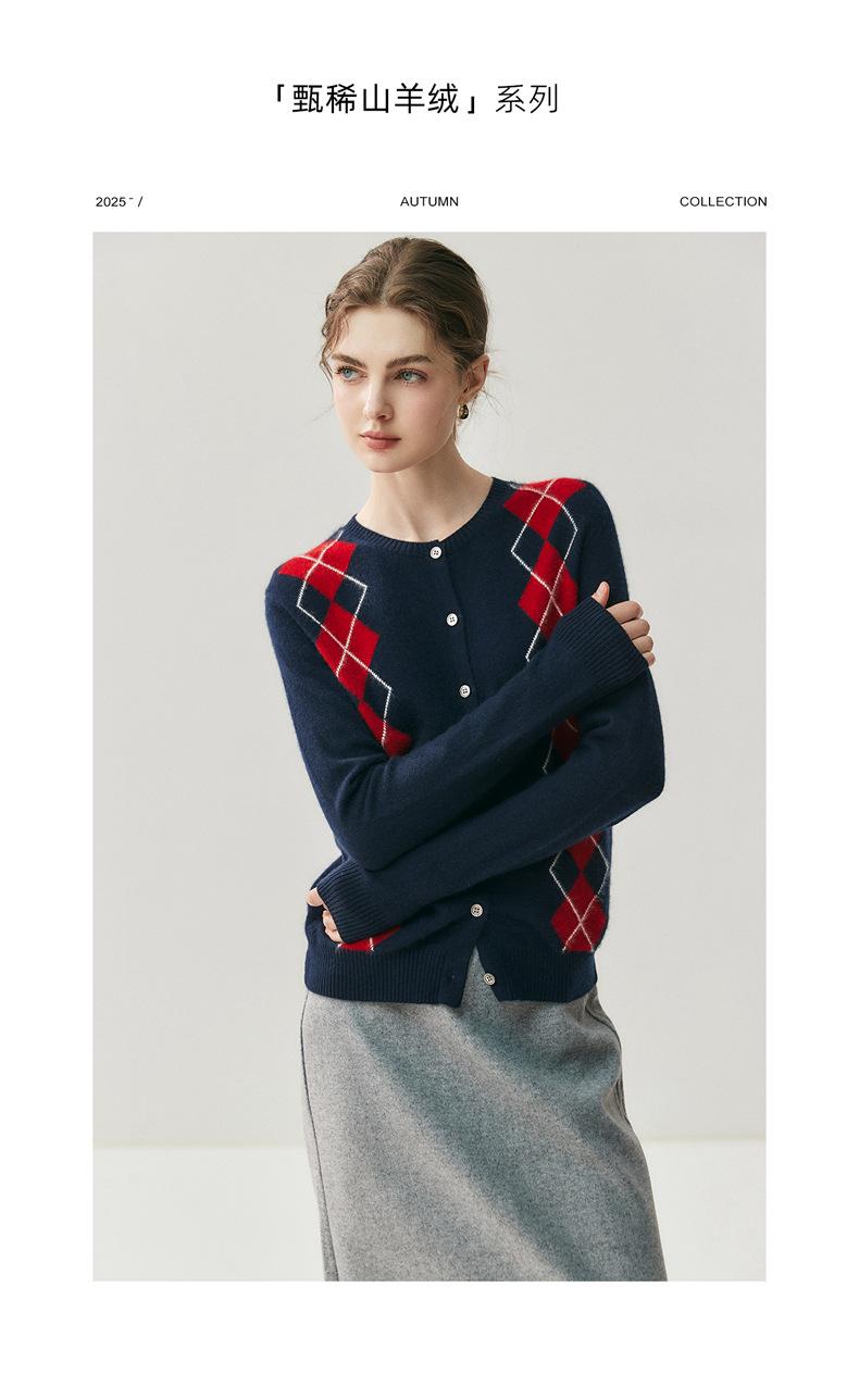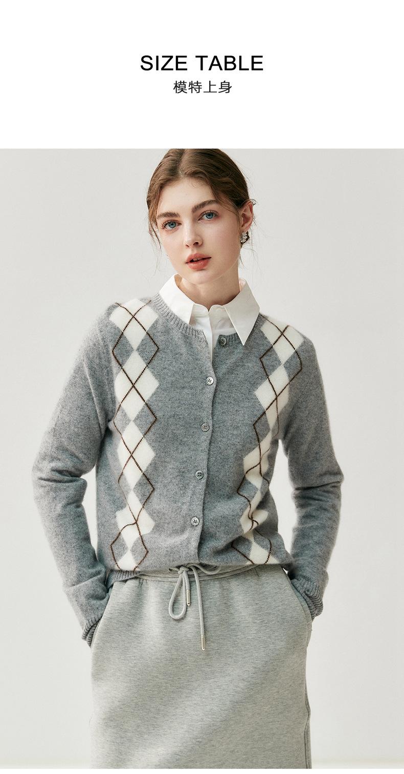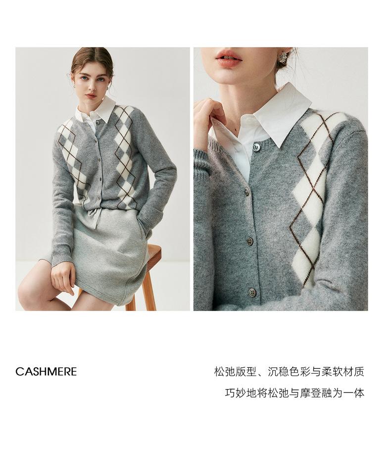 Otoño/Invierno Diseño Argyle Retro Cárdigan de Punto de Cachemira para Mujer Abrigo Suelto Adelgazante Suéter Grueso Ropa Exterior