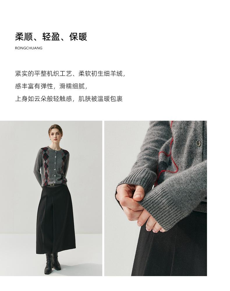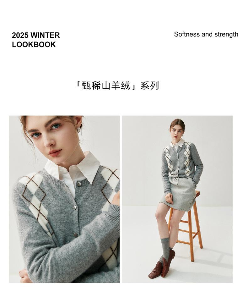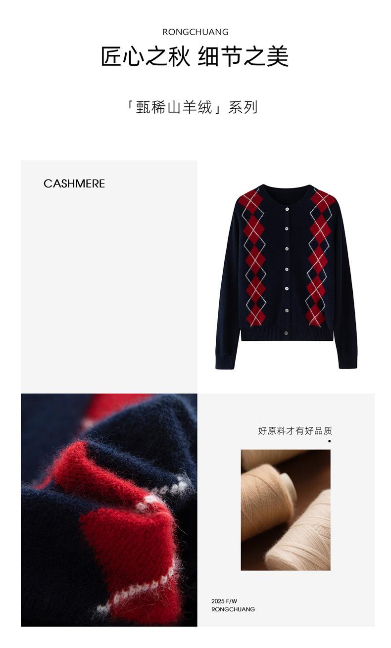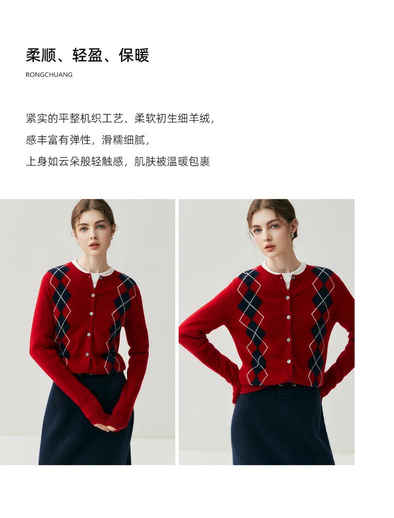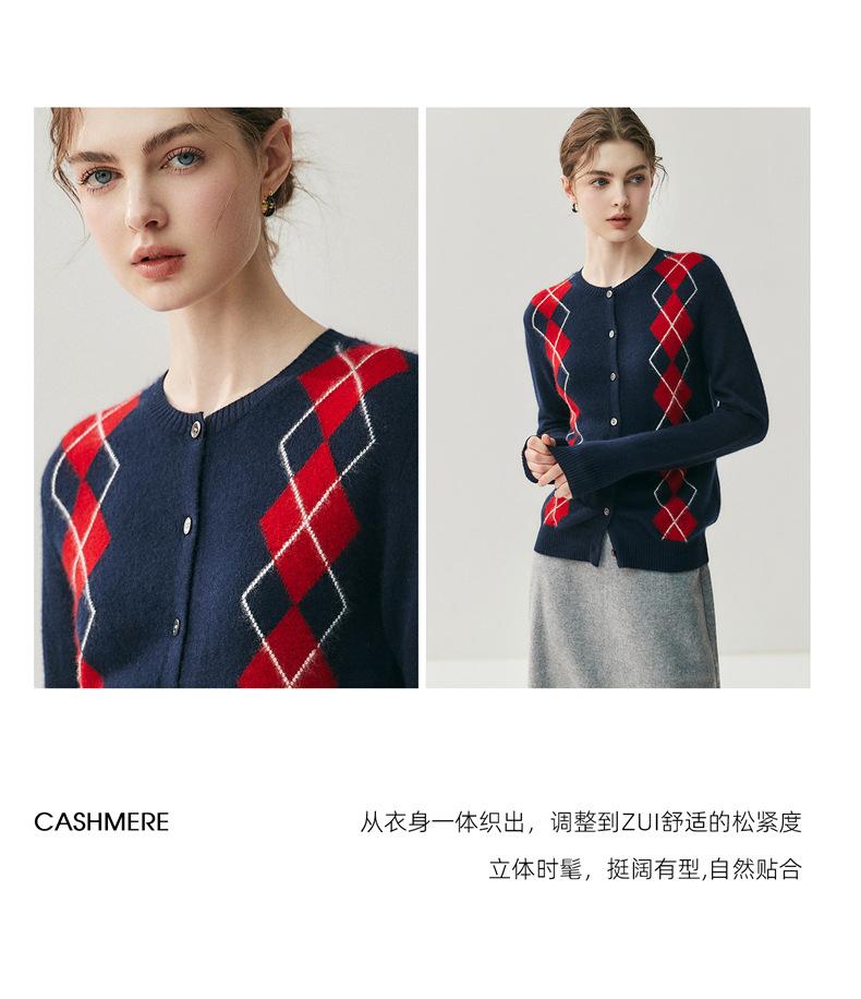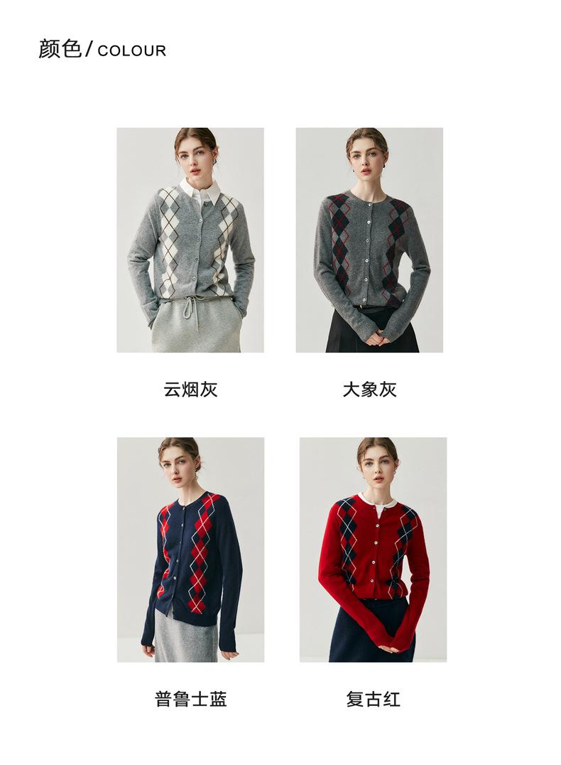 Otoño/Invierno Diseño Argyle Retro Cárdigan de Punto de Cachemira para Mujer Abrigo Suelto Adelgazante Suéter Grueso Ropa Exterior