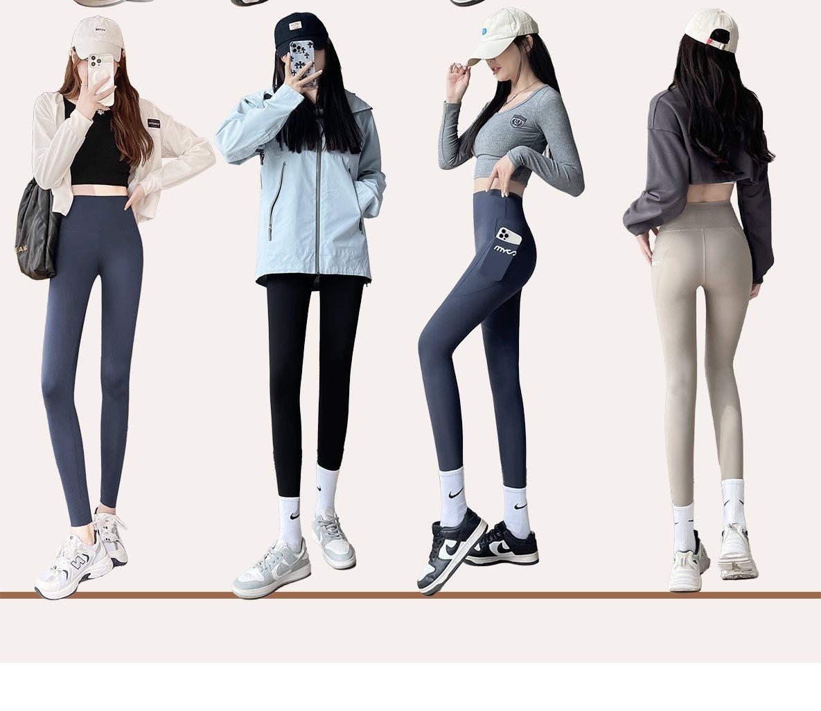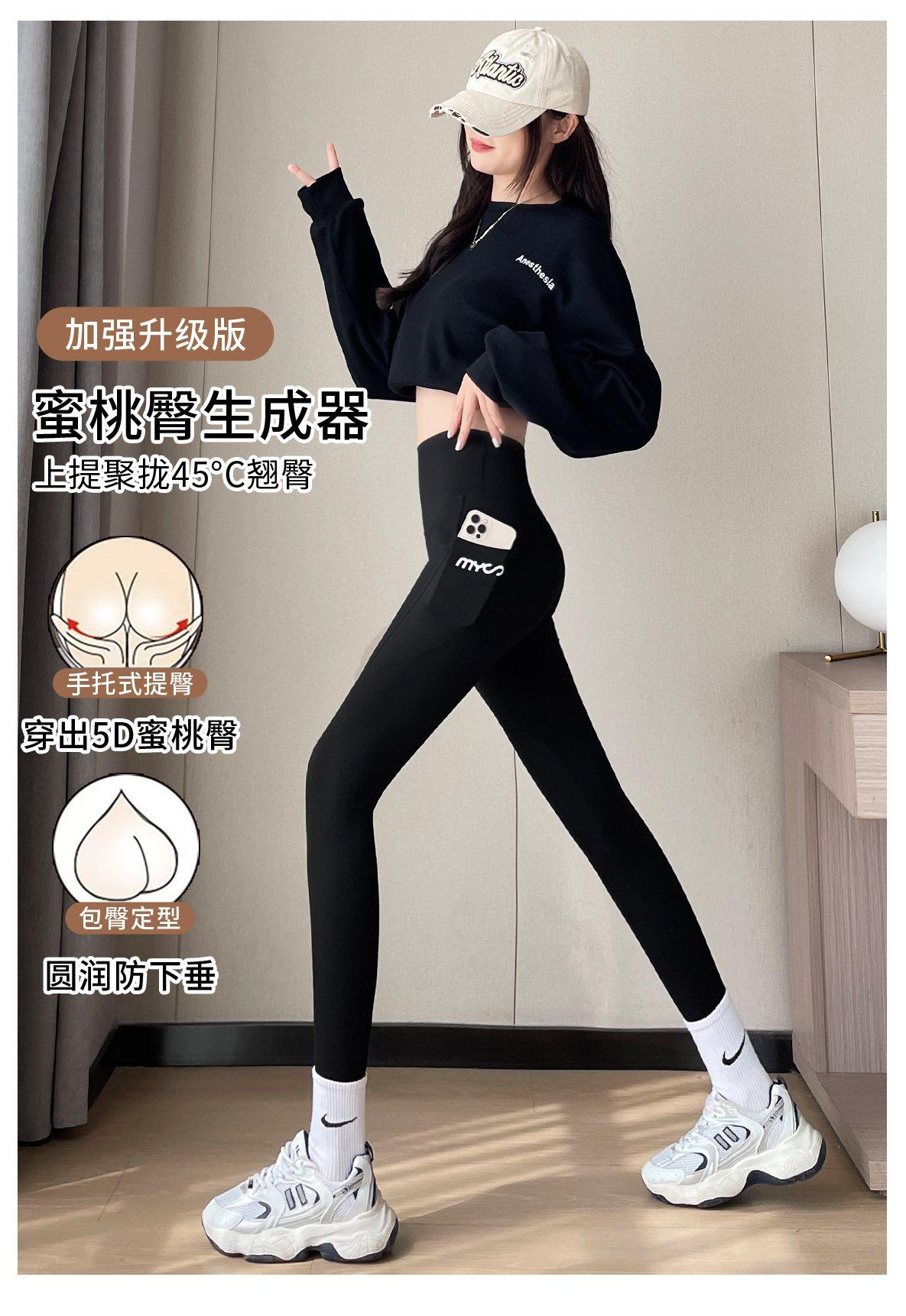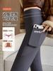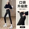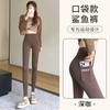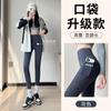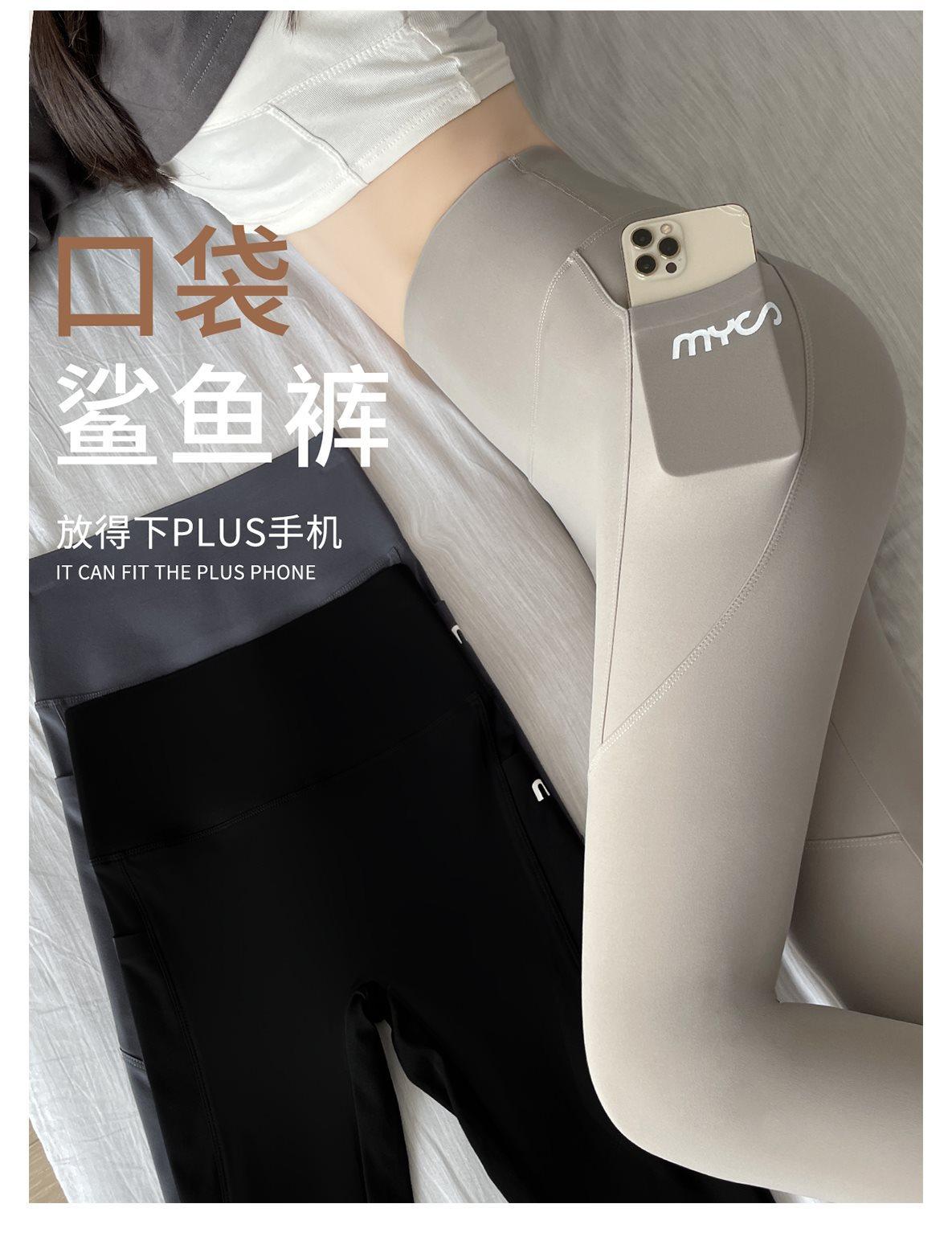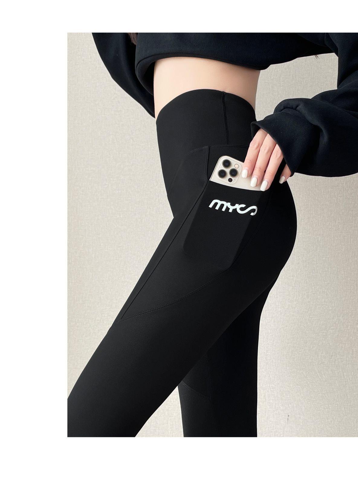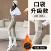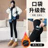 Pantalones de bolsillo de tiburón forrados de polar para mujer, ropa exterior nueva de otoño e invierno 2025, leggings sin costuras de cintura alta engrosados, pantalones de yoga de talla grande