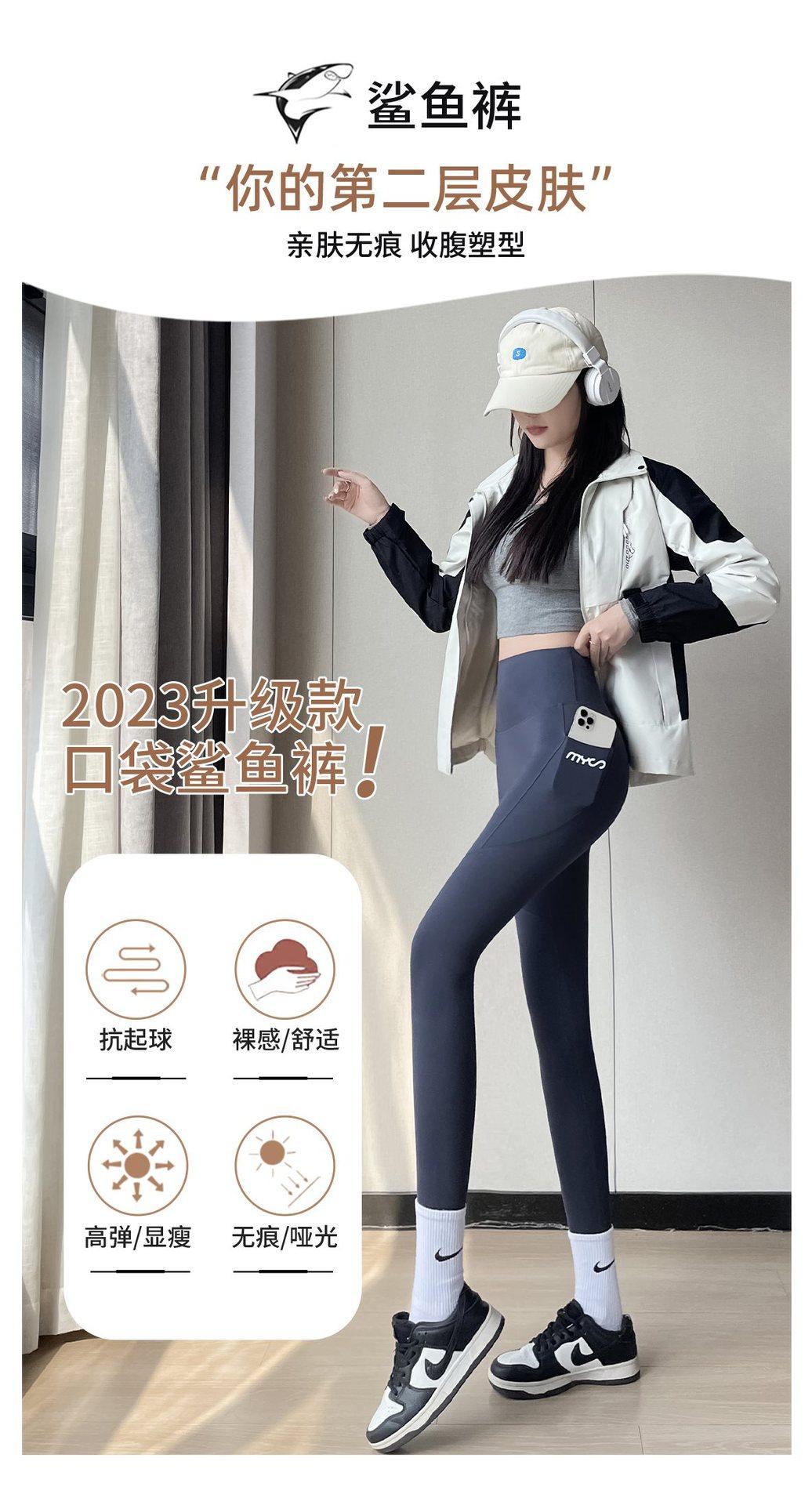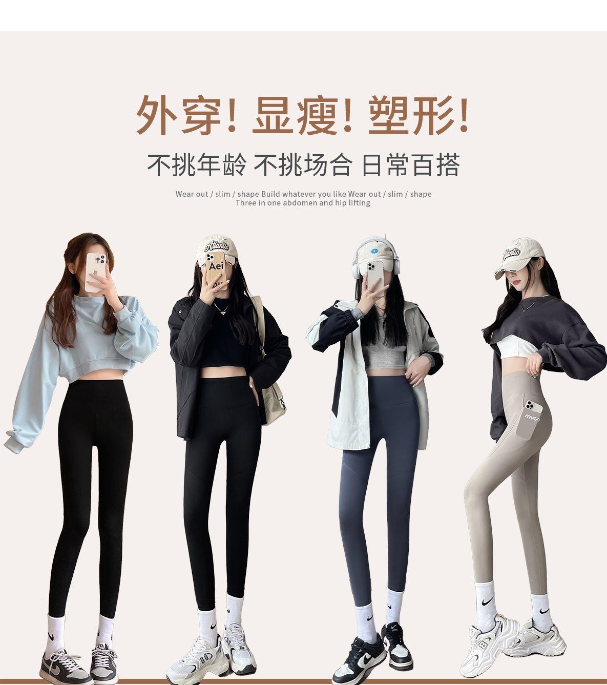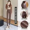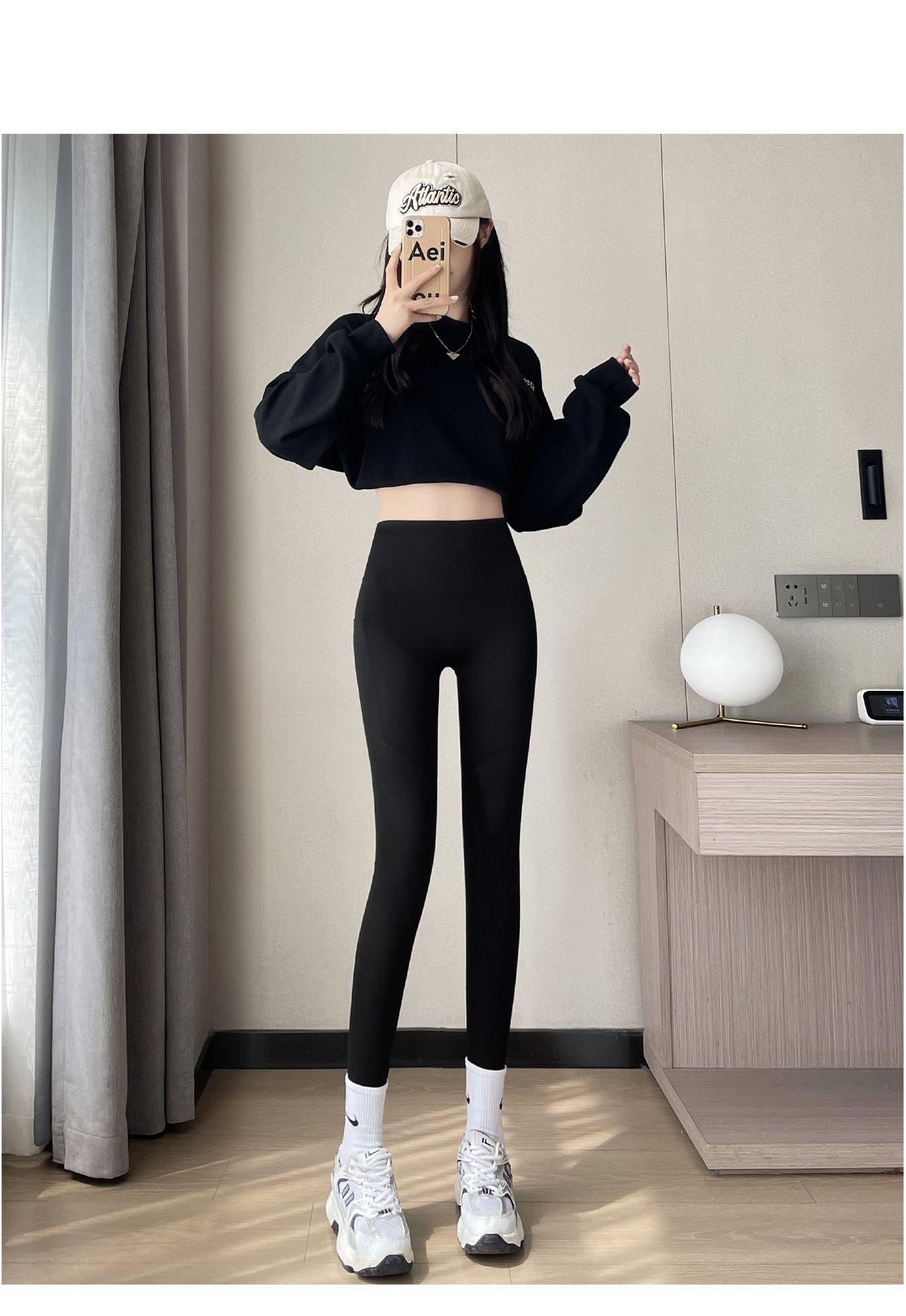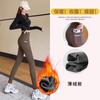 Pantalones de bolsillo de tiburón forrados de polar para mujer, ropa exterior nueva de otoño e invierno 2025, leggings sin costuras de cintura alta engrosados, pantalones de yoga de talla grande