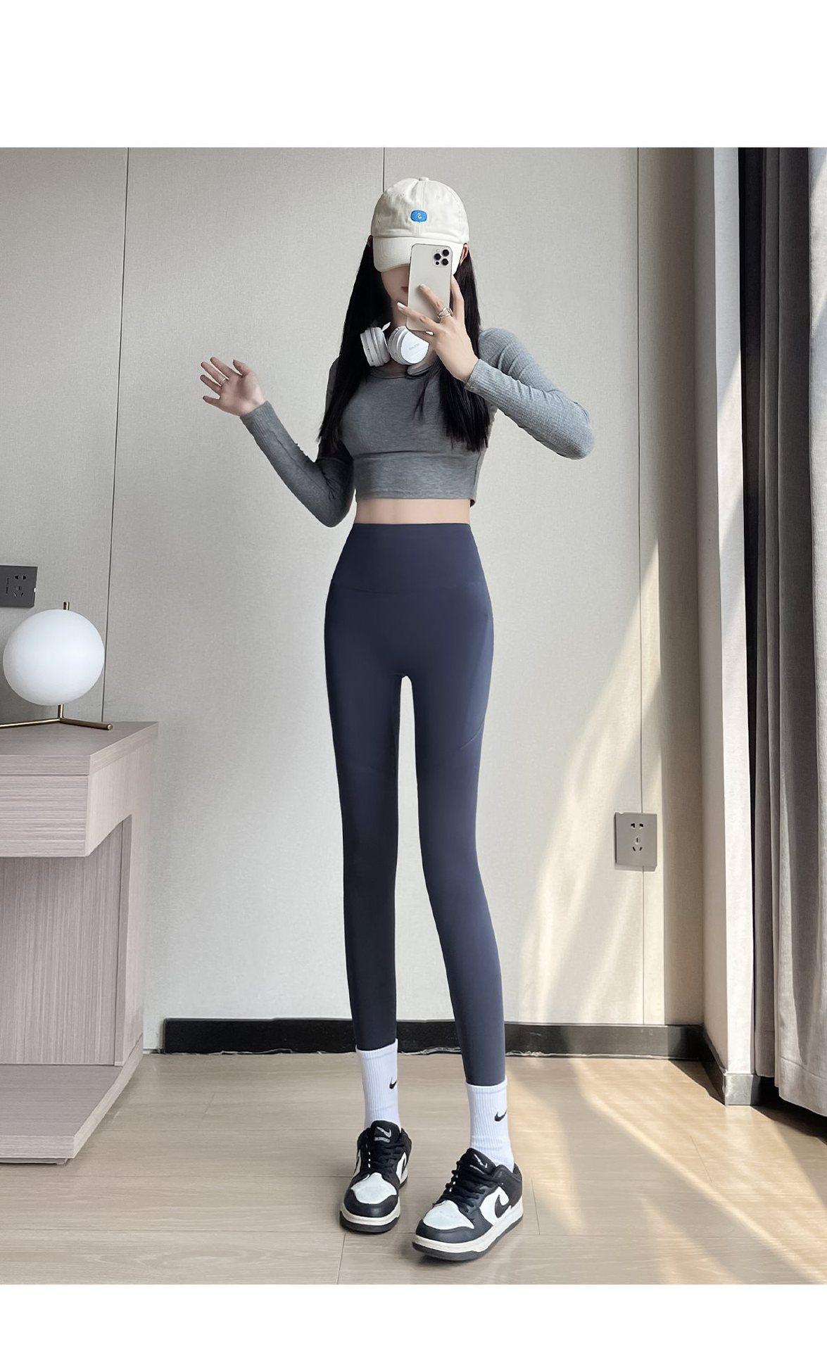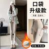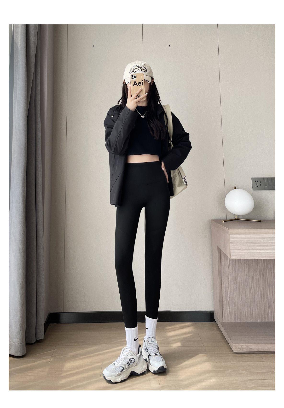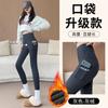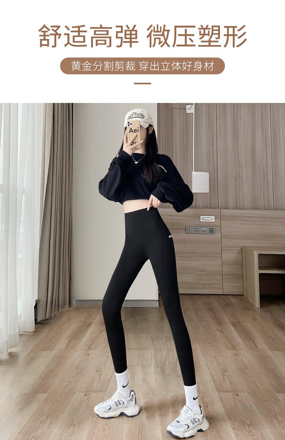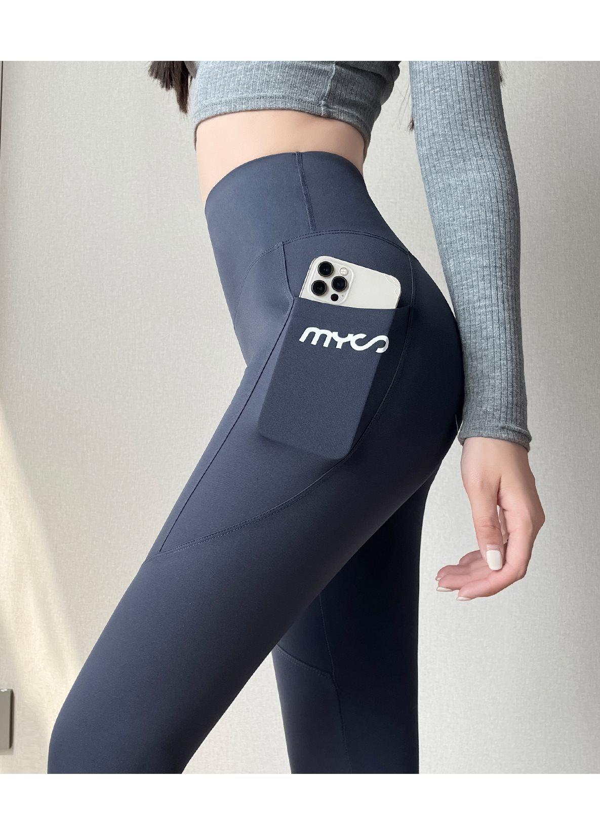 Pantalones de bolsillo de tiburón forrados de polar para mujer, ropa exterior nueva de otoño e invierno 2025, leggings sin costuras de cintura alta engrosados, pantalones de yoga de talla grande