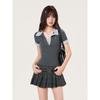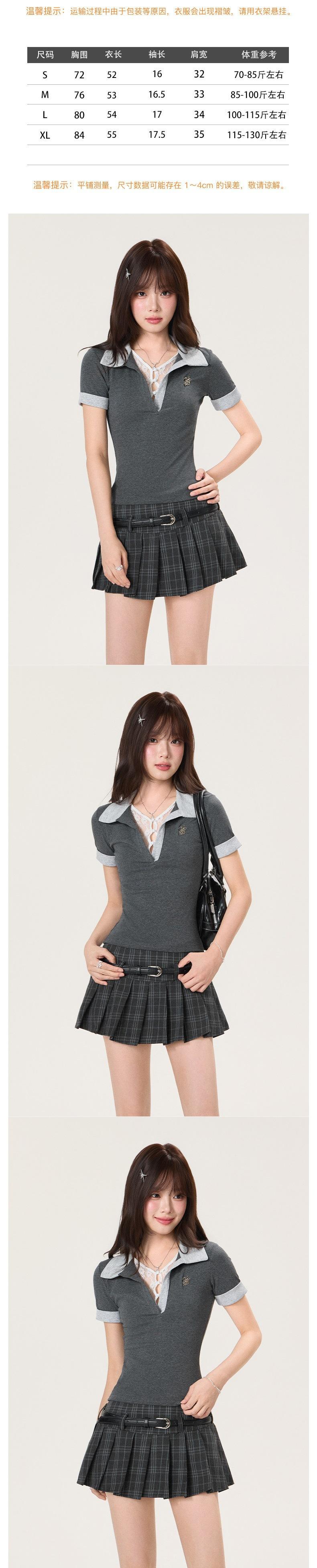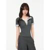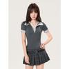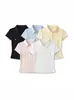 En stock industria pesada coreana chica picante Polo cuello ajuste ceñido manga corta camiseta mujer verano nuevo top hombro tendencia de alto sentido