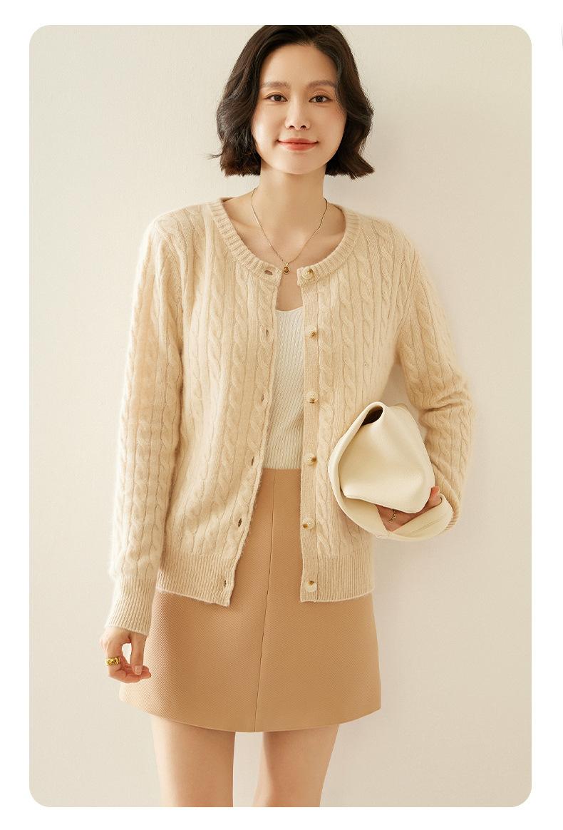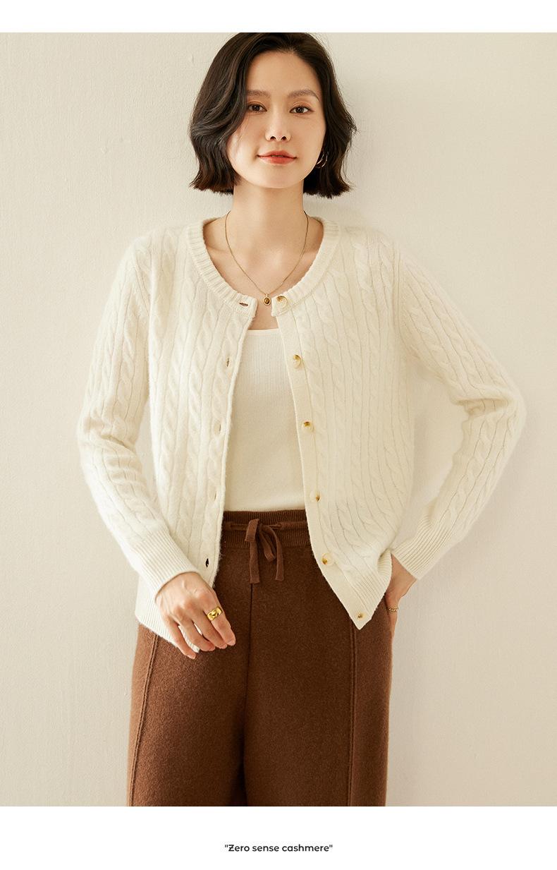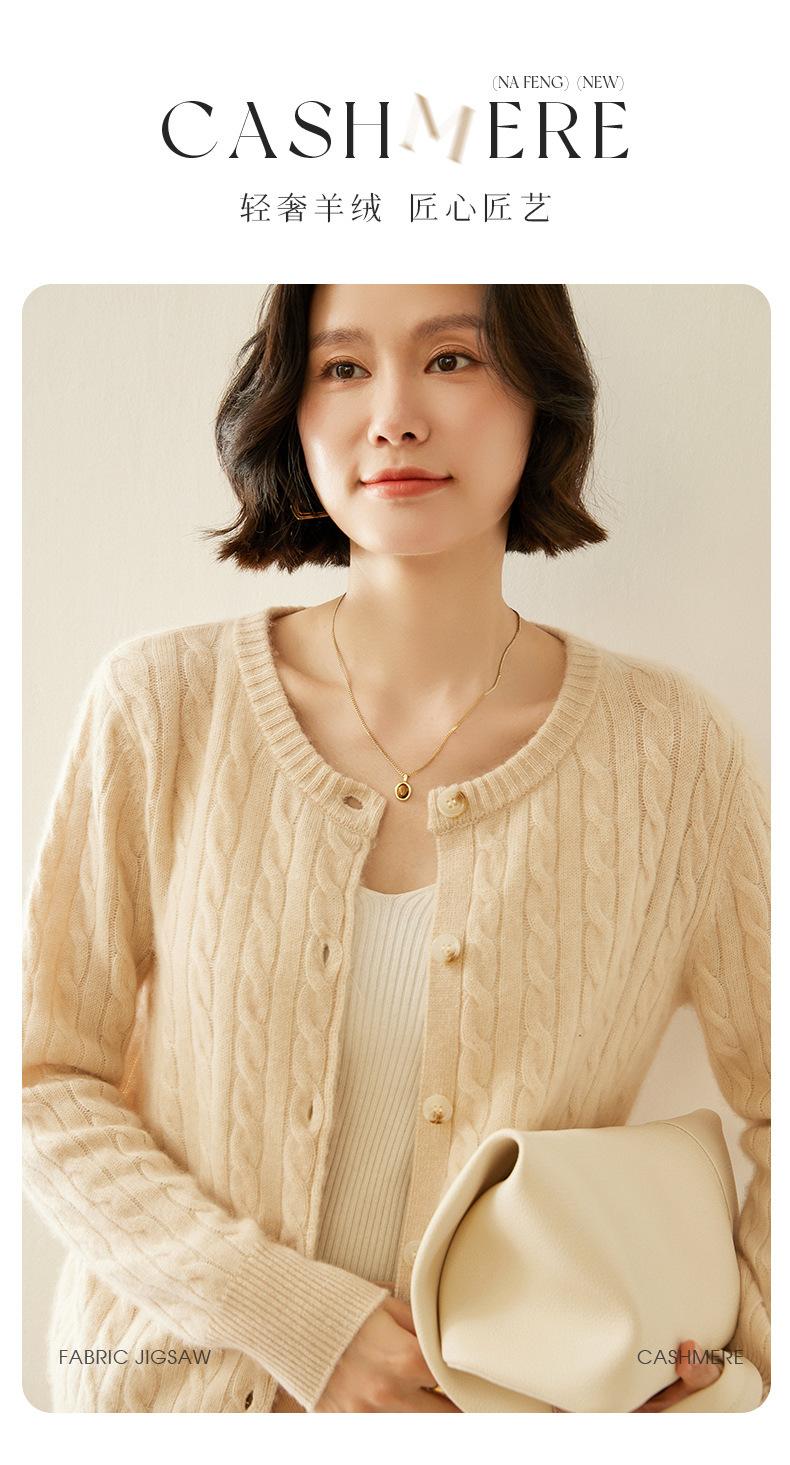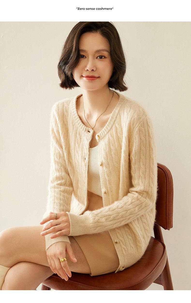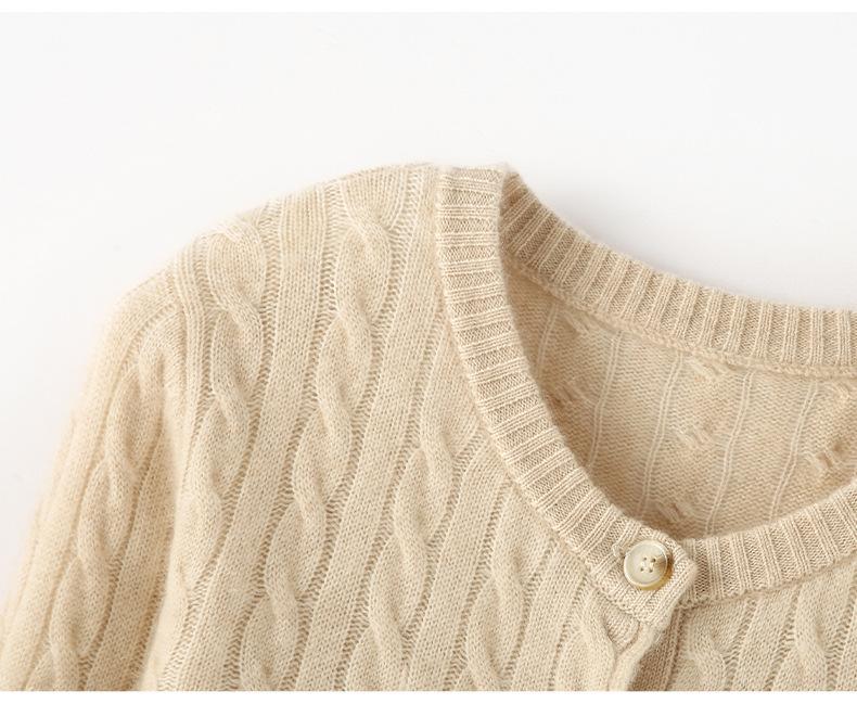 Cárdigan de Cachemira de Punto Trenzado Nuevo Otoño/Invierno 2025 para Mujer, Suéter Corto Holgado de Moda, Abrigo Versátil de Manga Larga de Punto