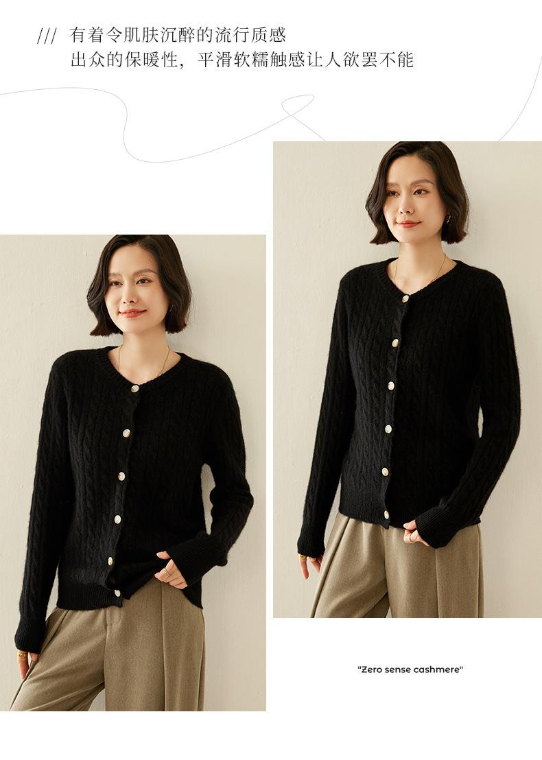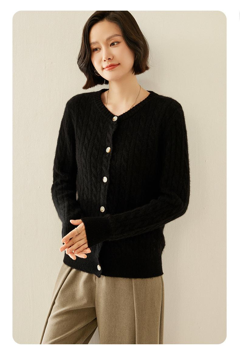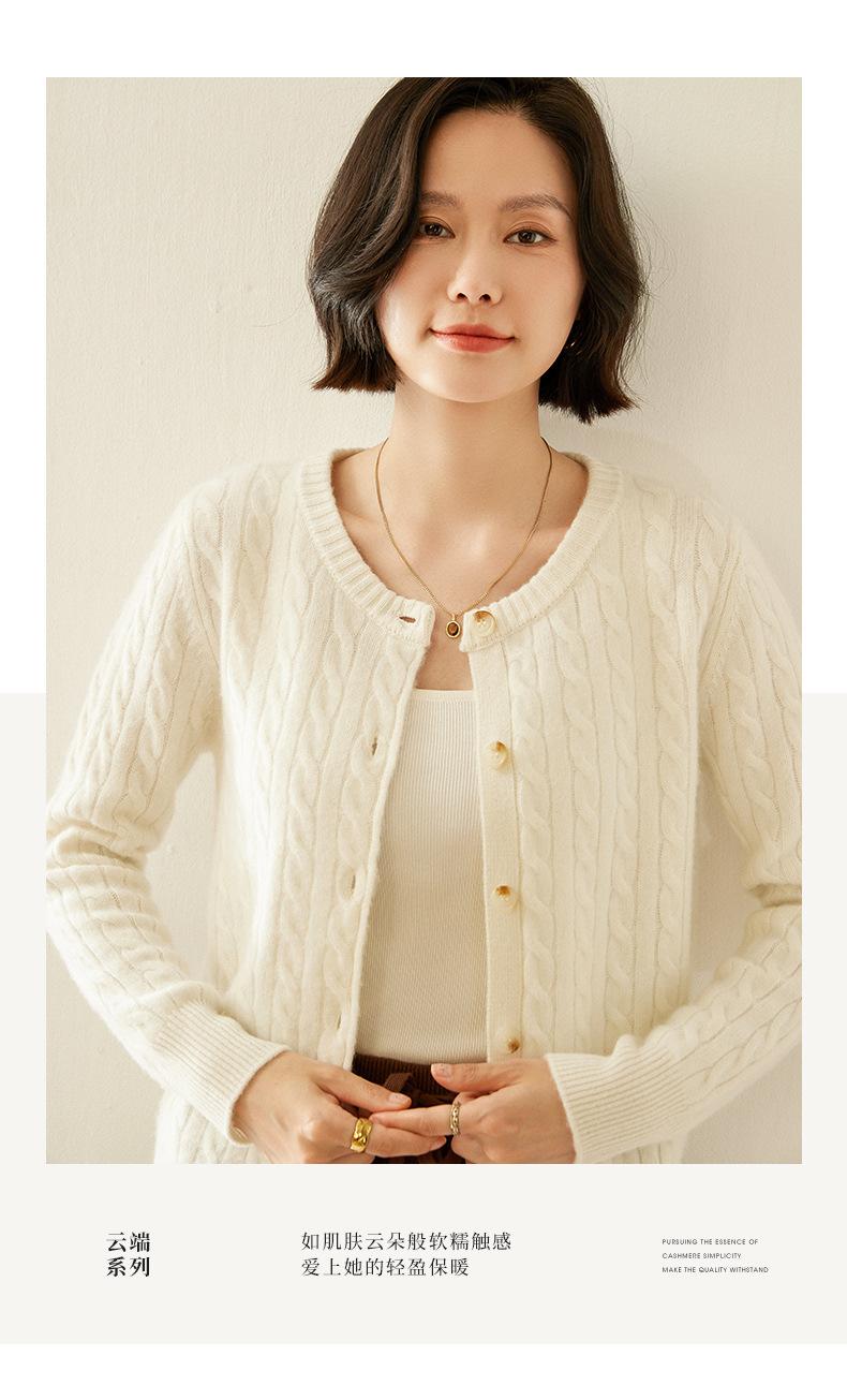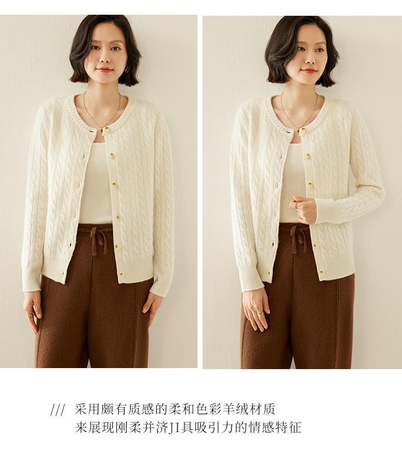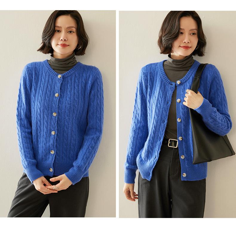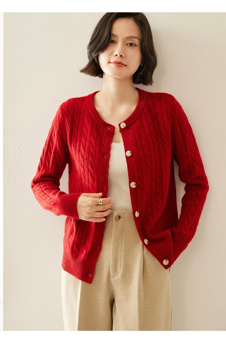 Cárdigan de Cachemira de Punto Trenzado Nuevo Otoño/Invierno 2025 para Mujer, Suéter Corto Holgado de Moda, Abrigo Versátil de Manga Larga de Punto