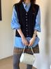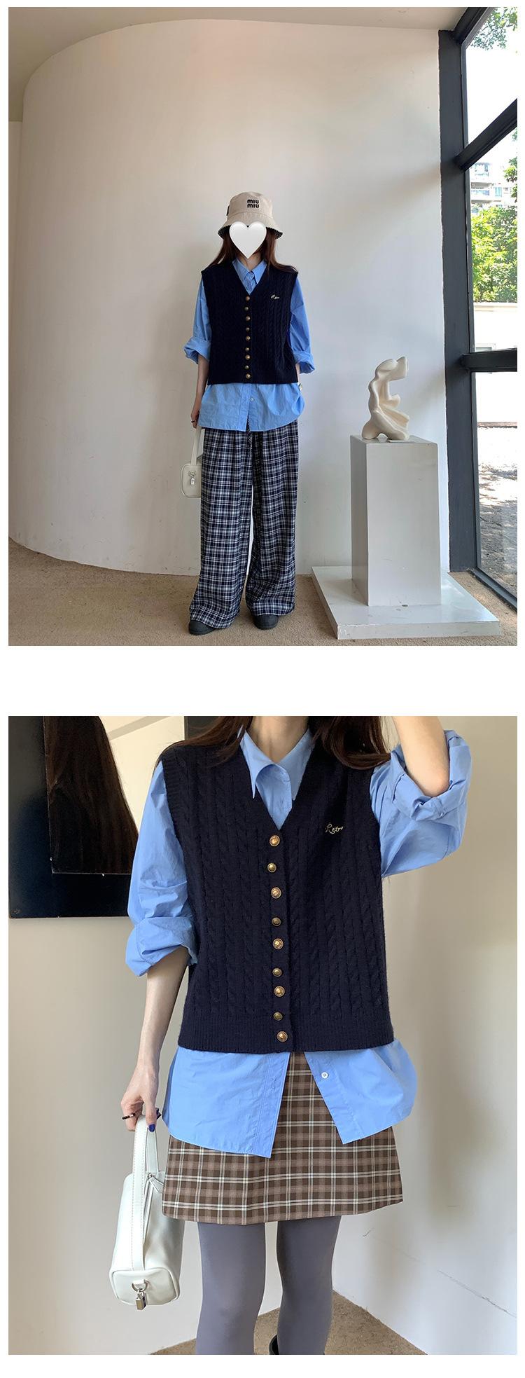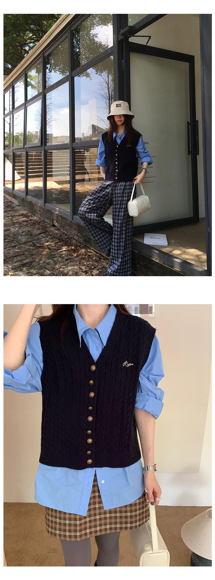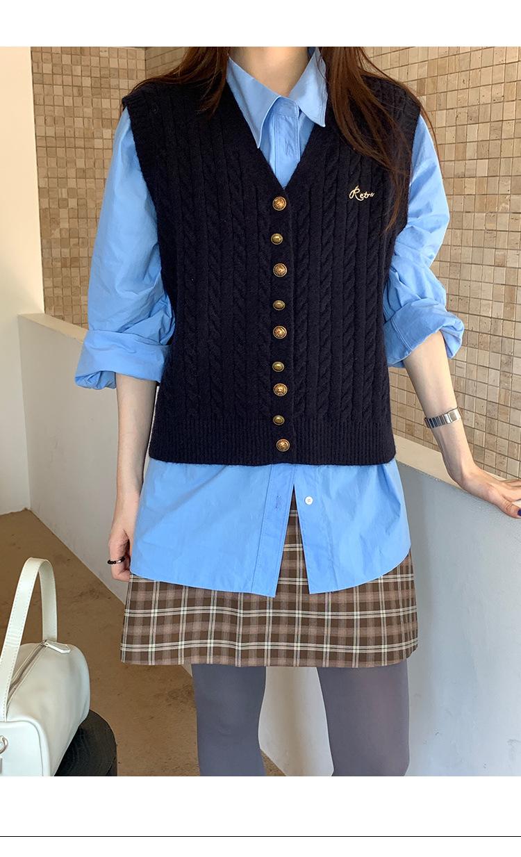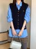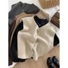 Chaleco de punto de cuello en V en capas de estilo coreano para mujer, otoño 2025 nuevo, versátil, cárdigan de un solo botón, chaleco sin mangas