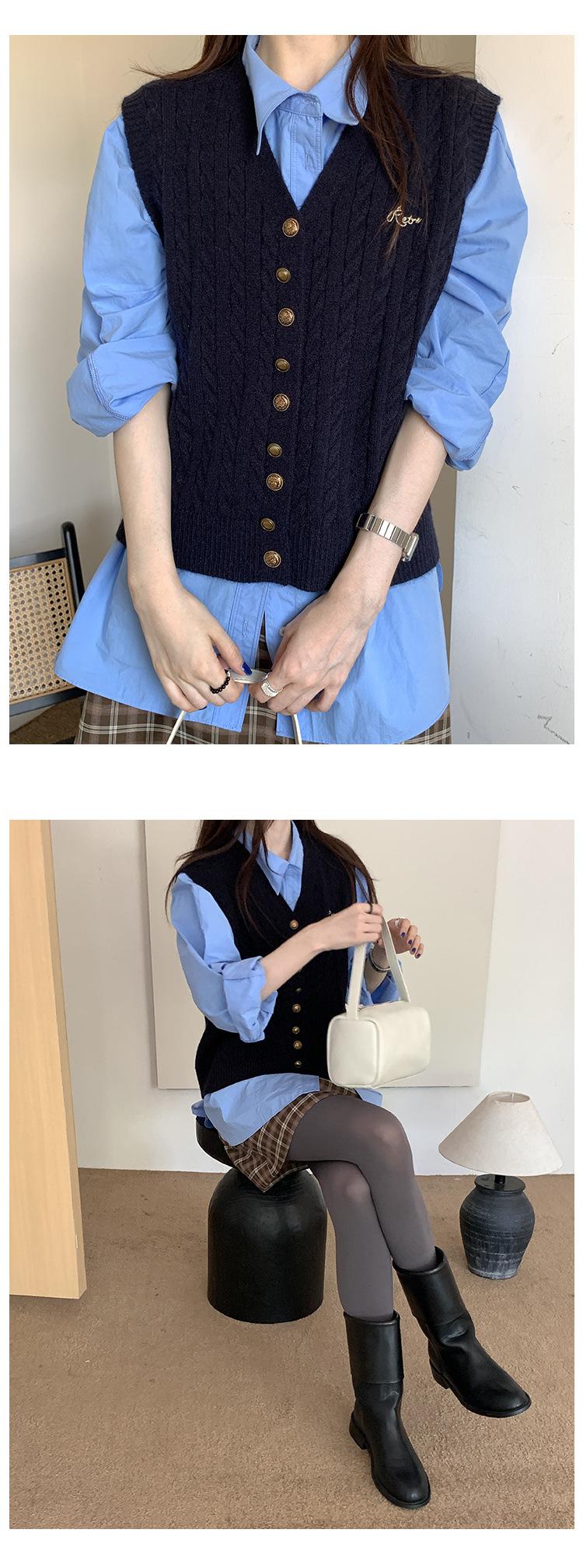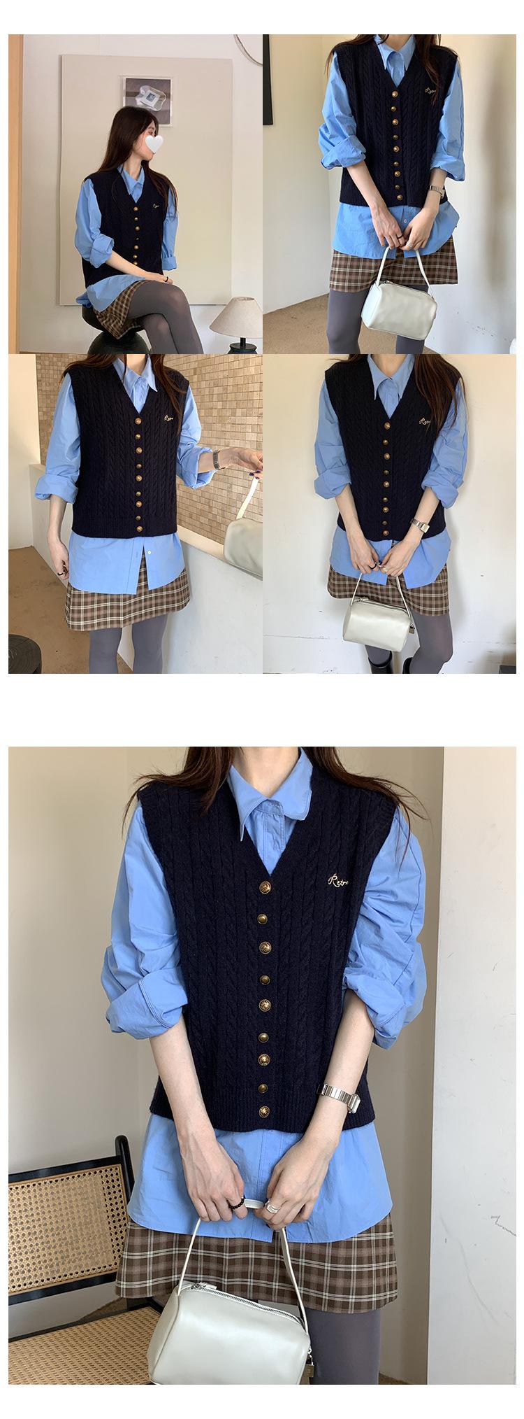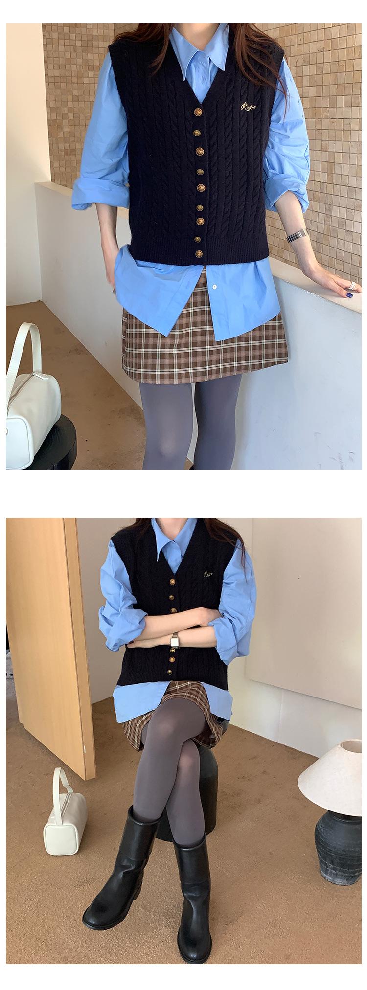 Chaleco de punto de cuello en V en capas de estilo coreano para mujer, otoño 2025 nuevo, versátil, cárdigan de un solo botón, chaleco sin mangas