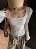 Nueva playera básica de cuello cuadrado para mujer, otoño e invierno, hombro recto, adelgazante, manga larga, para exterior, top modal negro de alta gama