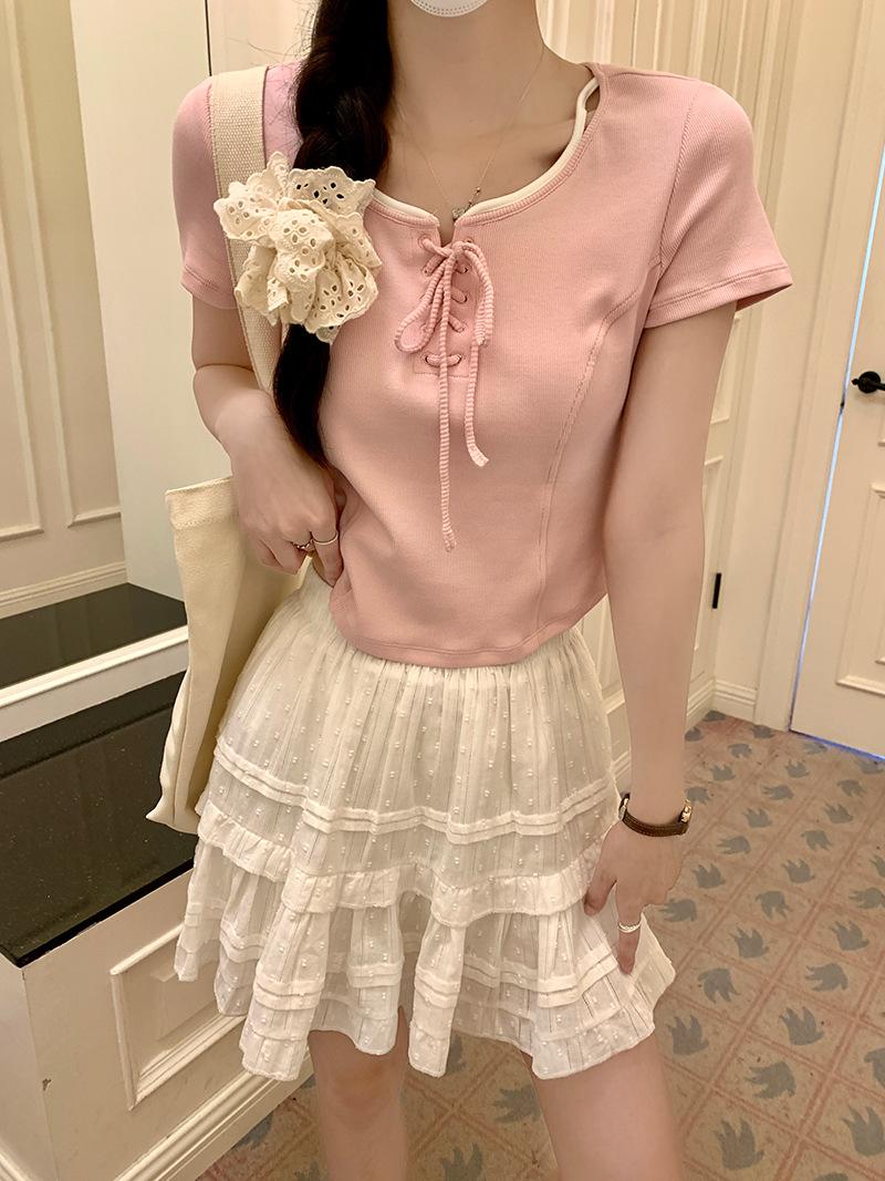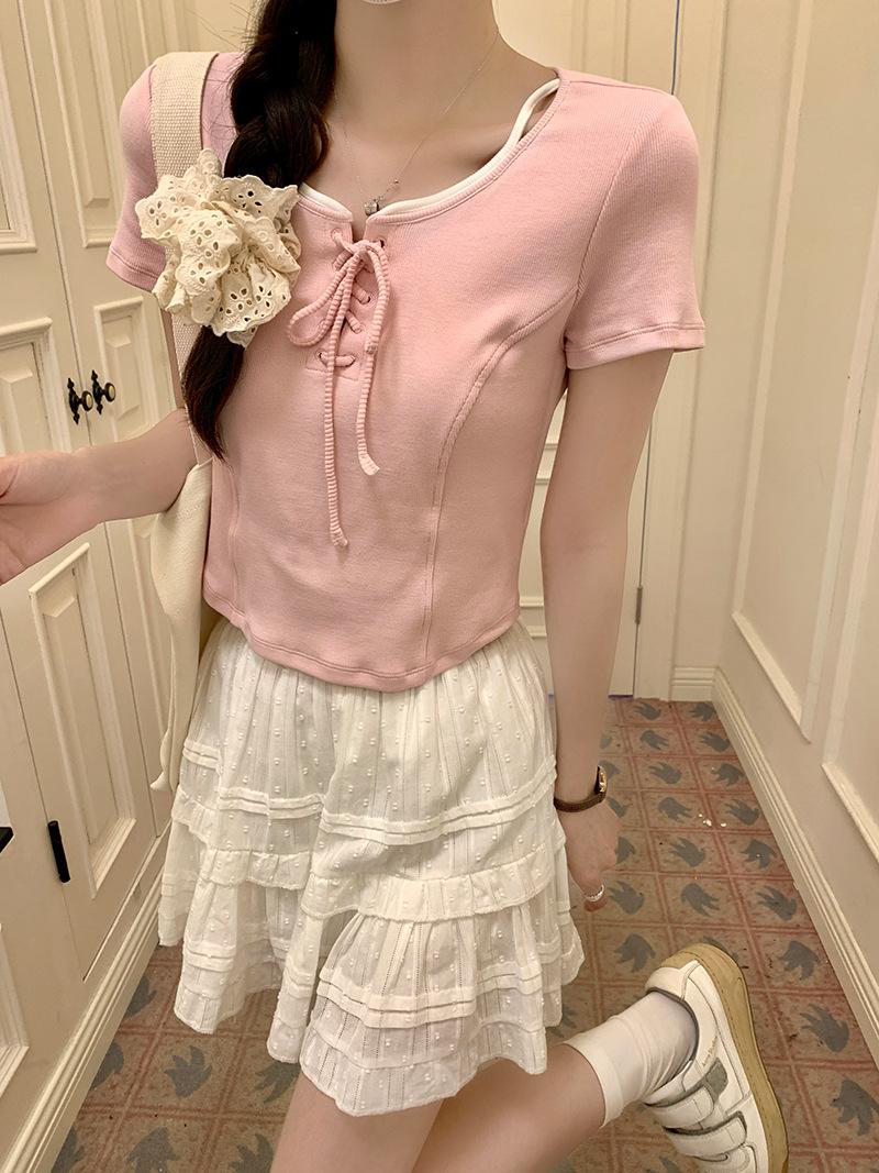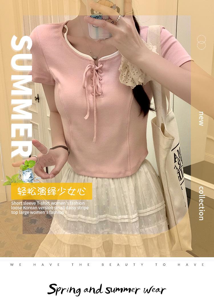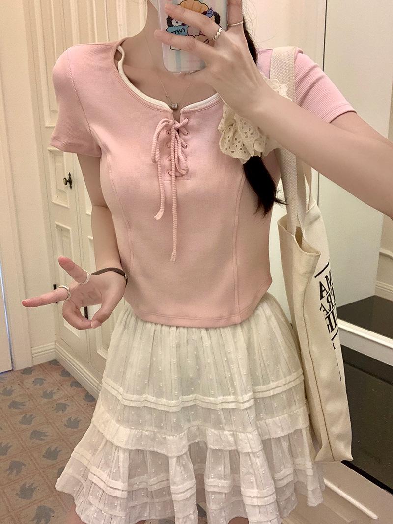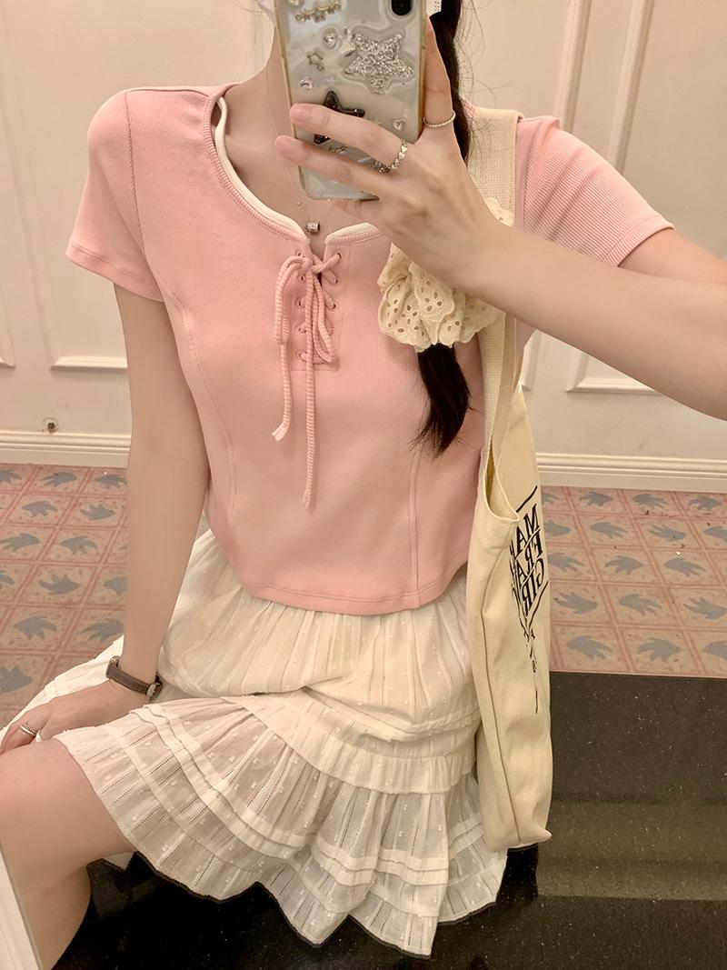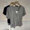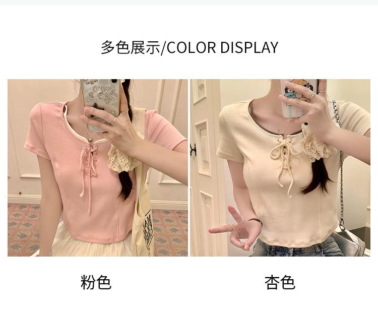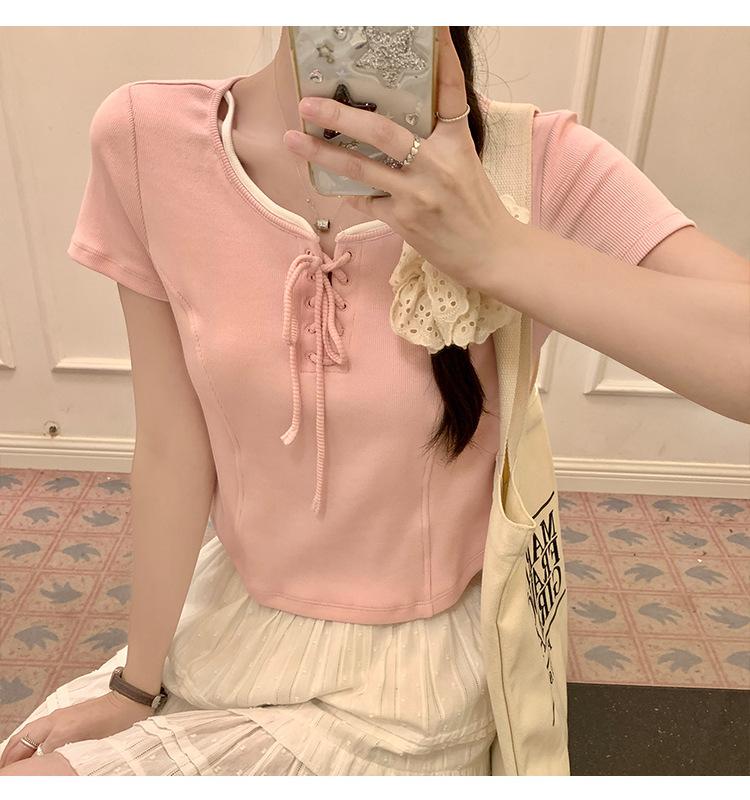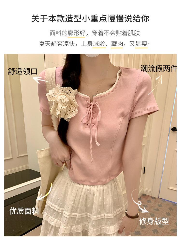 Fábrica de Origen Especializada en Camisetas de Manga Corta de Dos Piezas Falsas para Mujer en Verano, Tops Cortos, Ajustados y Hermosos con Tirantes