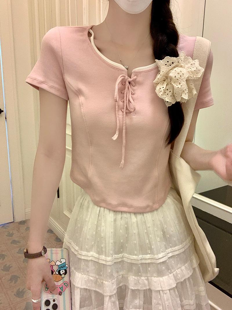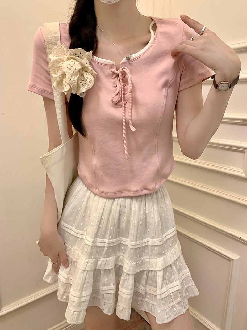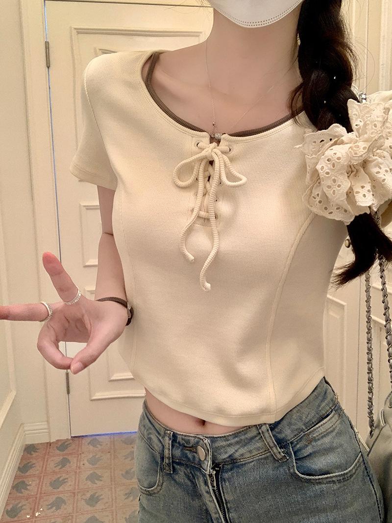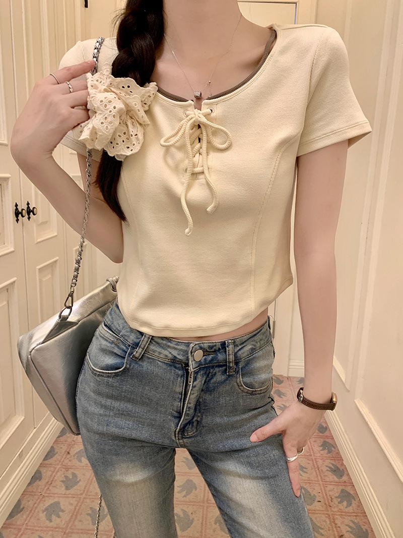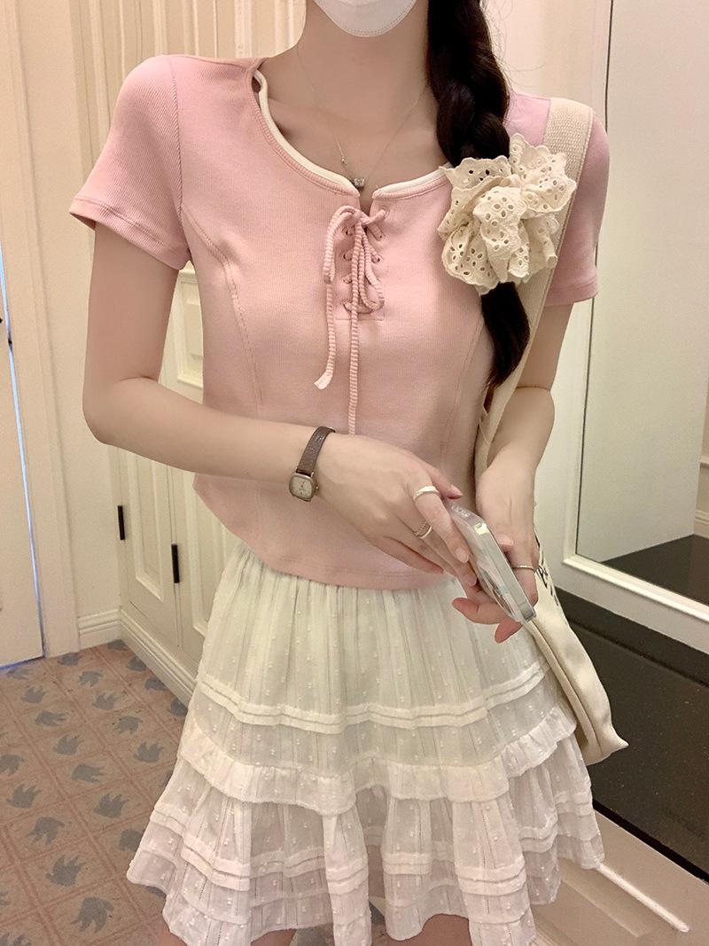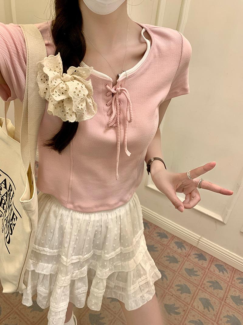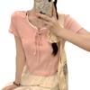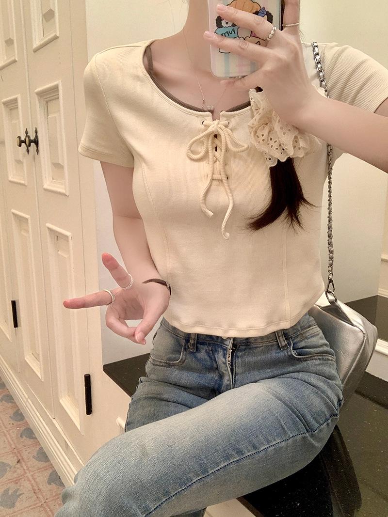 Fábrica de Origen Especializada en Camisetas de Manga Corta de Dos Piezas Falsas para Mujer en Verano, Tops Cortos, Ajustados y Hermosos con Tirantes