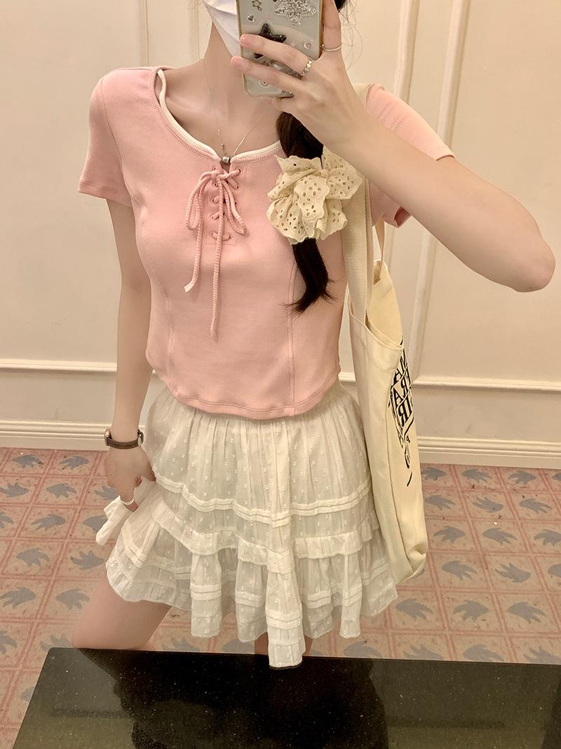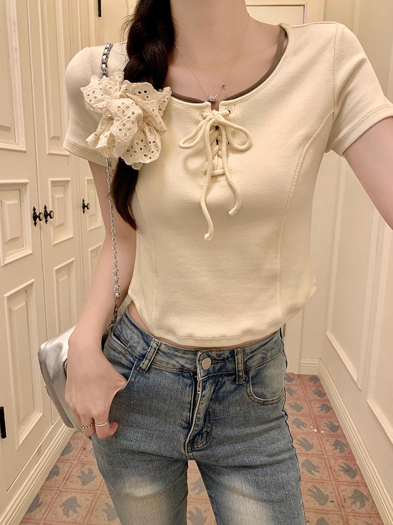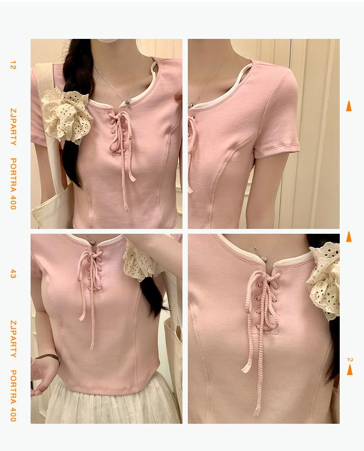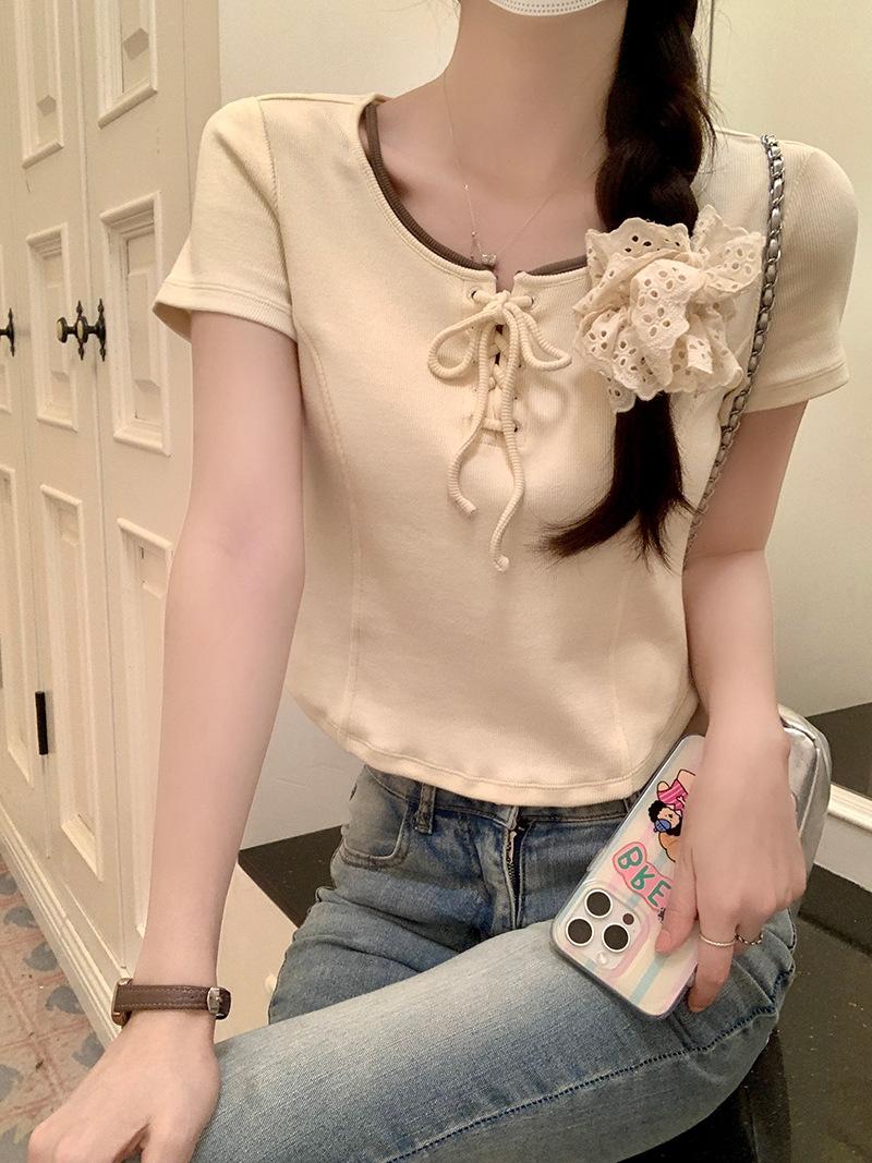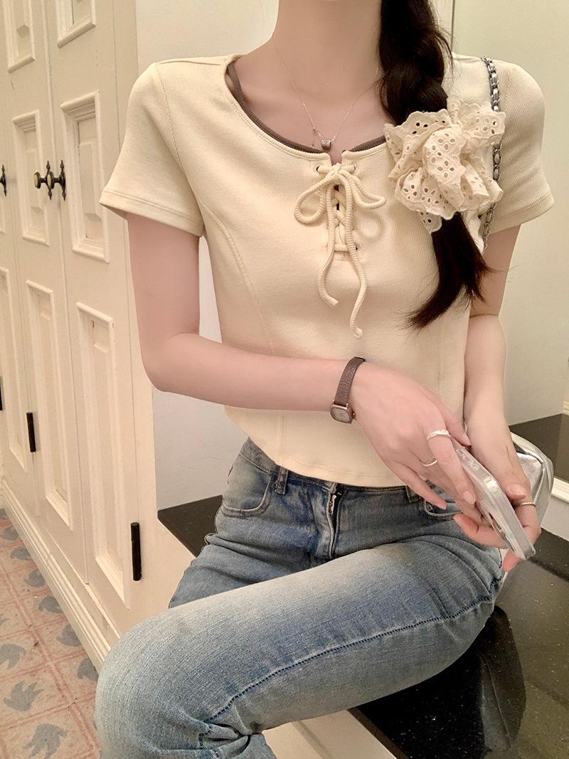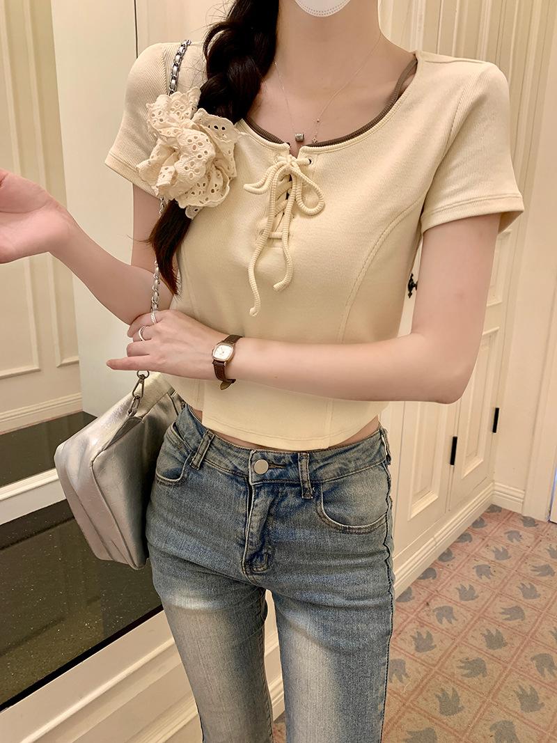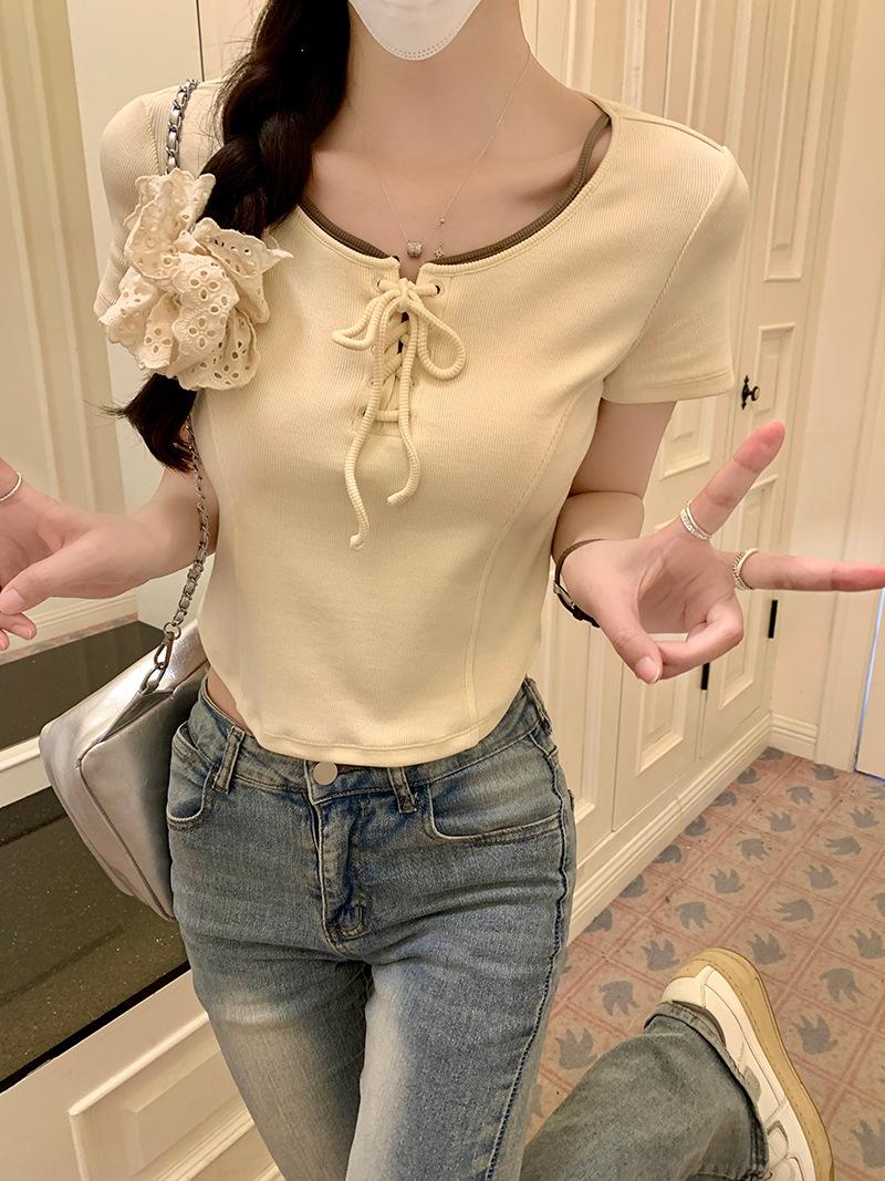 Fábrica de Origen Especializada en Camisetas de Manga Corta de Dos Piezas Falsas para Mujer en Verano, Tops Cortos, Ajustados y Hermosos con Tirantes
