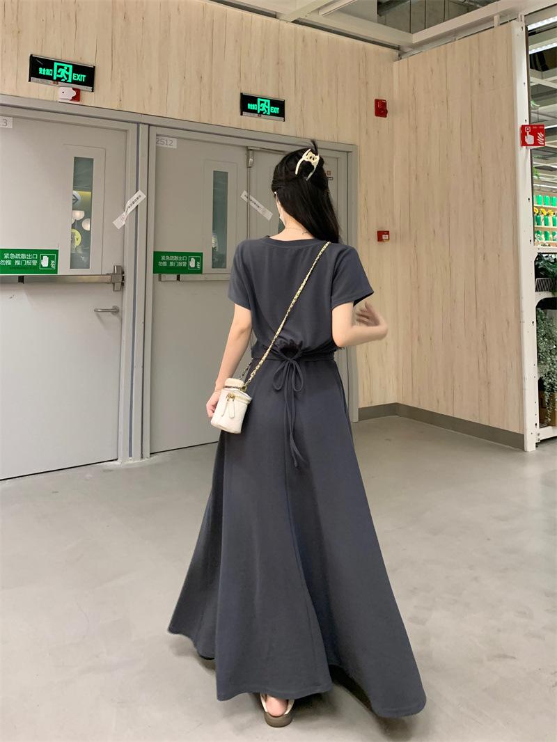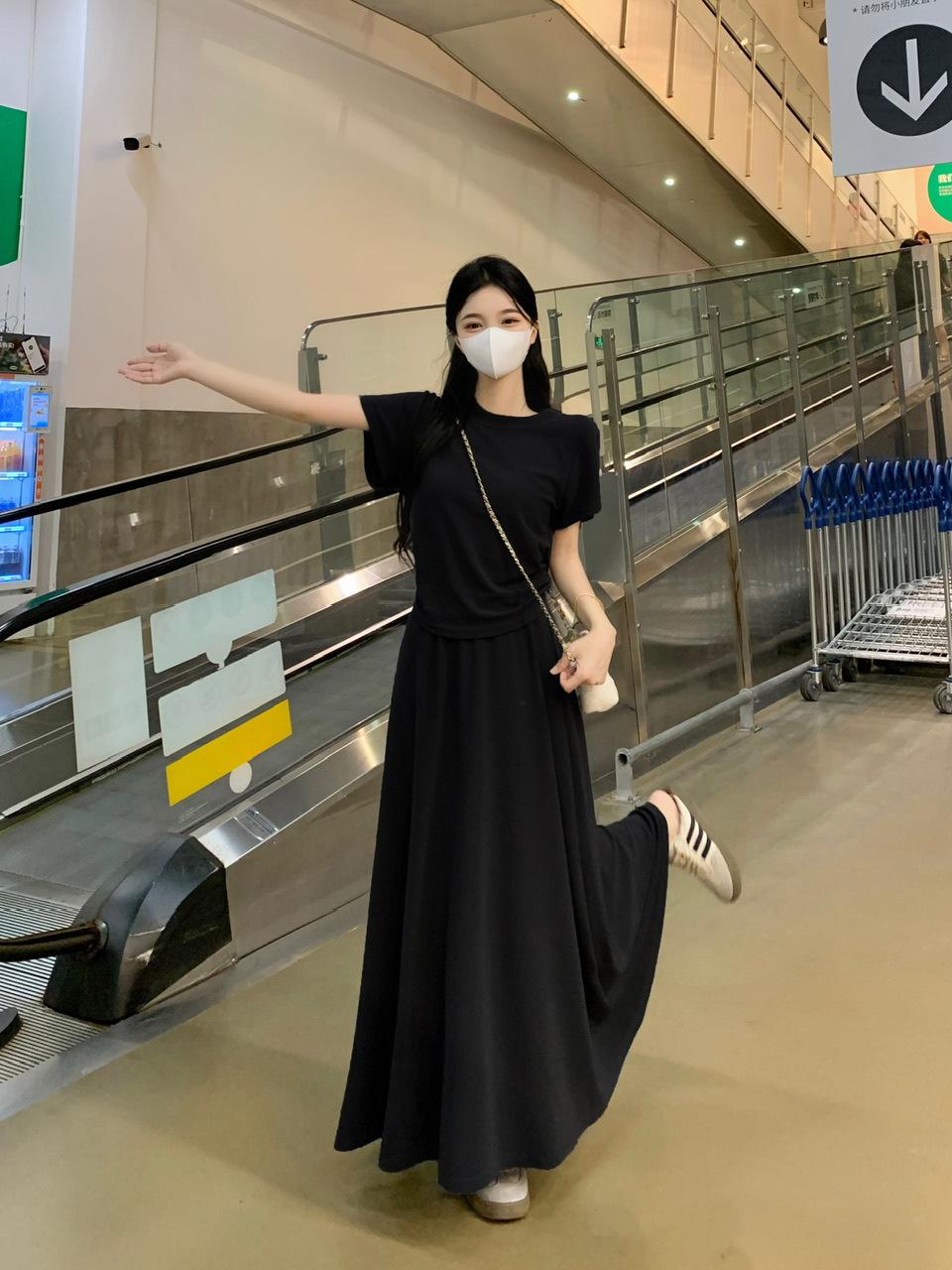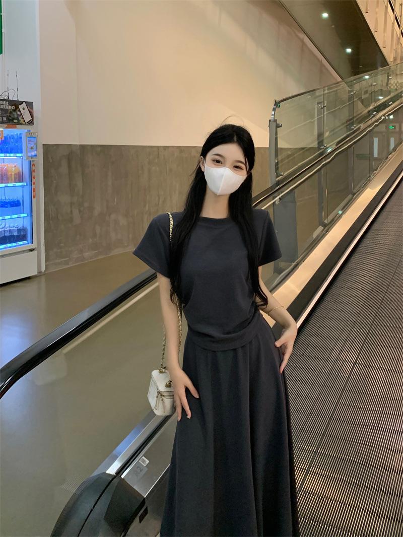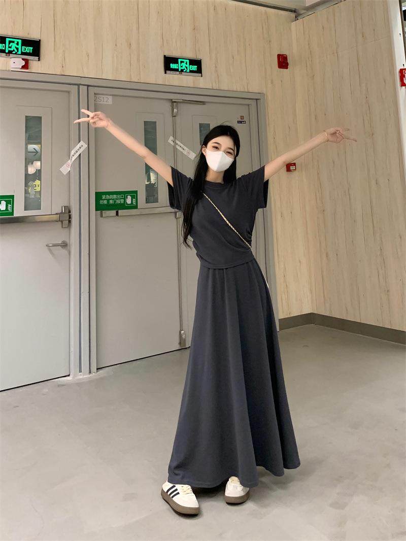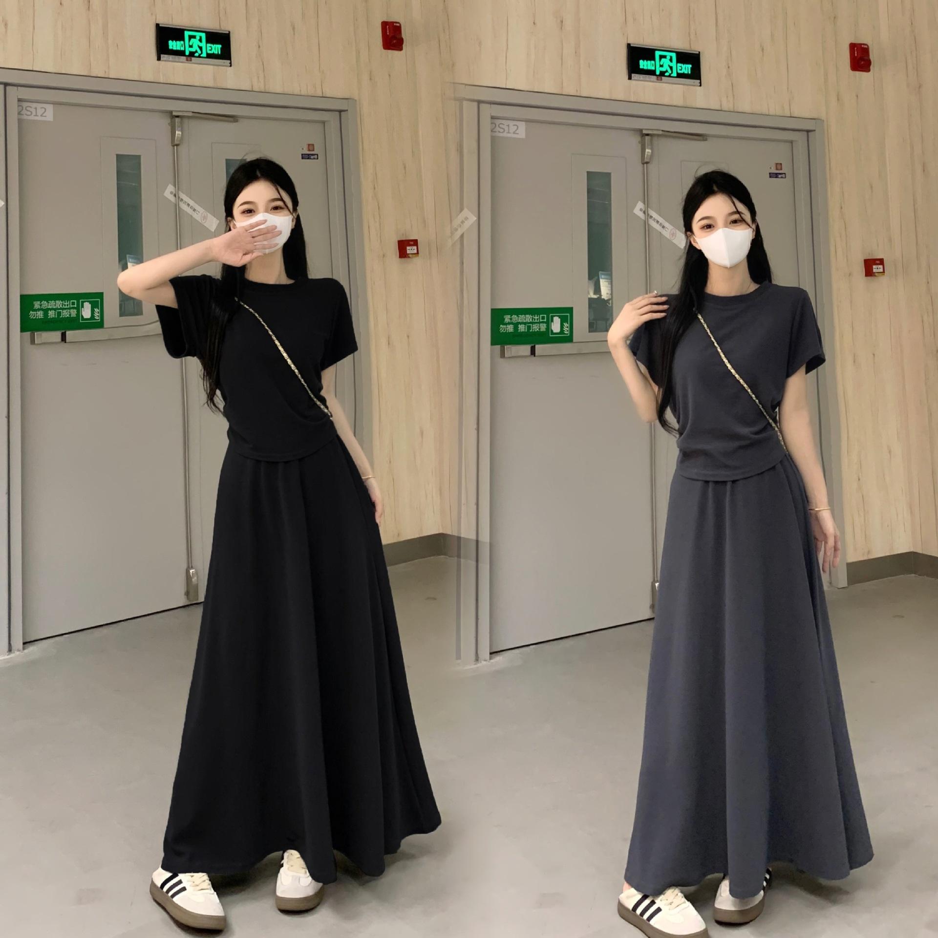 Conjunto de Ropa de Talla Grande Estilo Coreano para Mujer, Top de Verano de Manga Corta y Cuello Redondo, Falda Midi Ajustada de Cintura Alta, Conjunto de Dos Piezas para Mujeres Curvilíneas