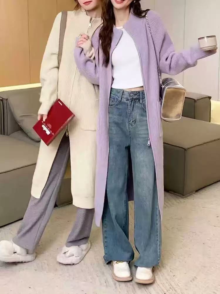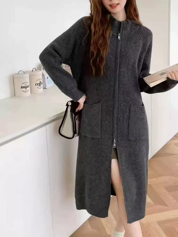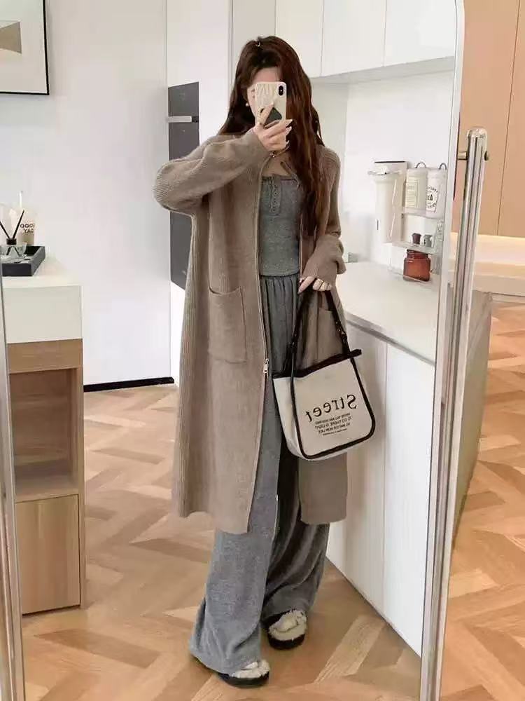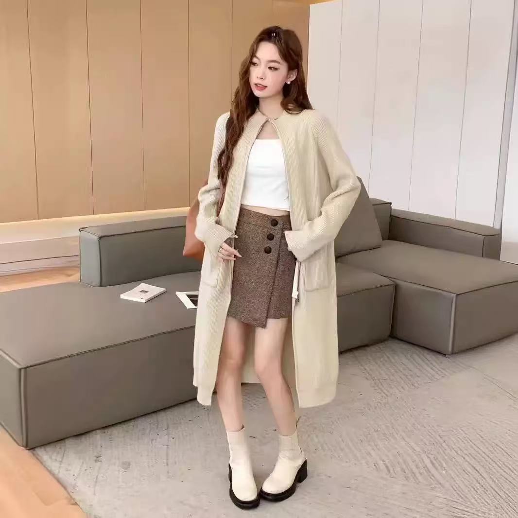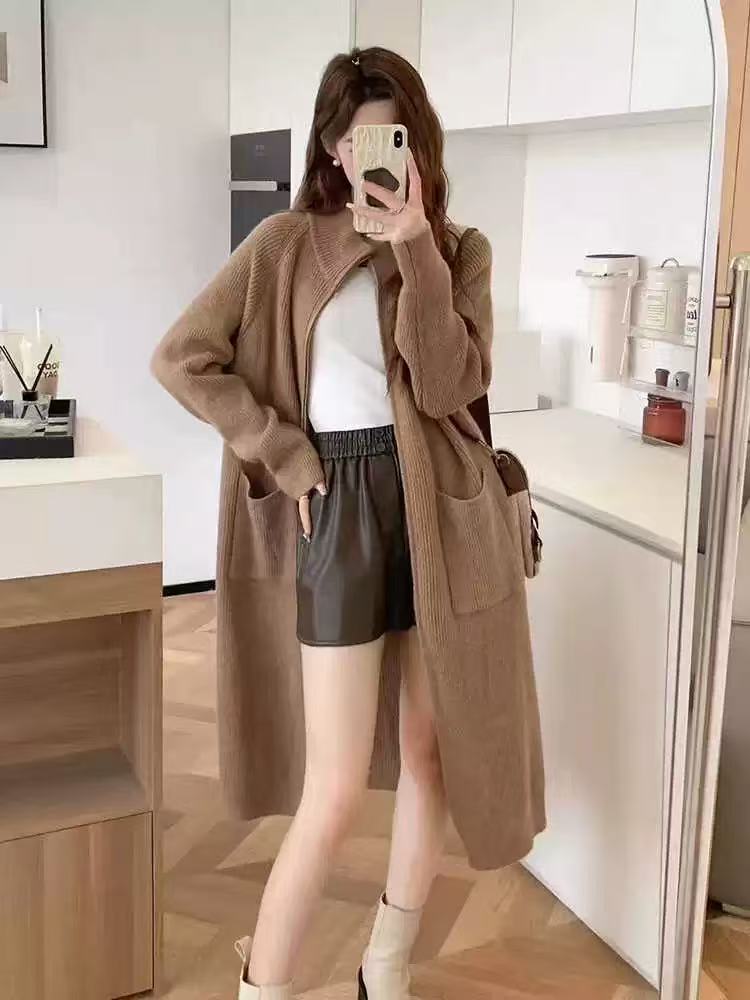 Cárdigan de punto estilo coreano estilo holgazán para mujer en otoño e invierno, suéter suelto y versátil de longitud media, moderno