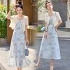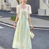 Vestido de tirantes para mujer de verano, lujo ligero, estilo francés retro, súper favorecedor, vestido cárdigan de encaje, conjunto de dos piezas