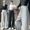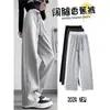 Pantalones de pierna estrecha y pierna ancha para mujer petite 2025 Nuevo Primavera y Otoño Caída Suelto Casual Pantalones Banana Pantalones Deportivos Blanco-Gris