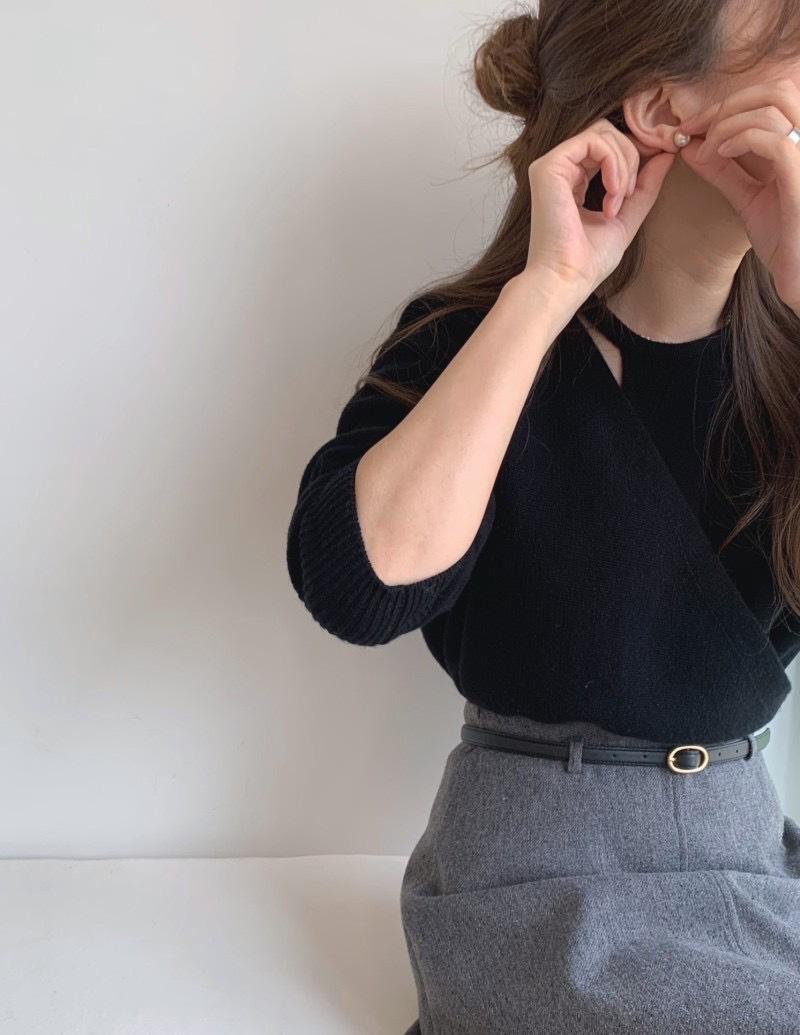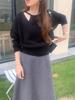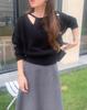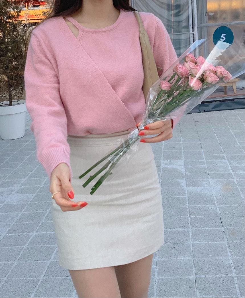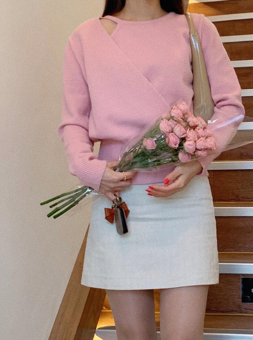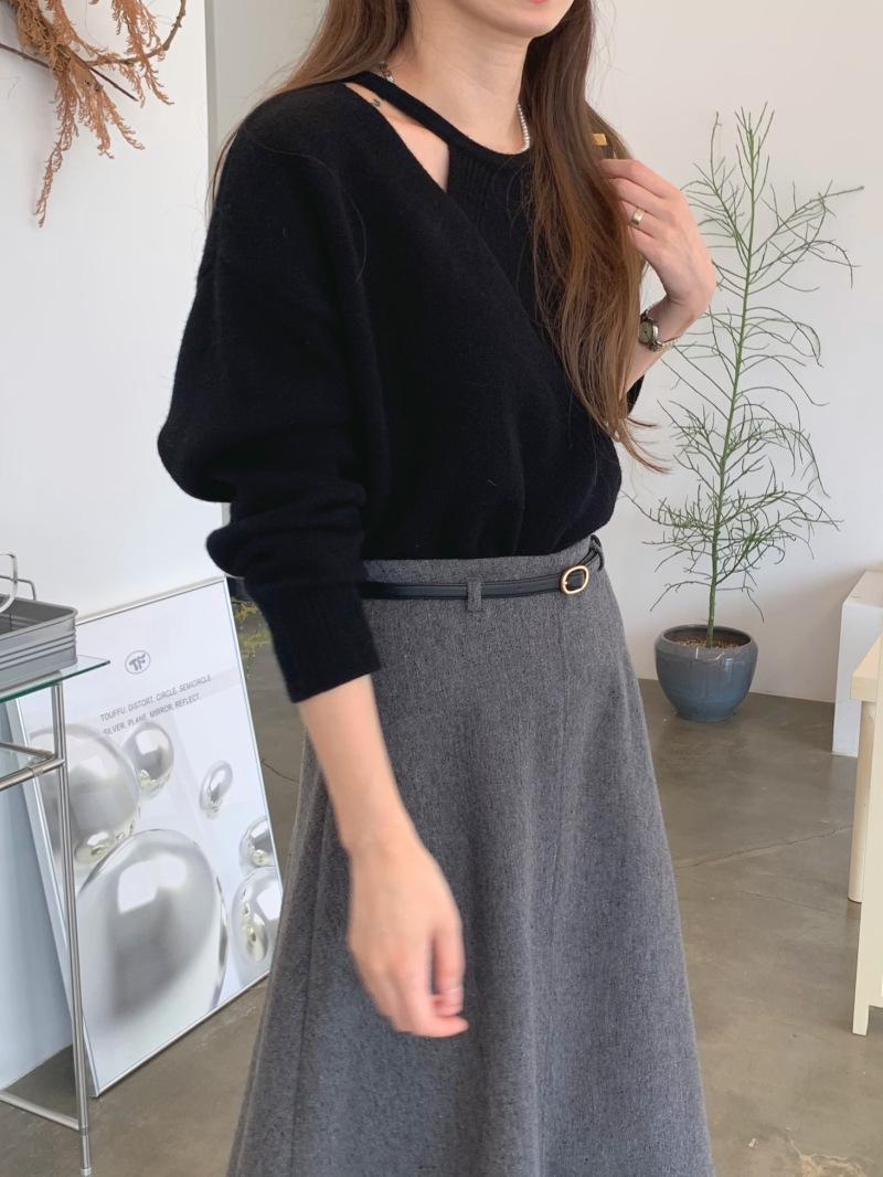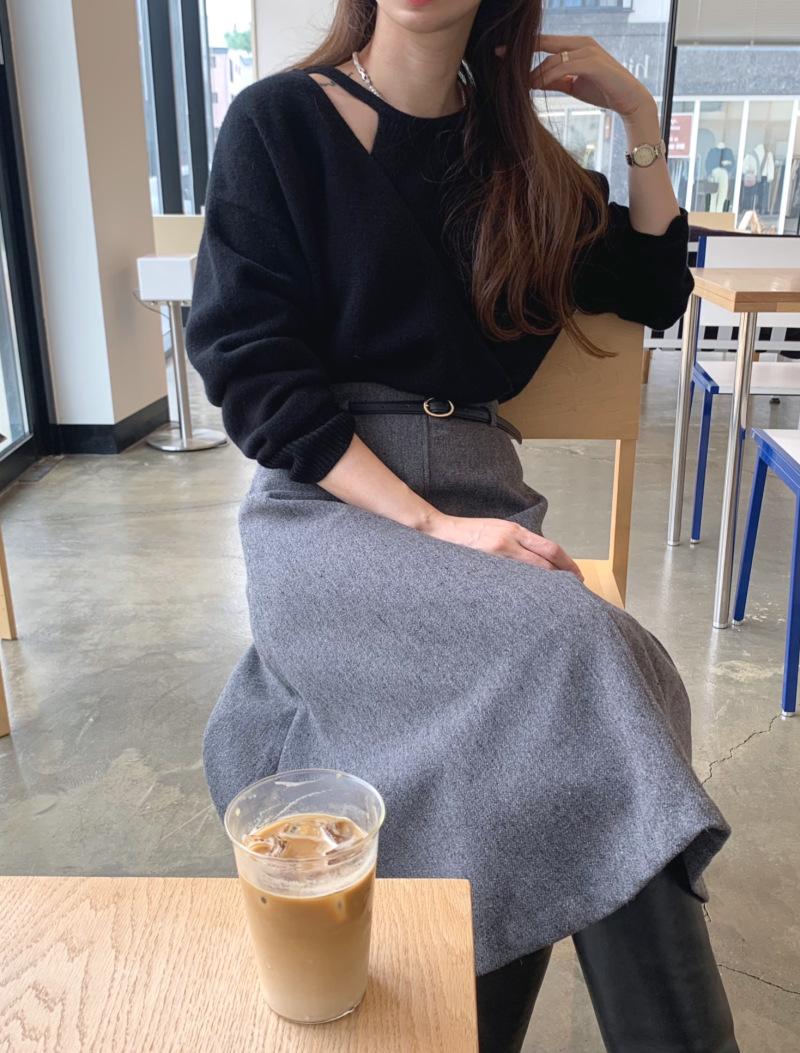 Suéter de Punto con Temperamento Francés, Diseño con Hombros Descubiertos, Sentido Irregular, Tres Botones, Adelgazante para la Cintura, Manga Larga