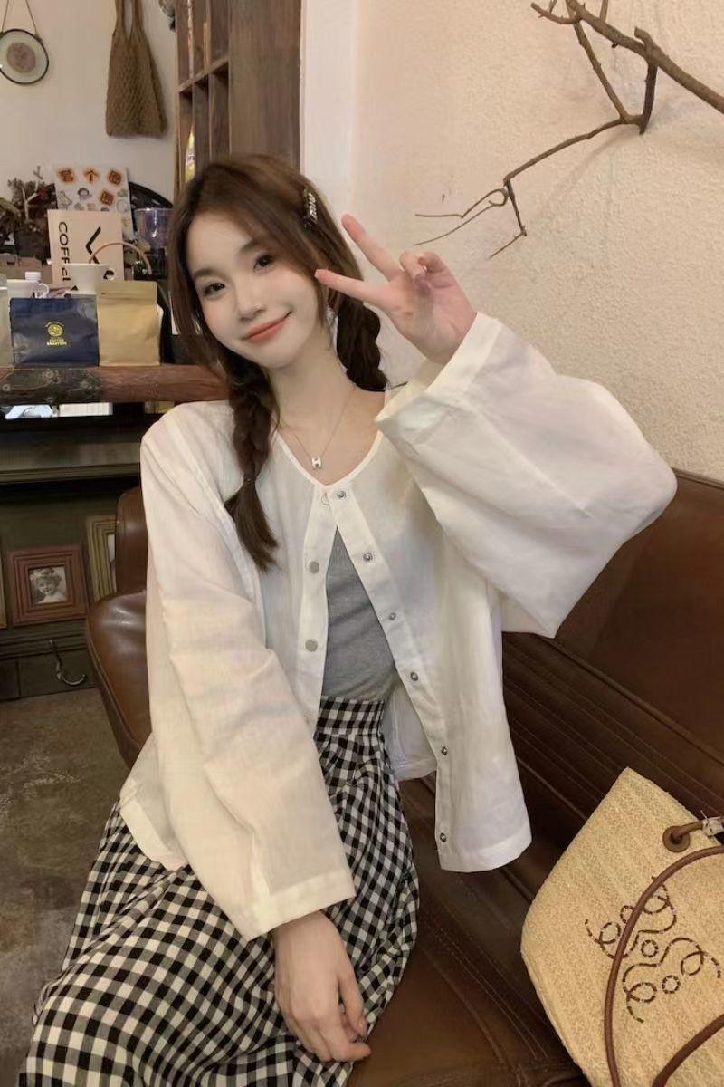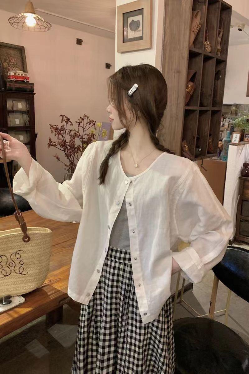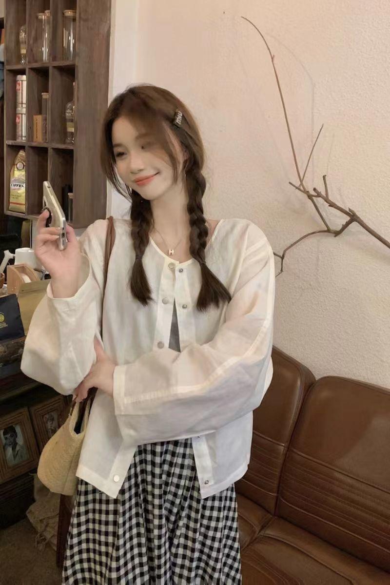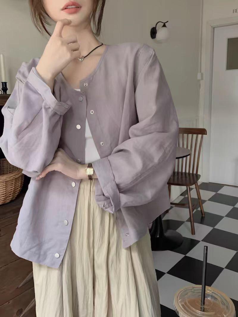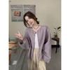 Primavera y Verano Nuevo Versátil Top Camisa Morada Mujer Sentido del Diseño Nicho Petite Casual Protección Solar