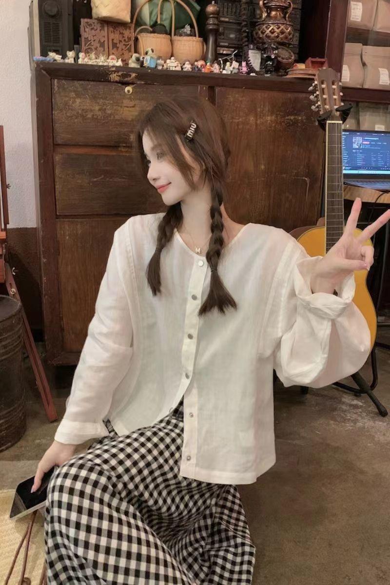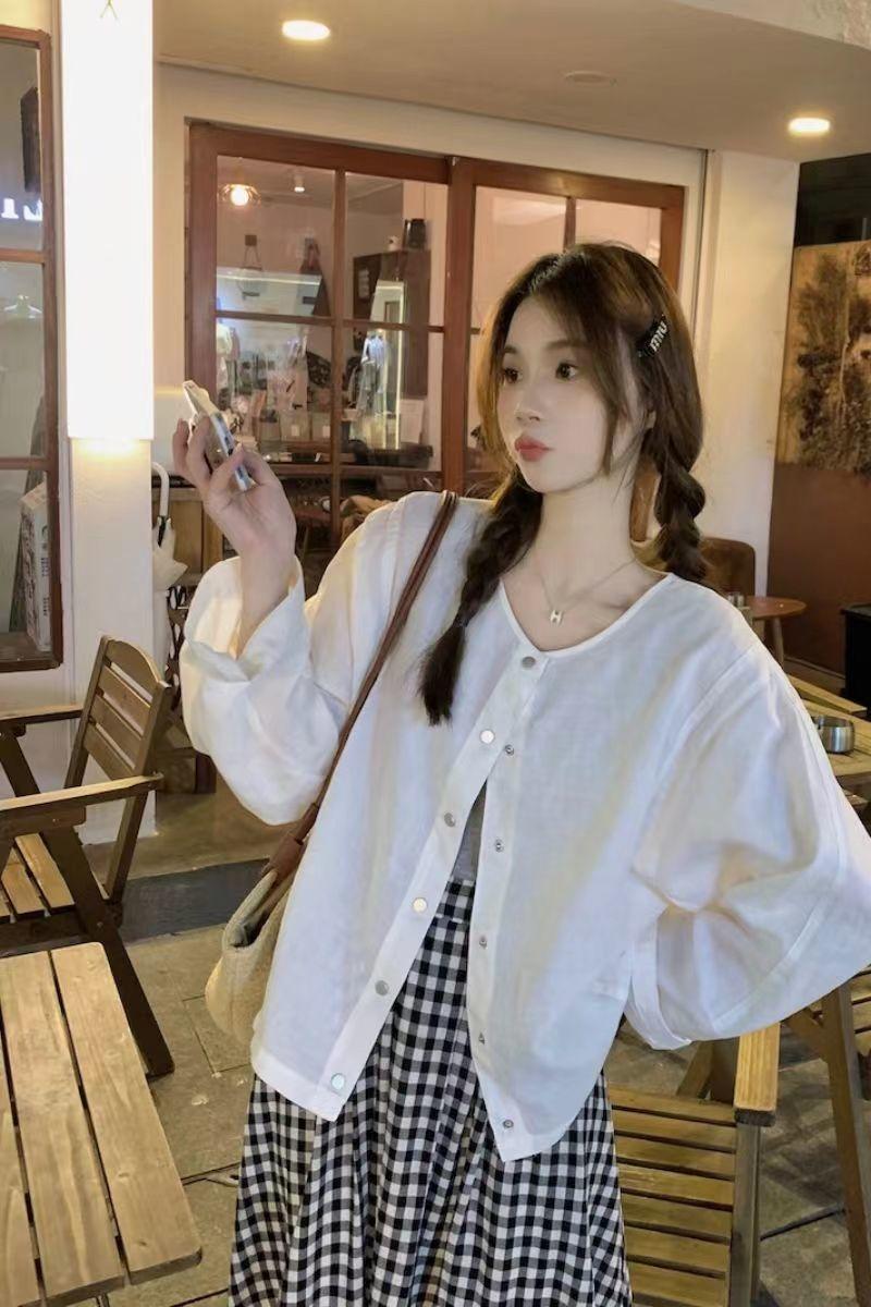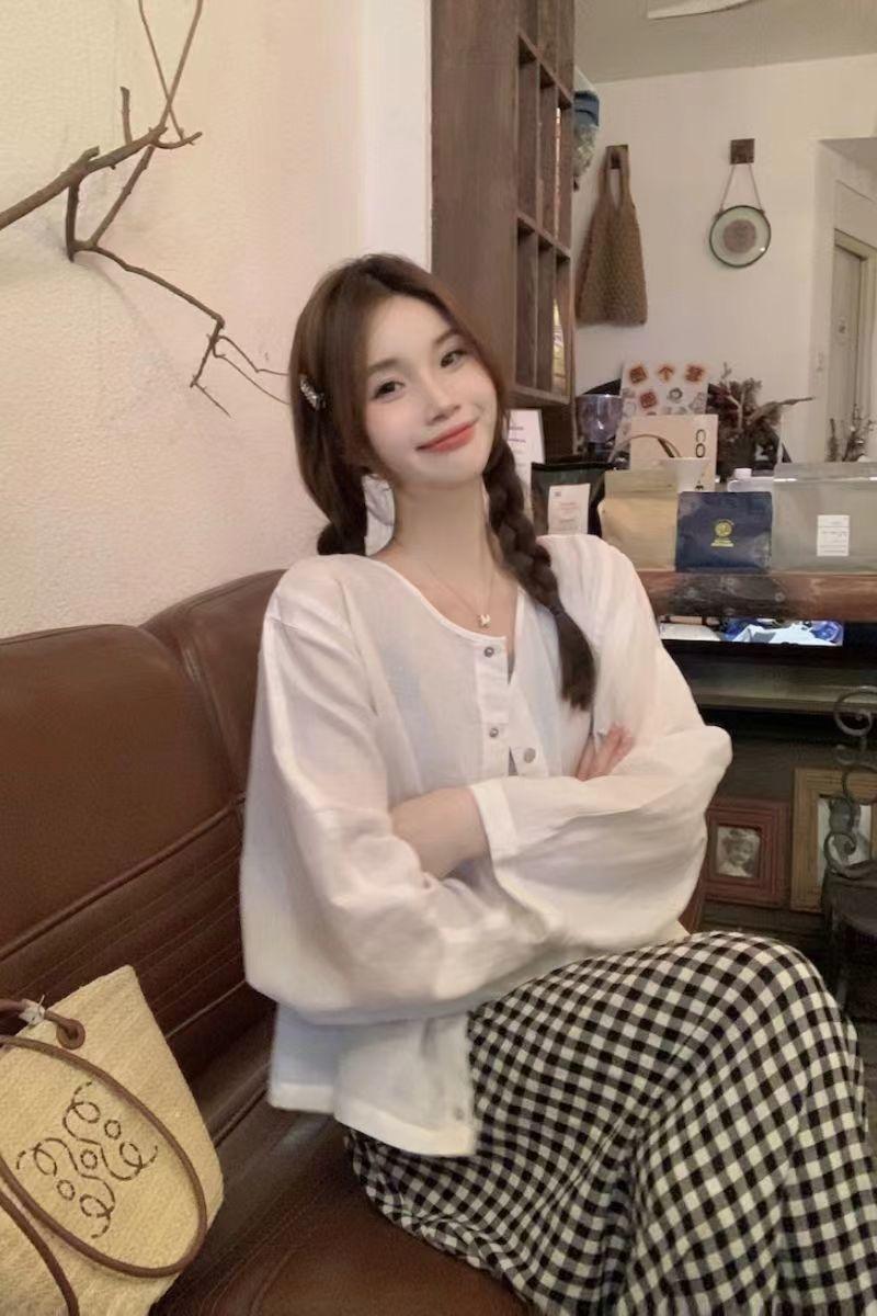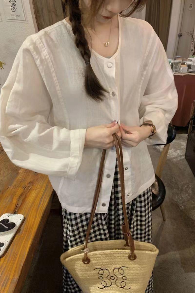 Primavera y Verano Nuevo Versátil Top Camisa Morada Mujer Sentido del Diseño Nicho Petite Casual Protección Solar