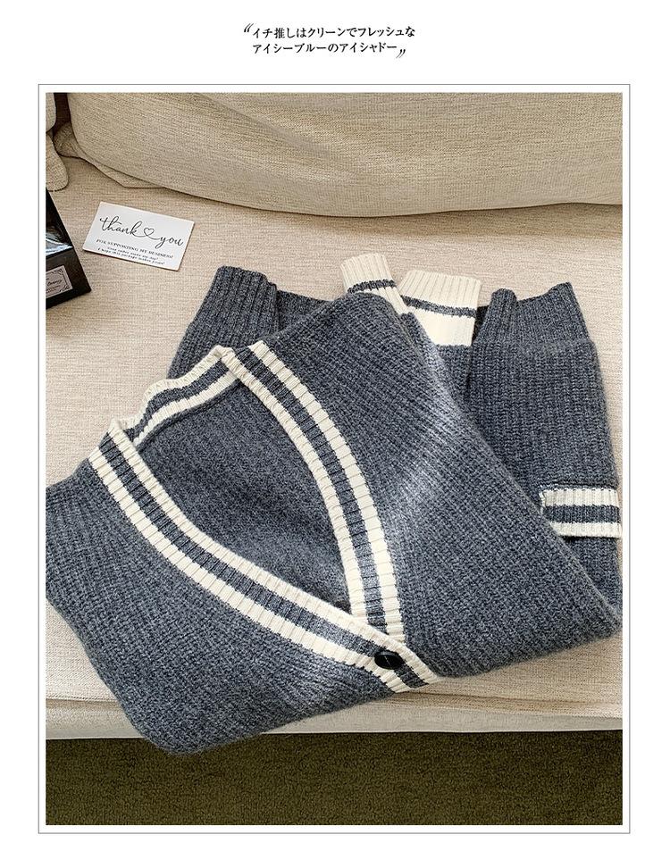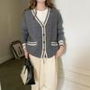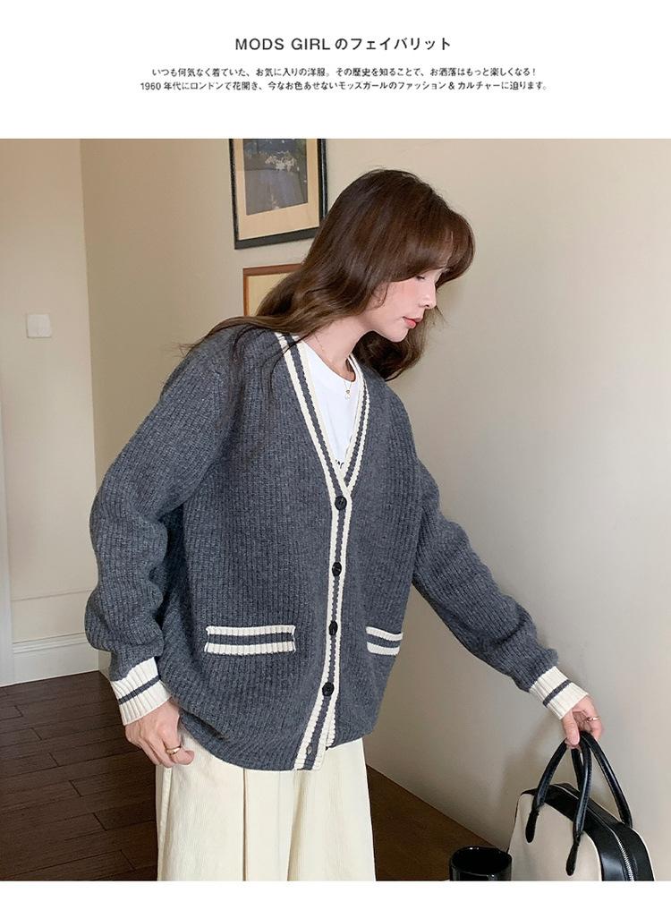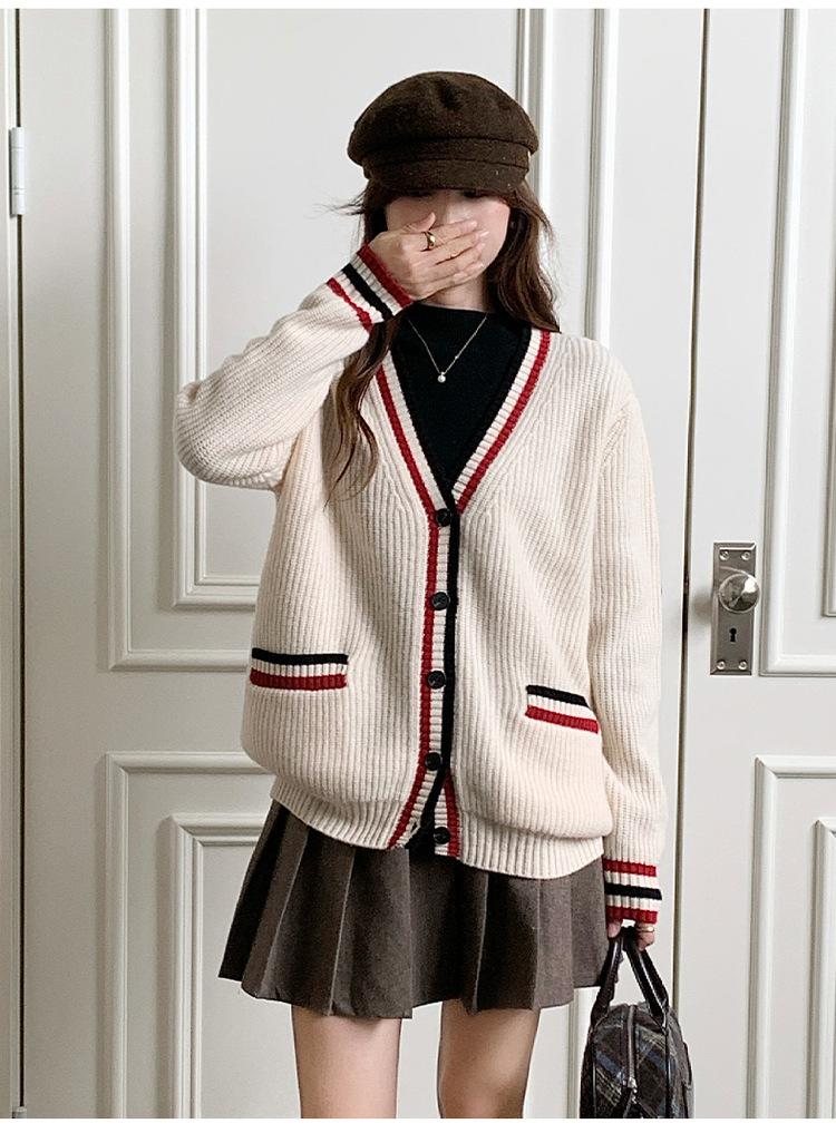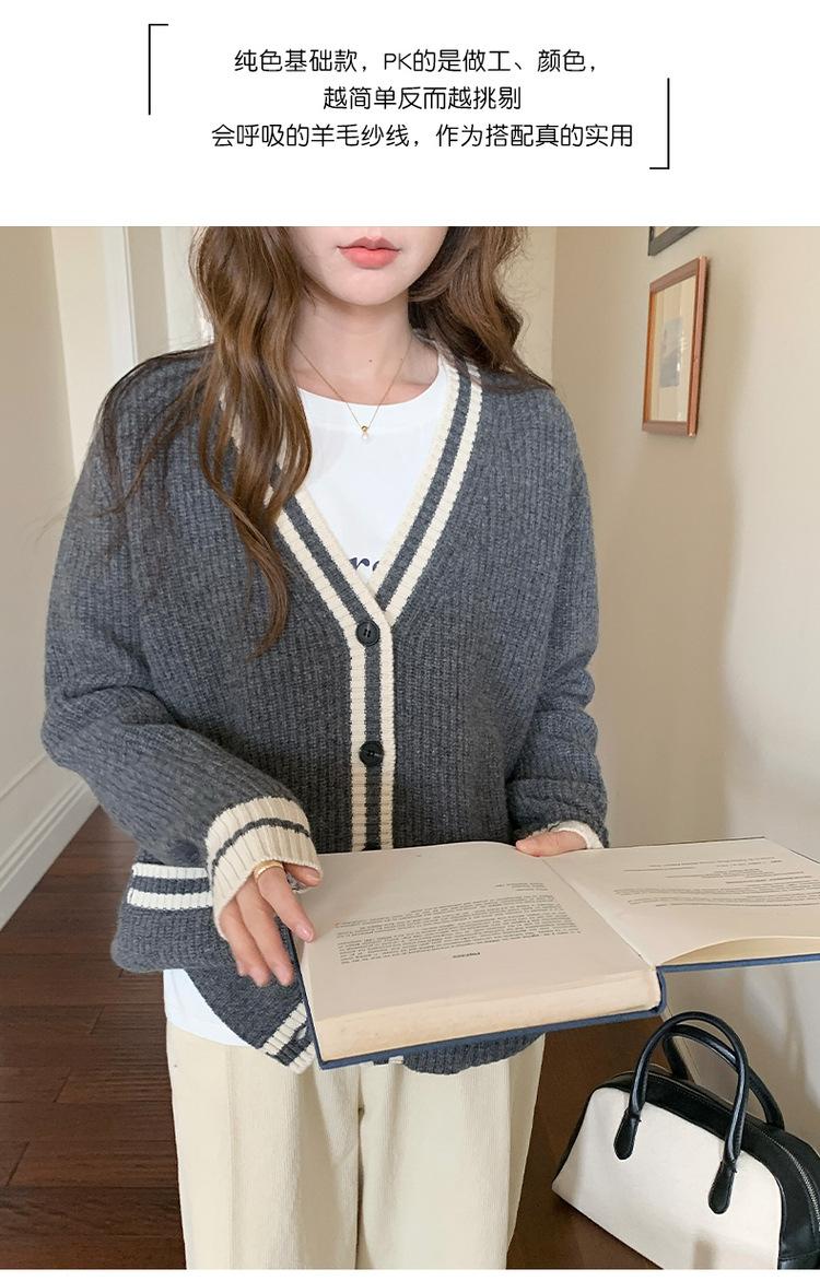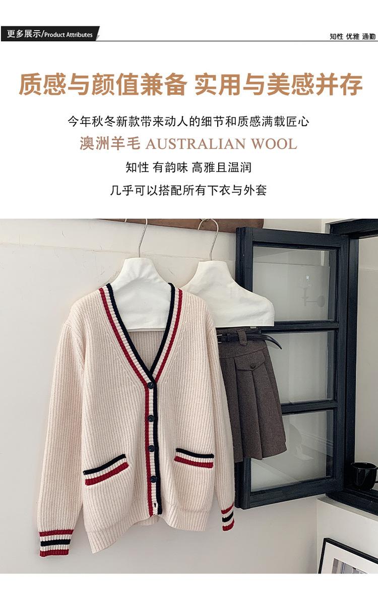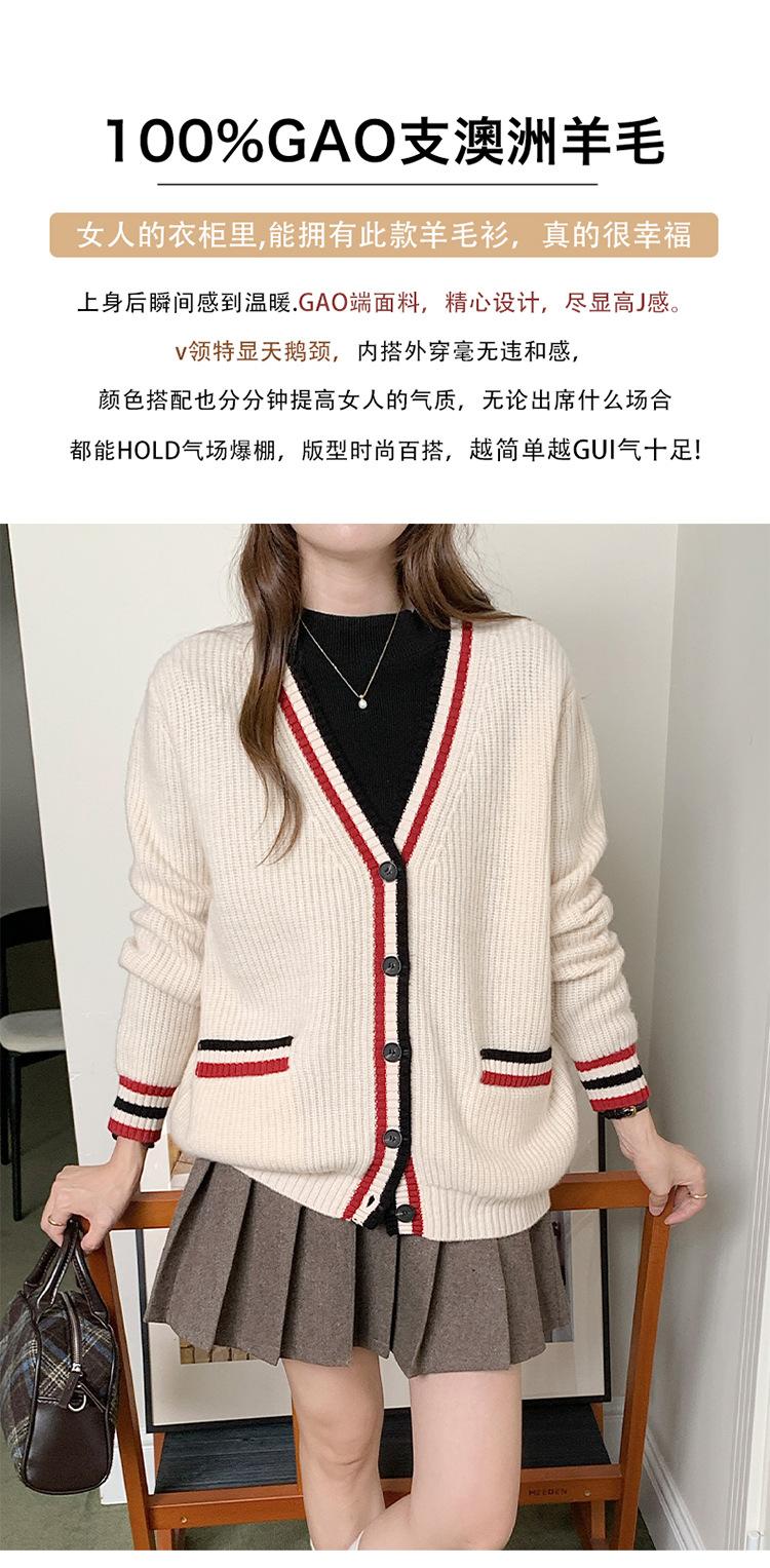 Cárdigan de Punto de Lana 100% Pura para Mujer con Cuello en V y Manga Larga Abrigo Otoño e Invierno Nueva Llegada Reductor de Edad Estilo Universitario Tendencia