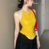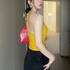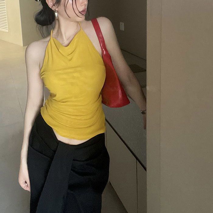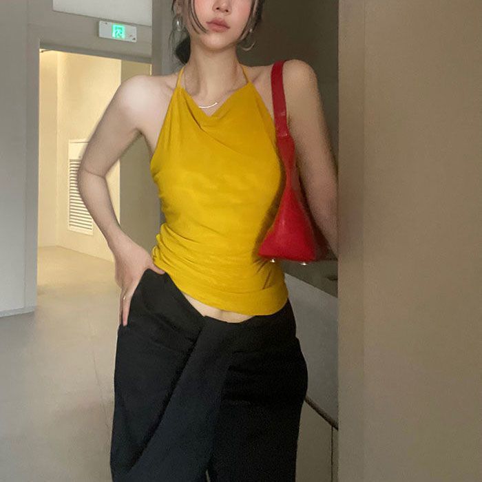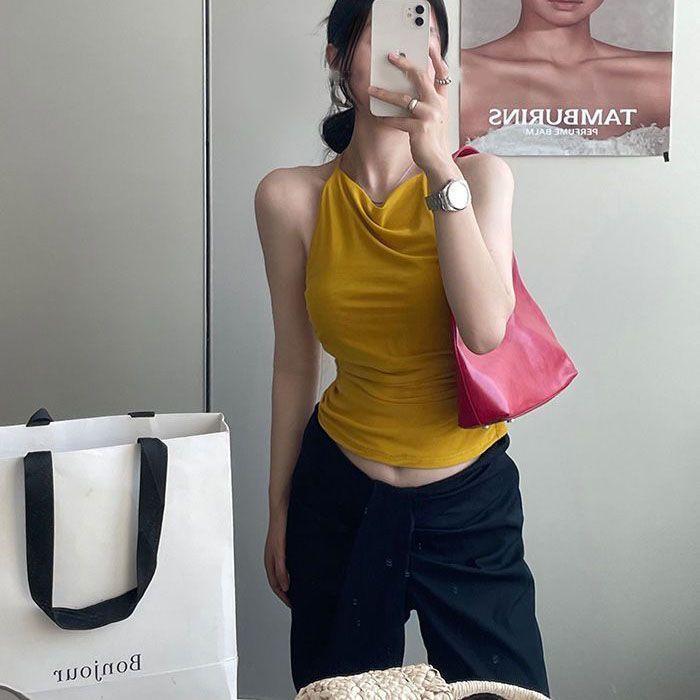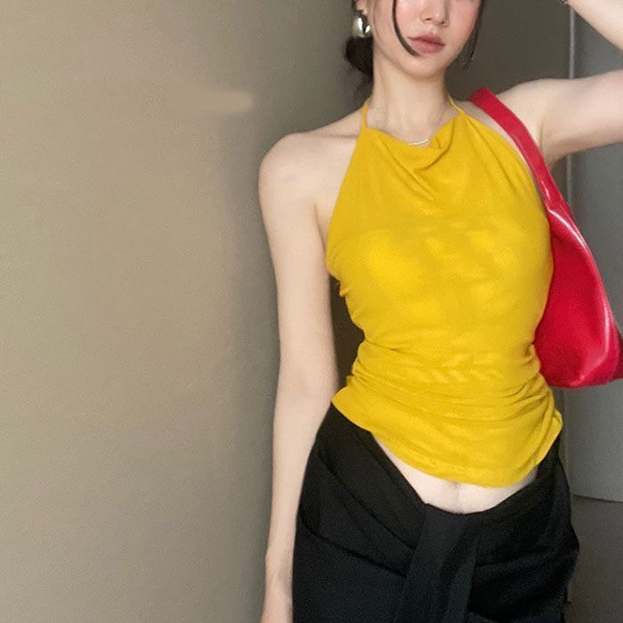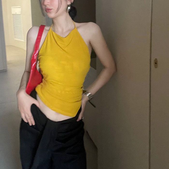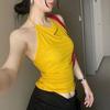 Top Tank Halter Sexy sin Espalda Amarillo Jengibre para Mujer Verano Adelgazante Ropa Interior Chica Caliente Sin Mangas Ropa Exterior Top Corto