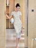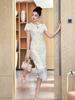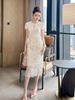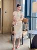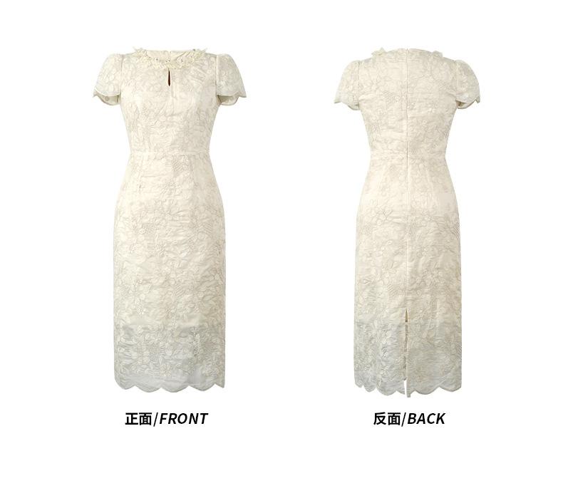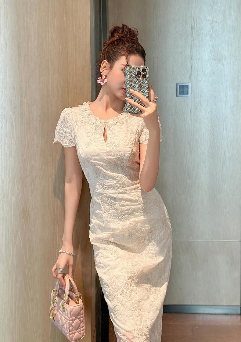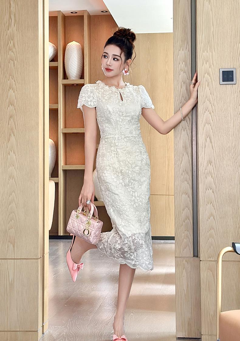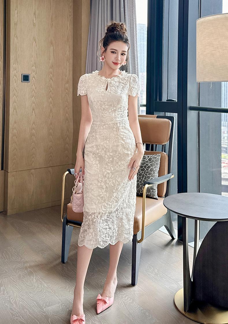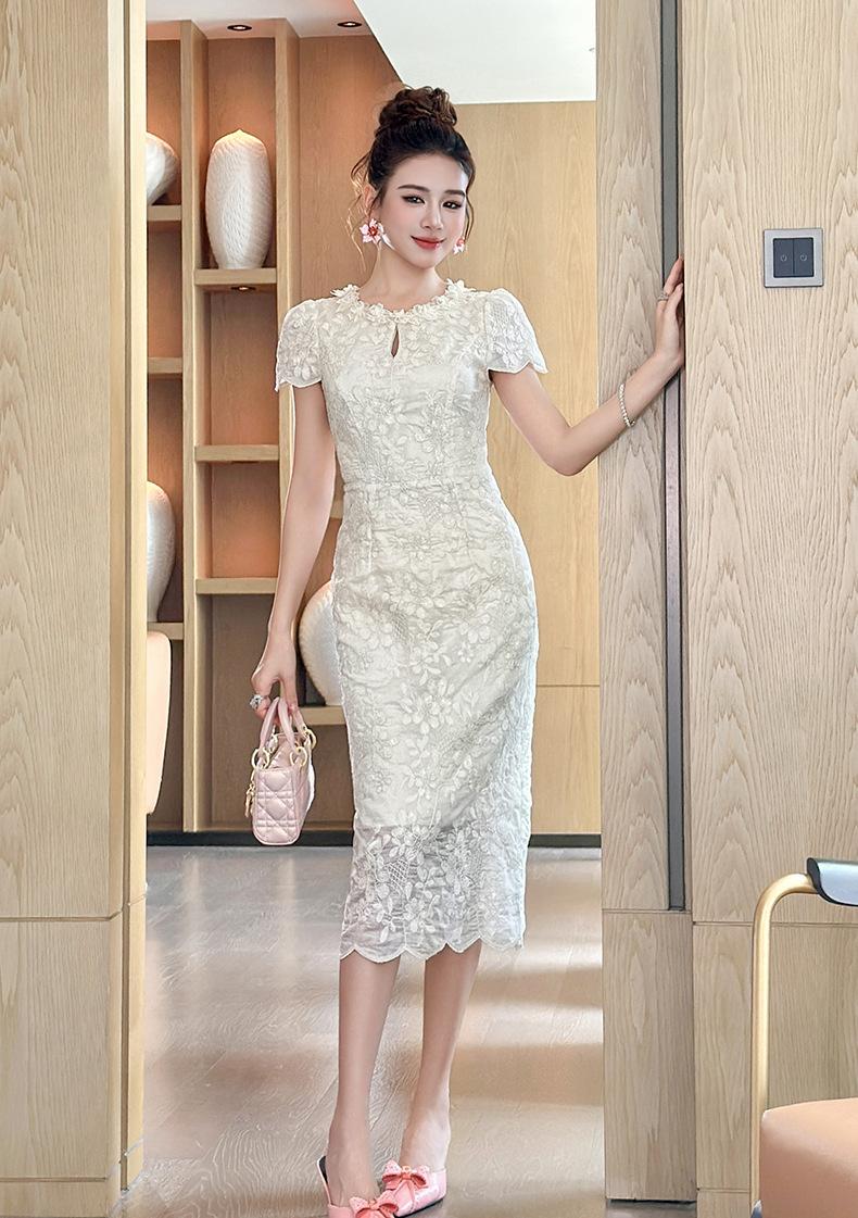Vestido Sexy de Encaje Blanco para Mujer Estilo Niña Rica Manga Corta Cintura Adelgazante Vestido Bodycon Cumpleaños Vestido de Noche 21833