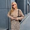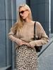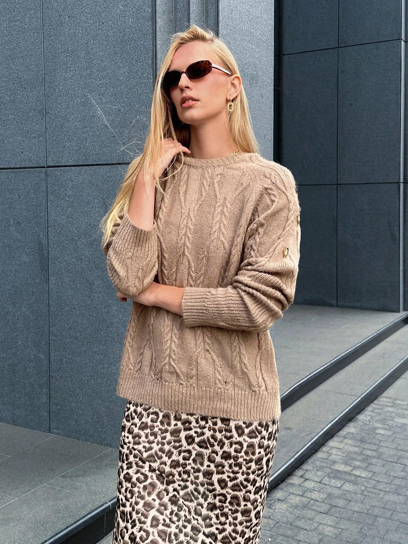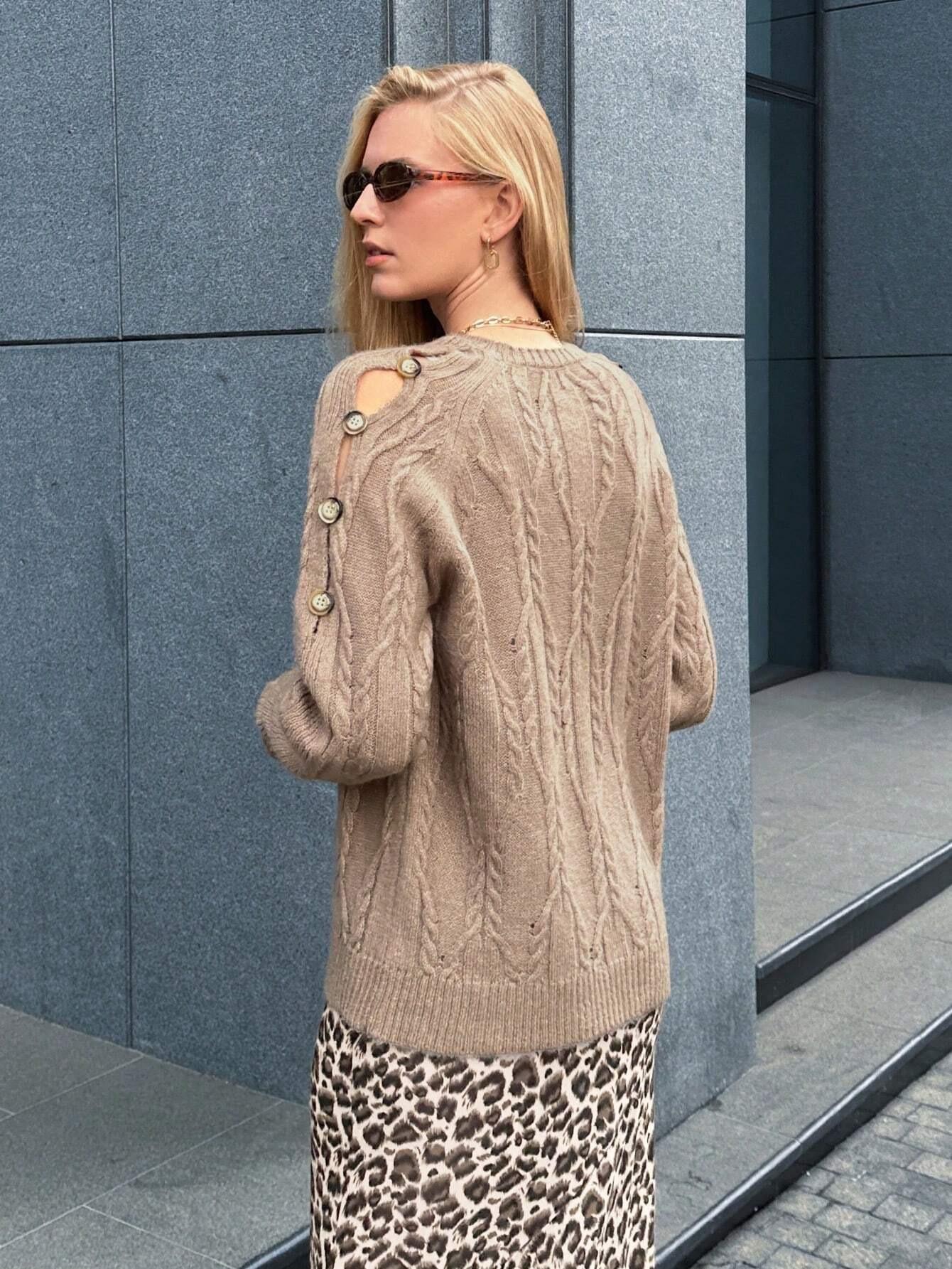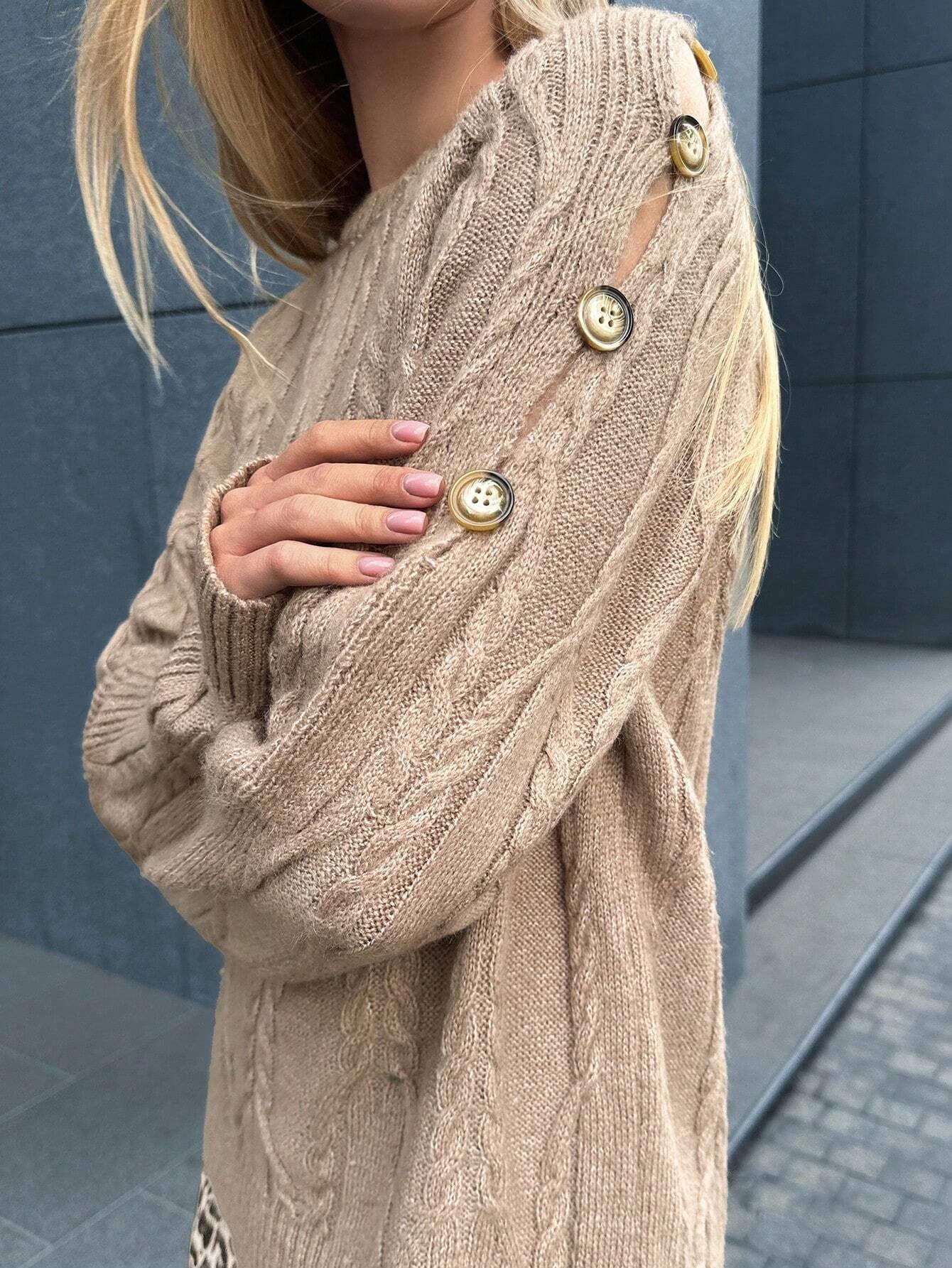 Suéter Europeo y Americano Transfronterizo Color Camello Tejido de Punto con Botones en los Hombros, Top Jersey Calado, Suéter de Moda Retro Otoño e Invierno