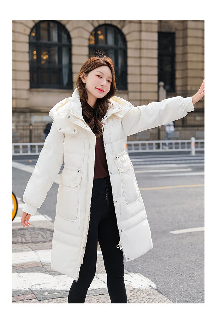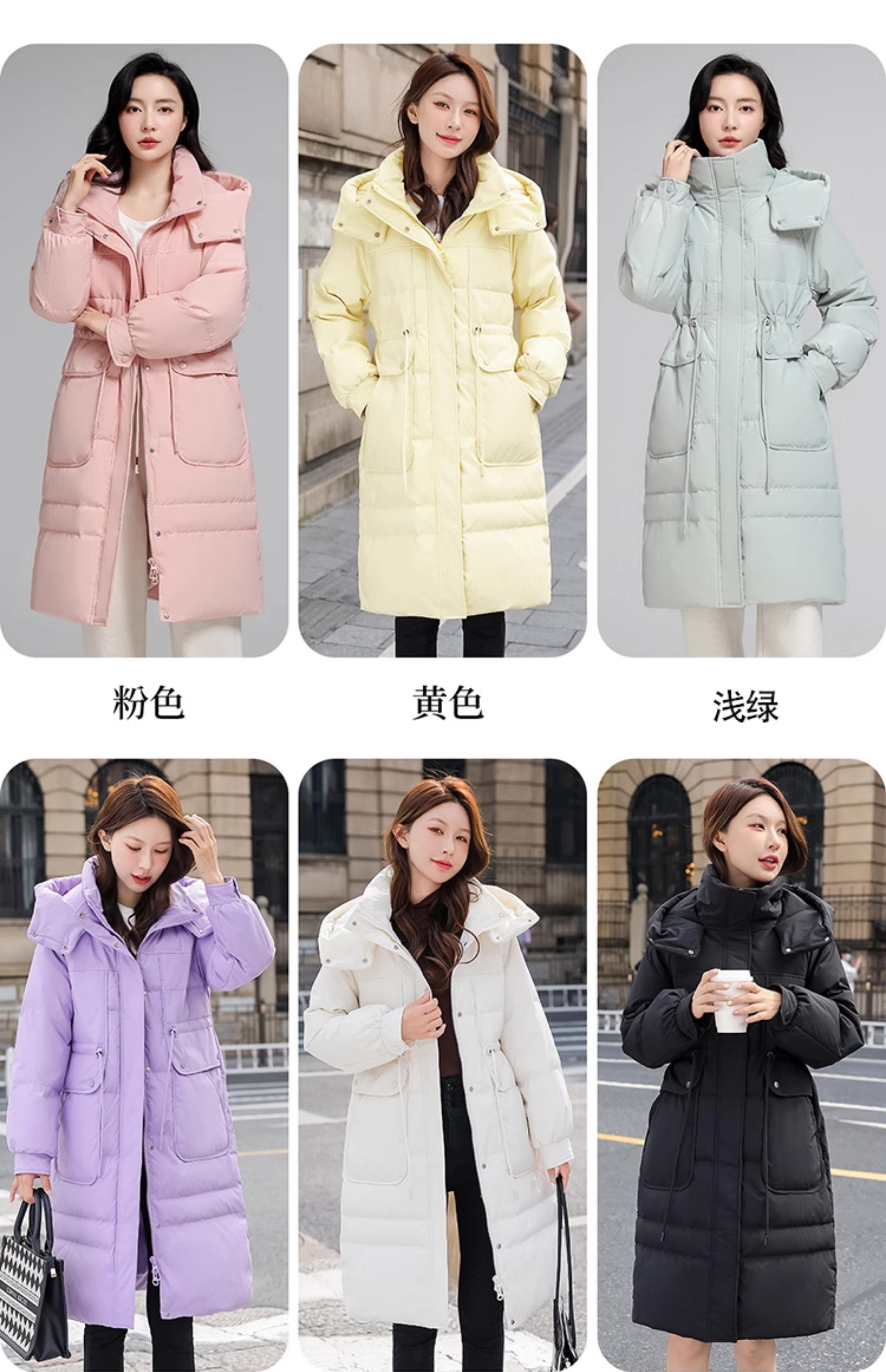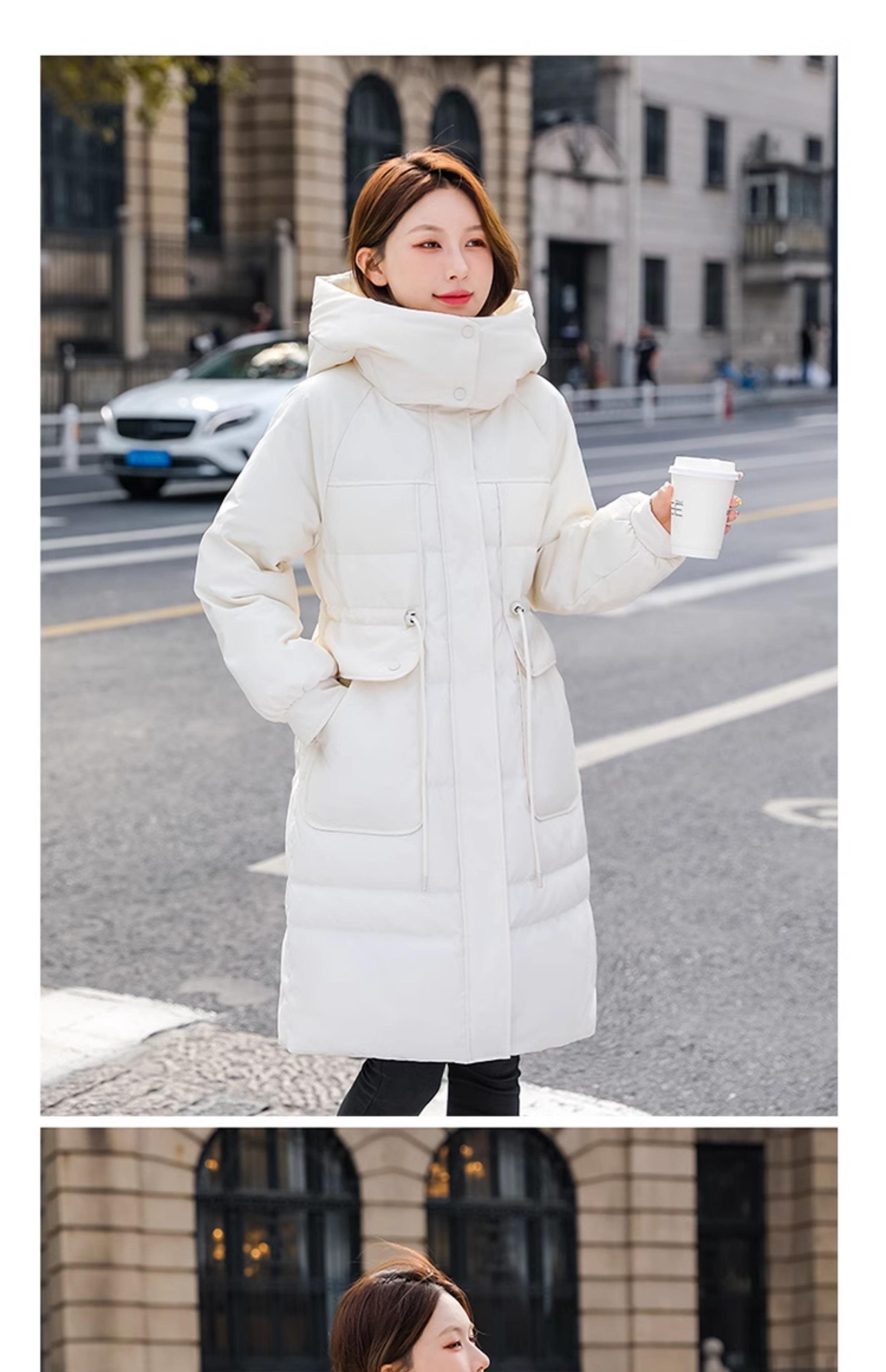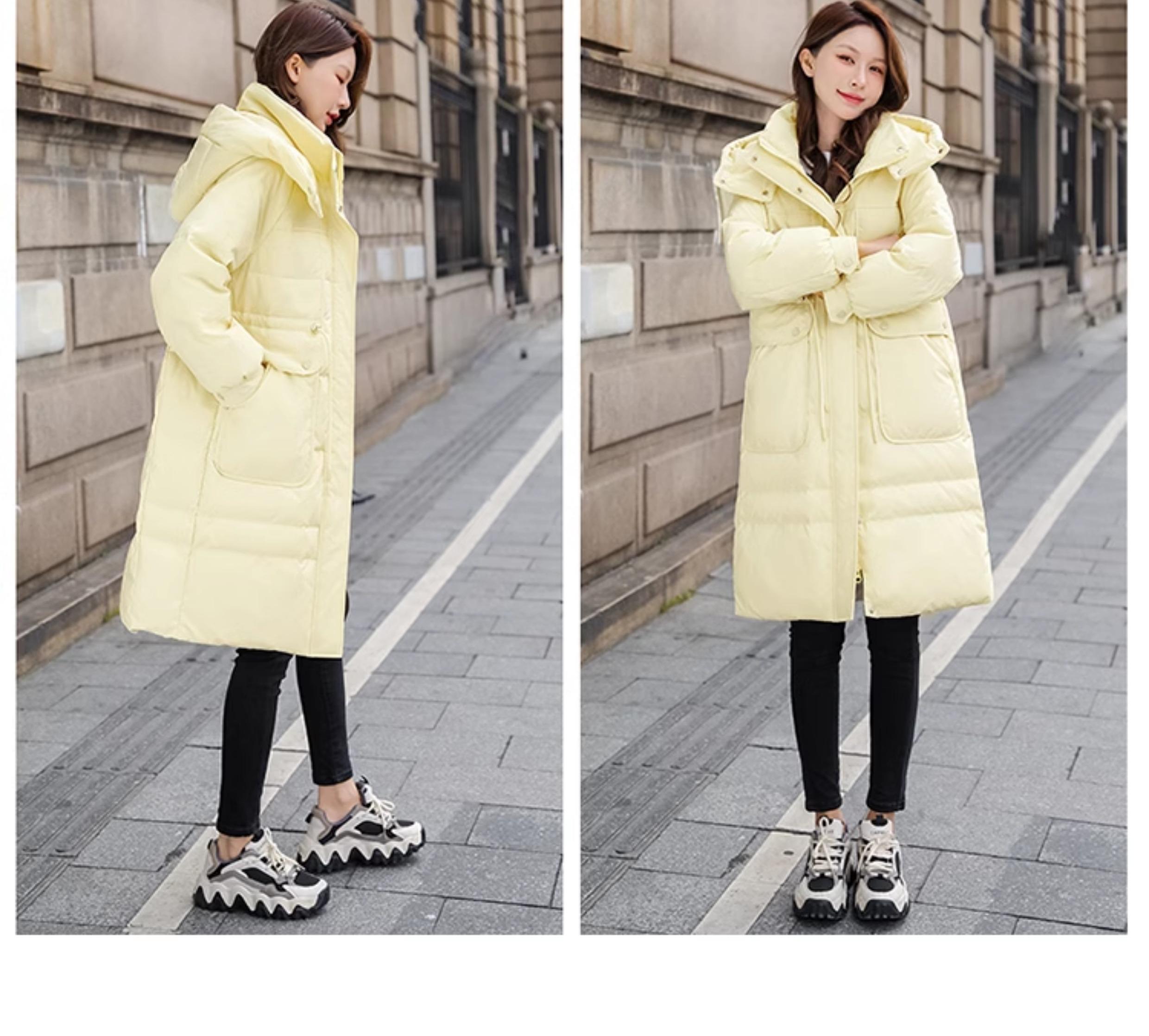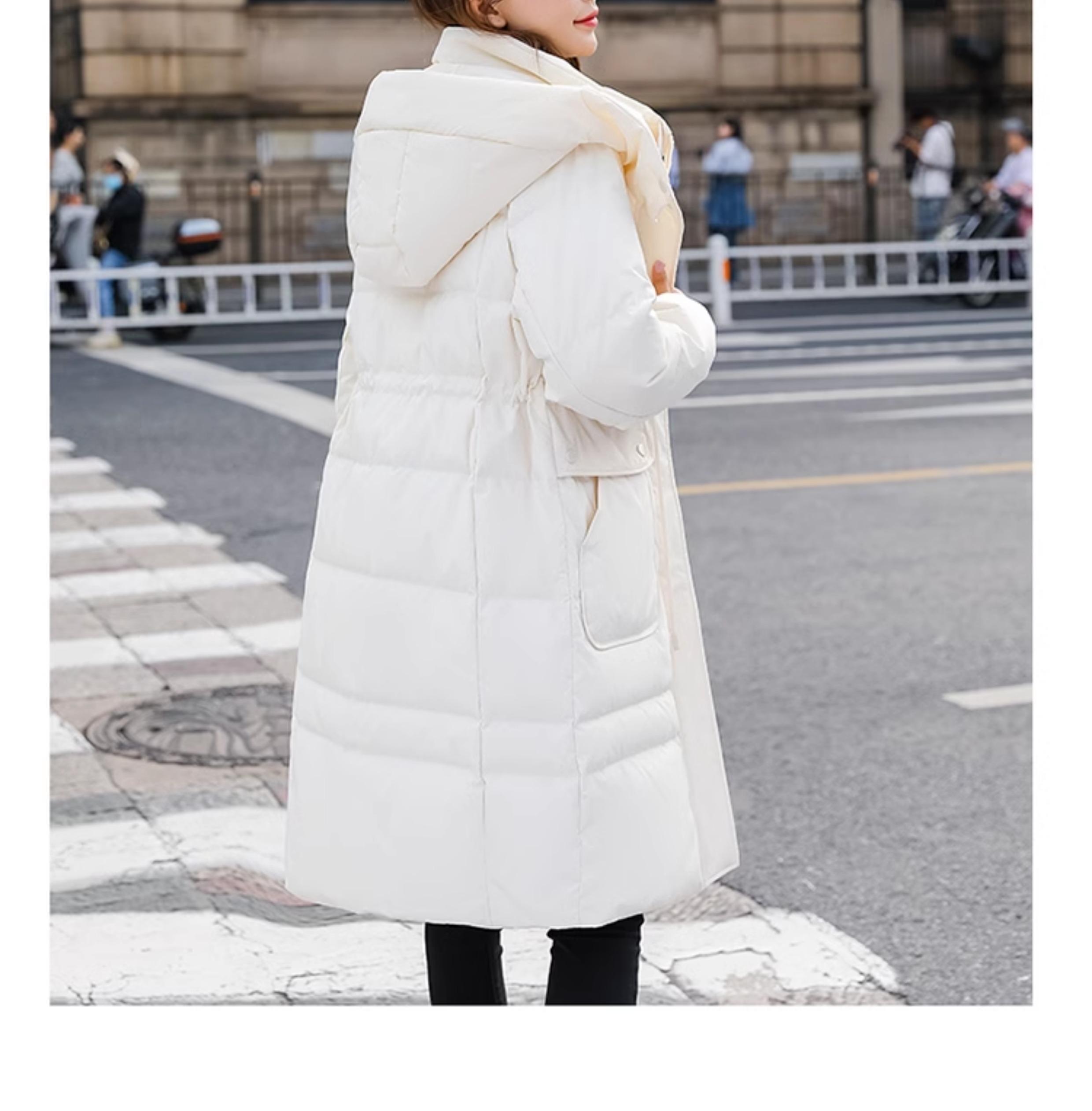 Chamarra de Plumas Genuina Descontinuada de Largo Medio para Mujer 2025 Nuevo Invierno 90 Plumón de Pato Blanco Ajustada a la Cintura Hasta la Rodilla Talla Grande Gruesa