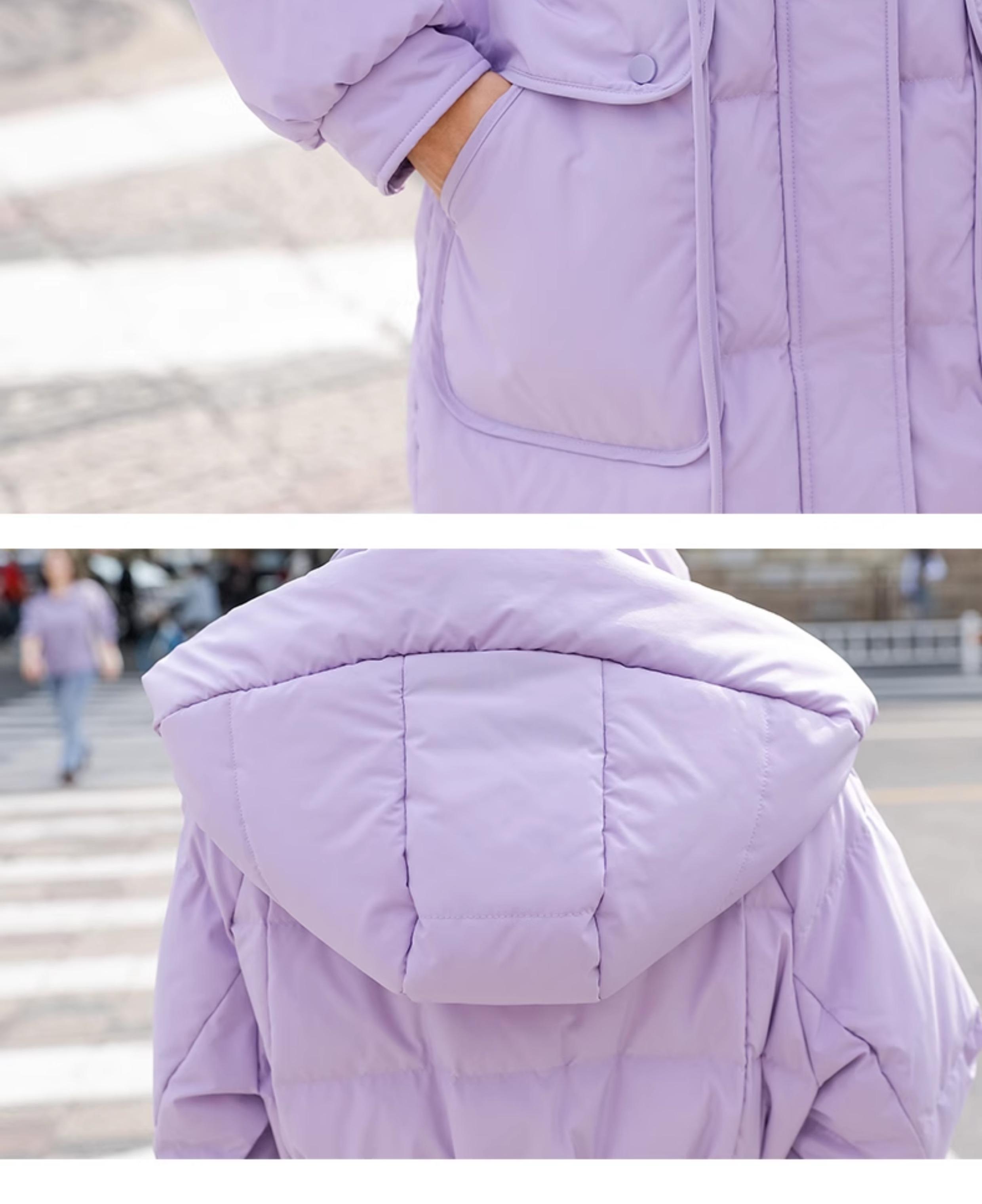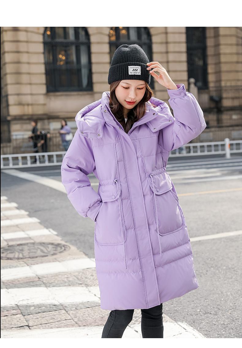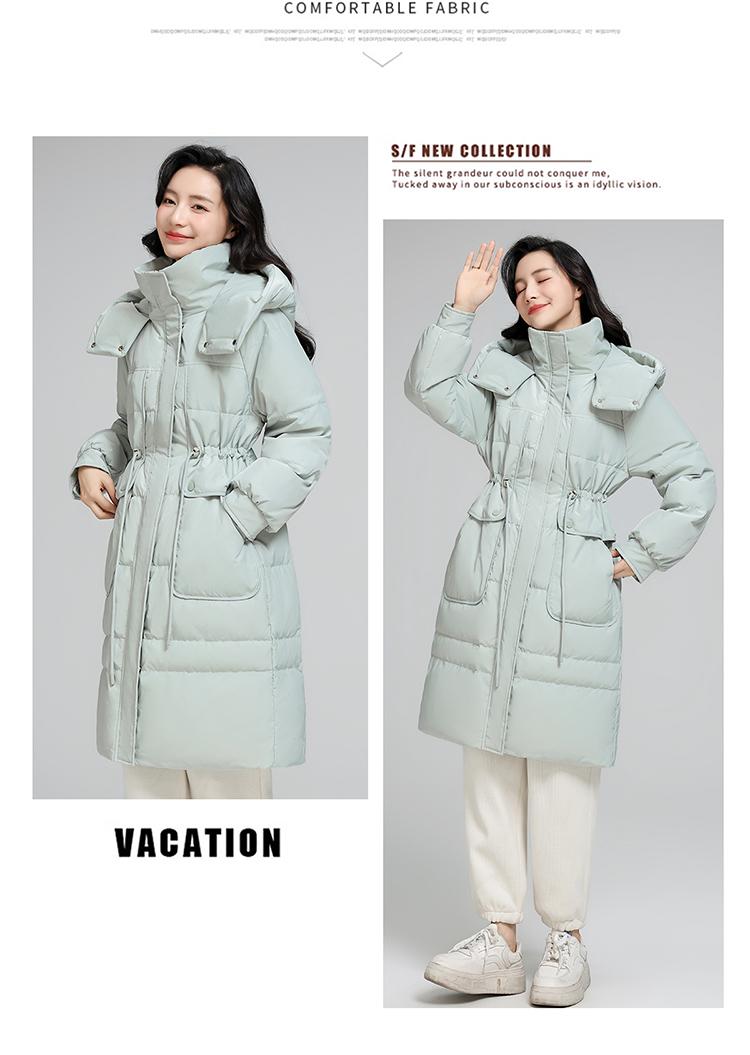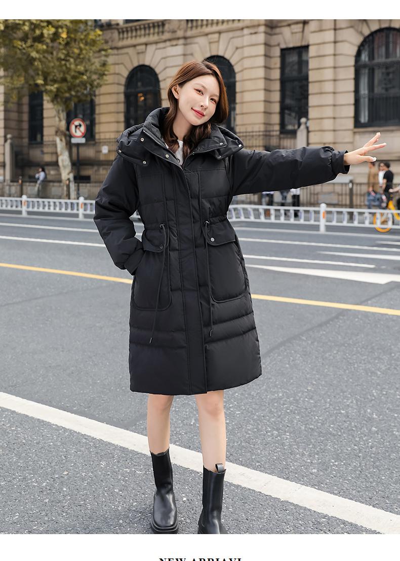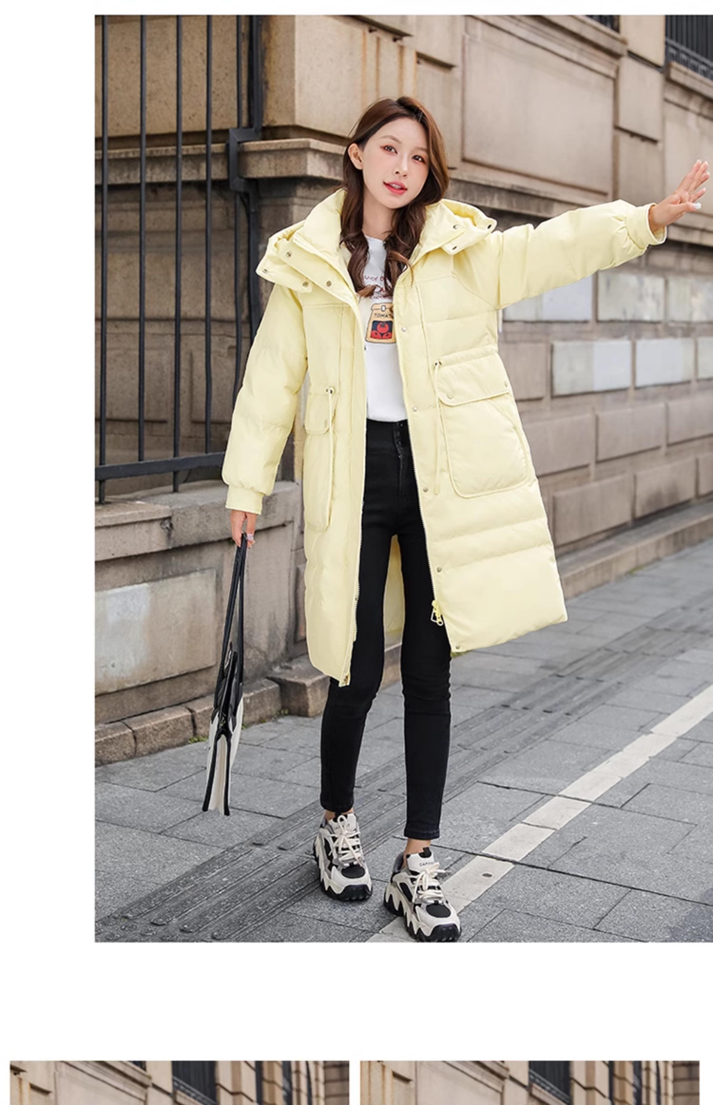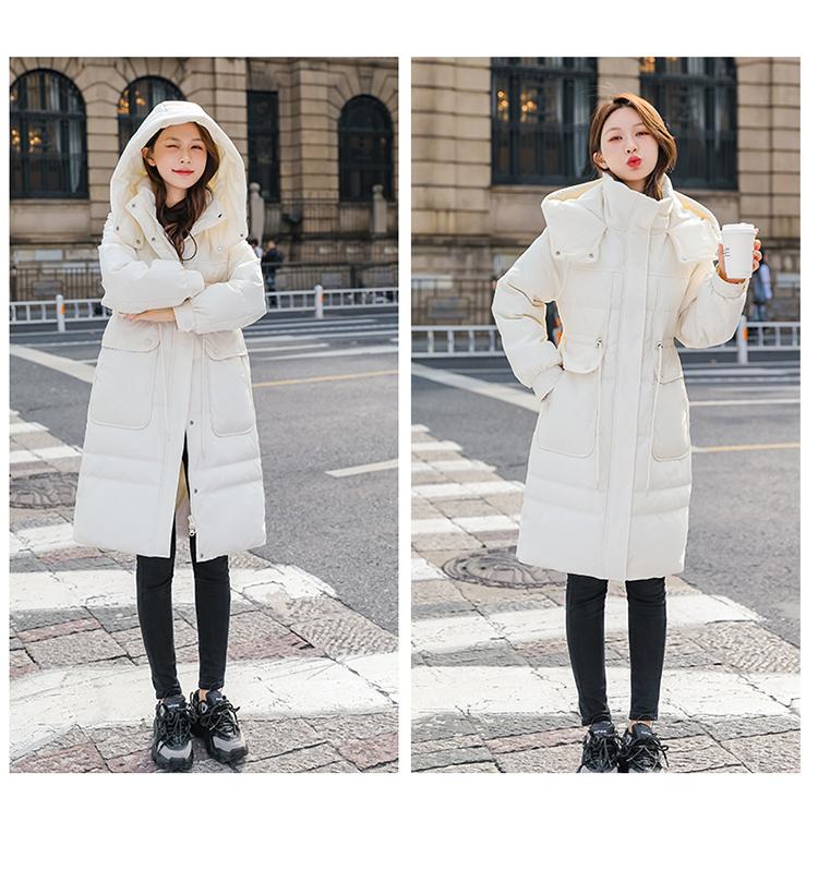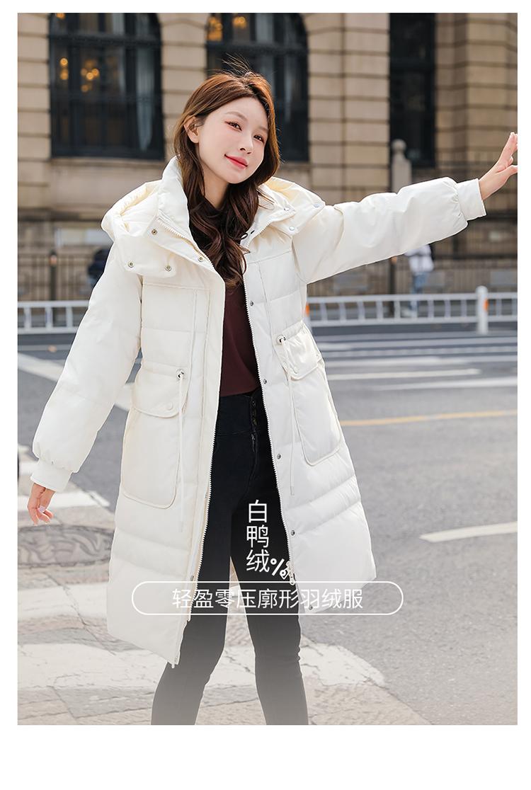Chamarra de Plumas Genuina Descontinuada de Largo Medio para Mujer 2025 Nuevo Invierno 90 Plumón de Pato Blanco Ajustada a la Cintura Hasta la Rodilla Talla Grande Gruesa