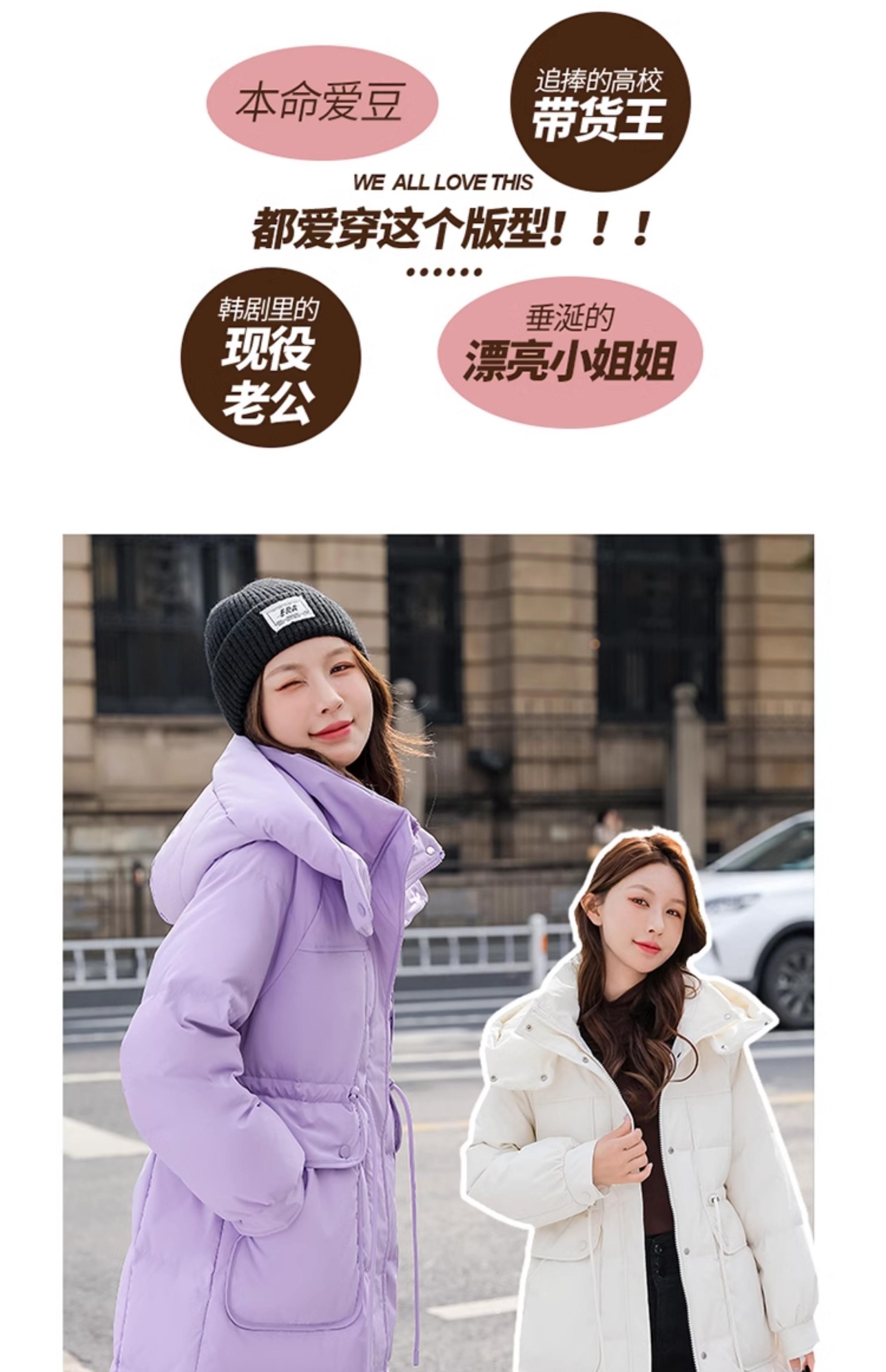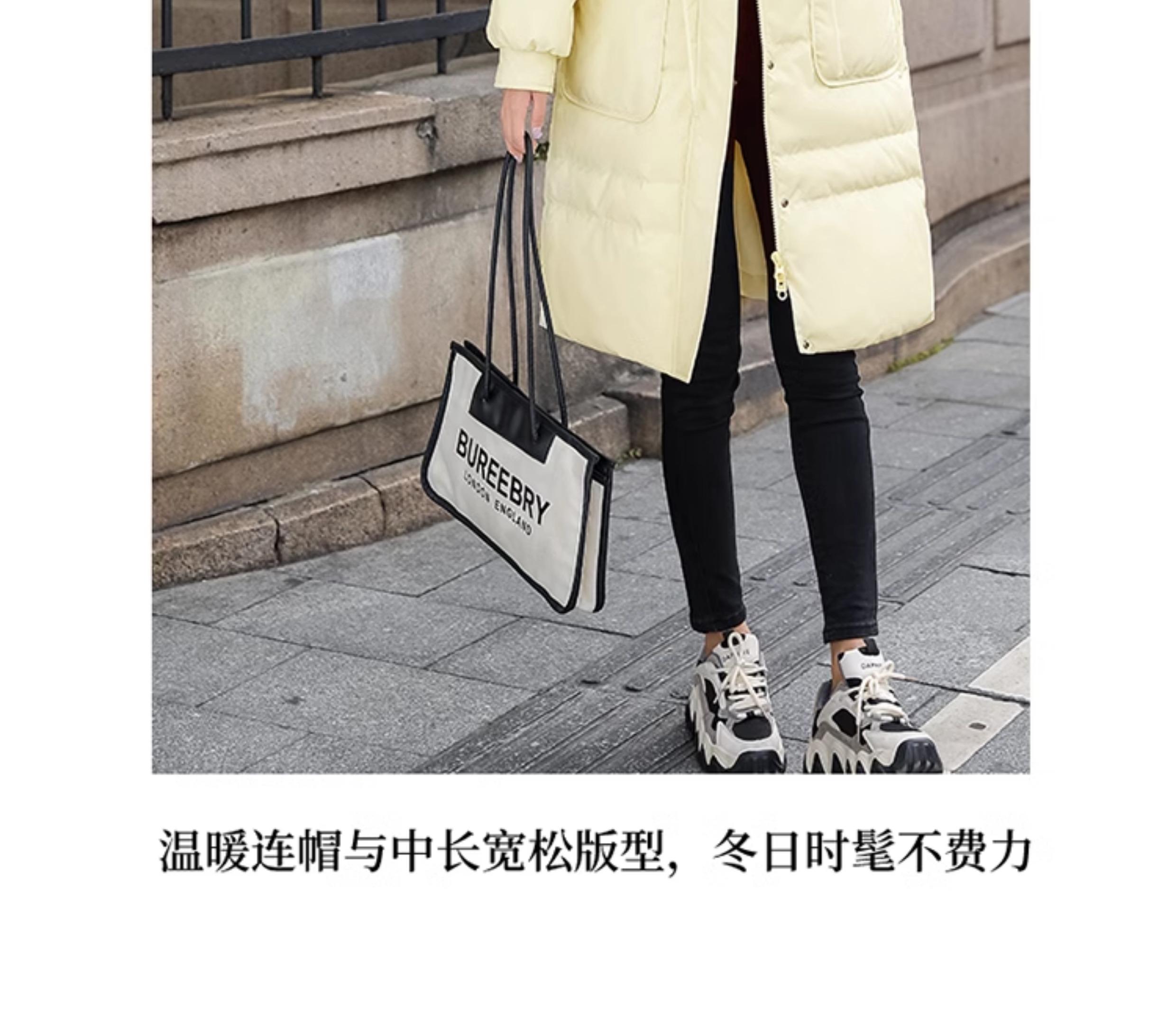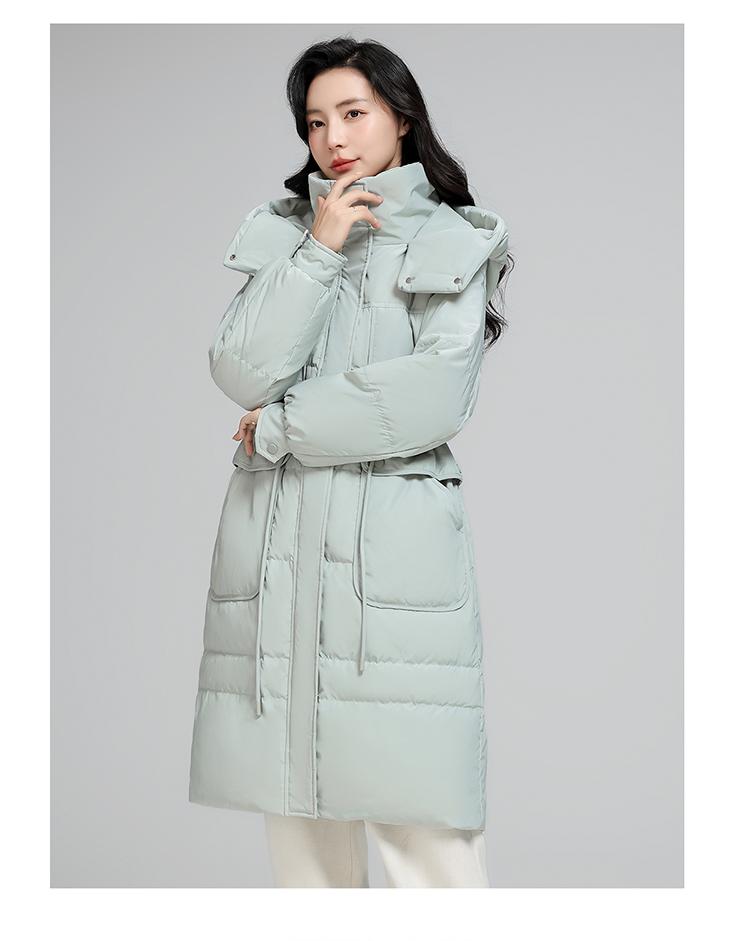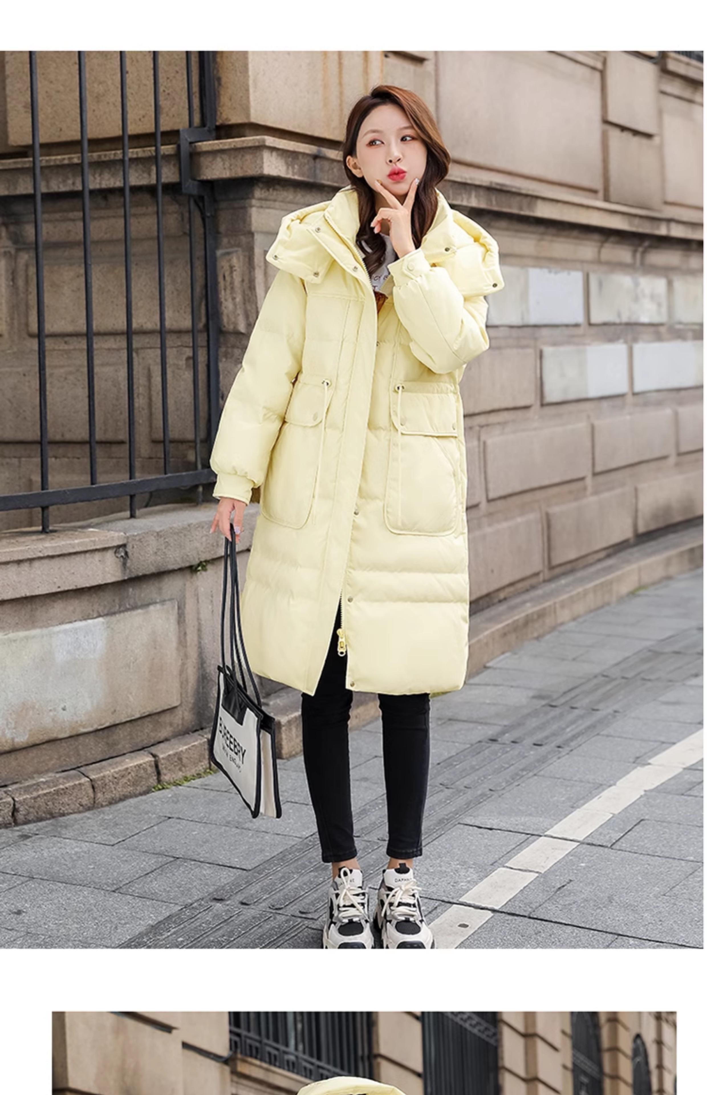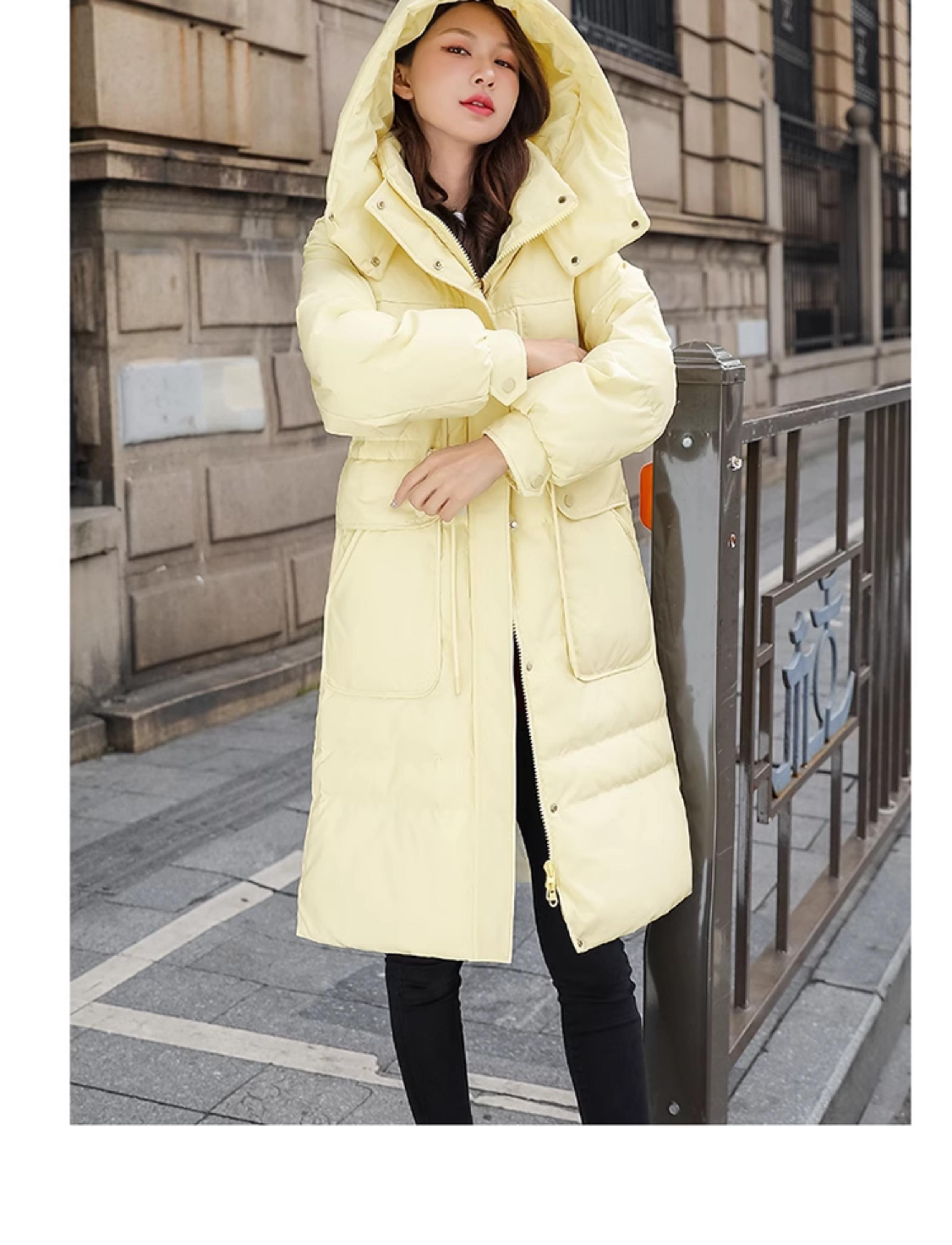 Chamarra de Plumas Genuina Descontinuada de Largo Medio para Mujer 2025 Nuevo Invierno 90 Plumón de Pato Blanco Ajustada a la Cintura Hasta la Rodilla Talla Grande Gruesa