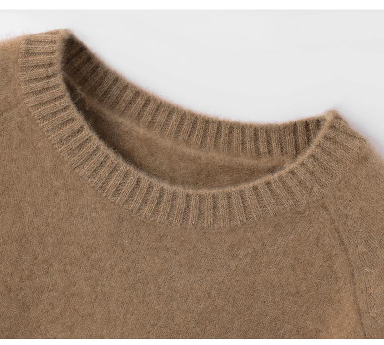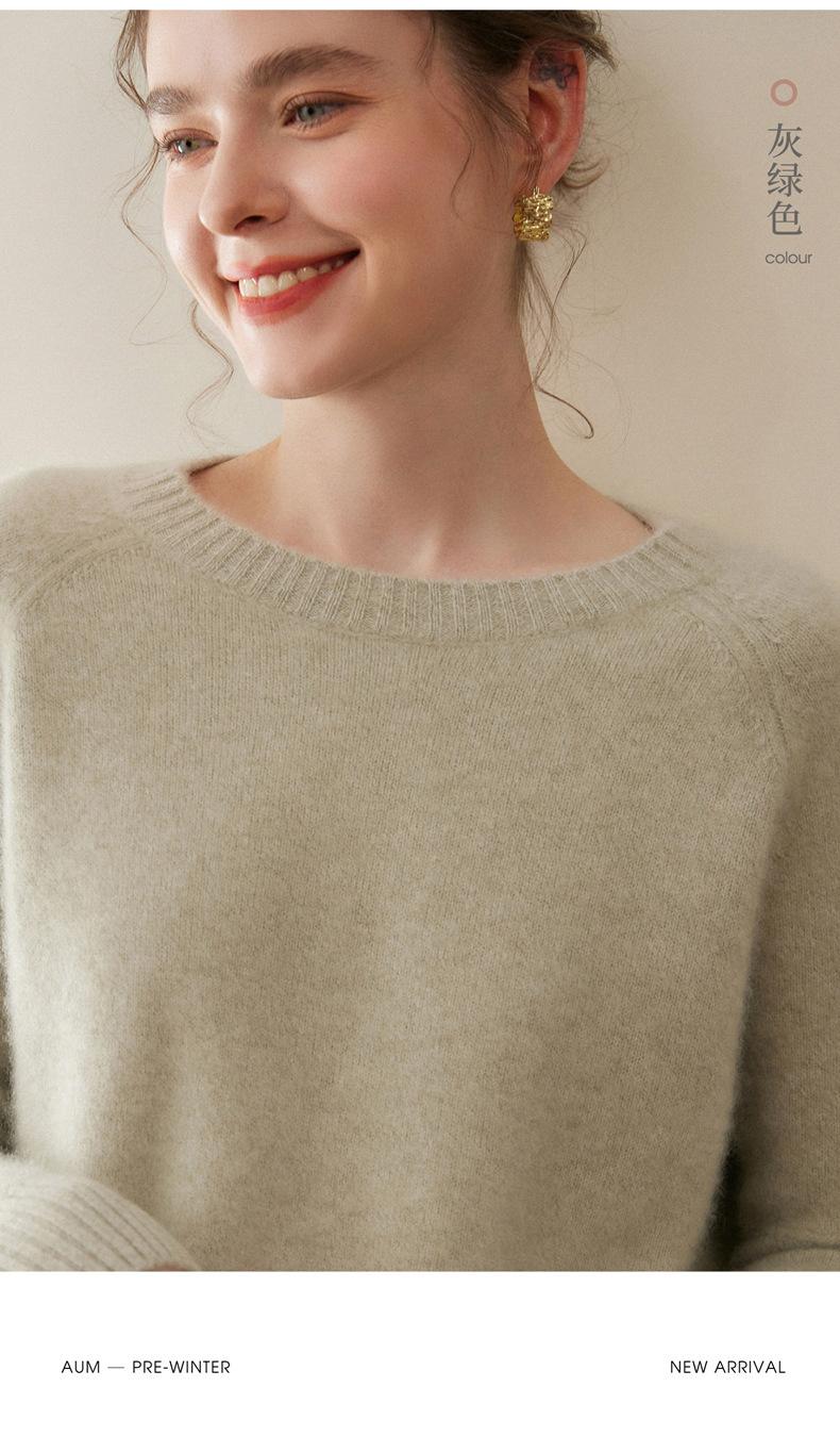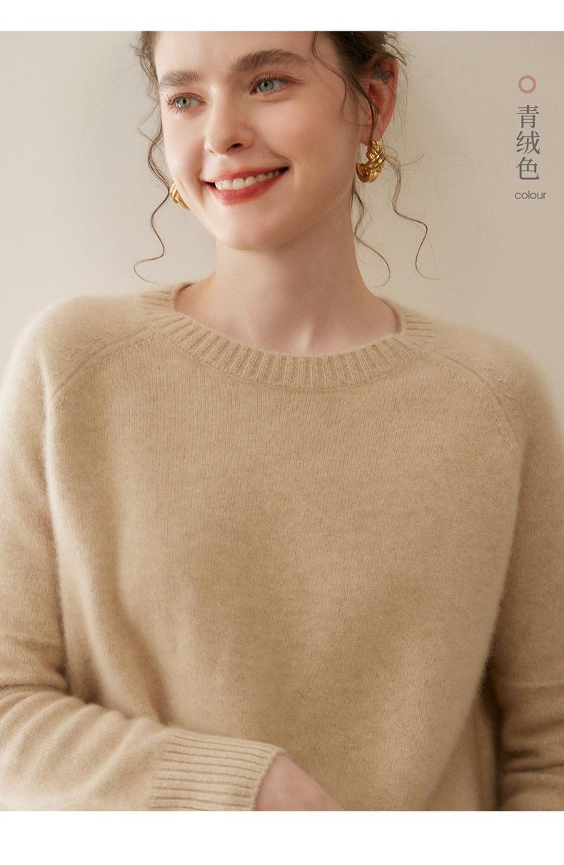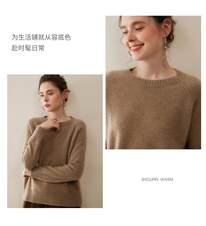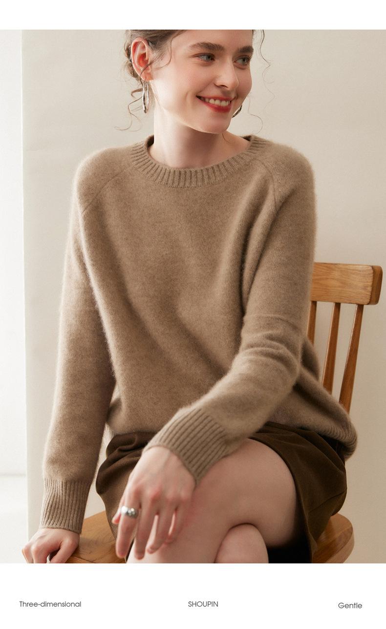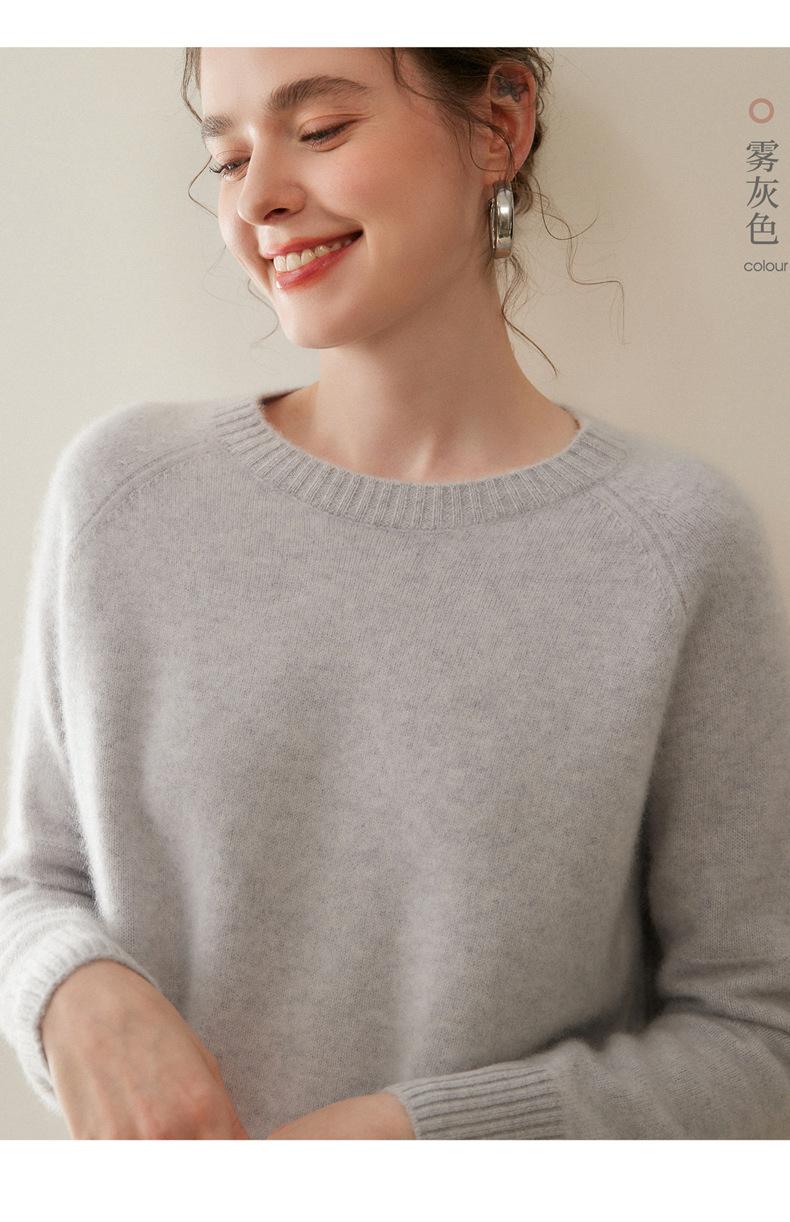 Capa Base de Punto de Cachemira de Cuello Redondo para Mujer, Suéter de Manga Larga Holgado Cómodo Suave Versátil Capa Interior Cálido Manga Raglán