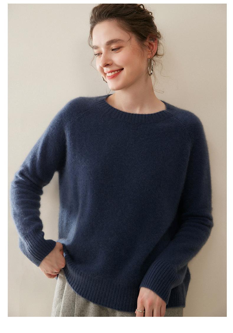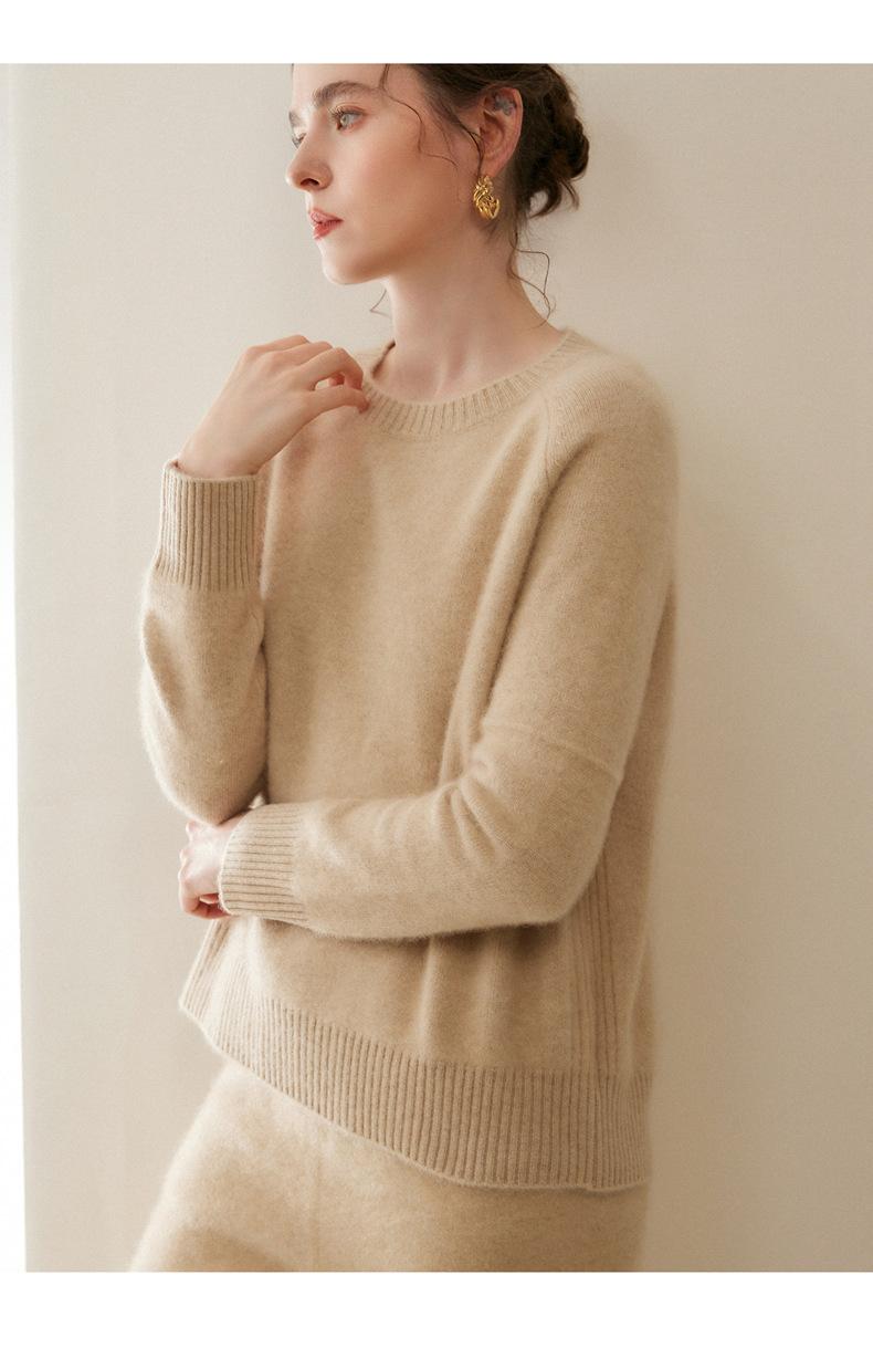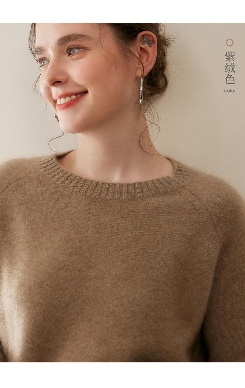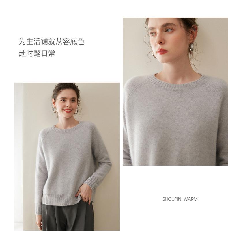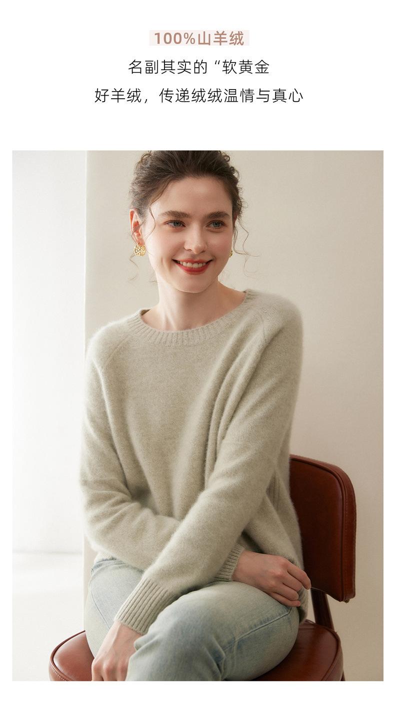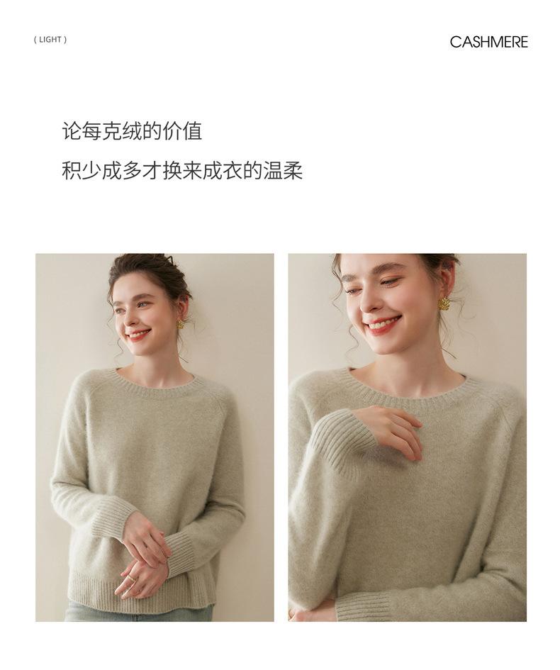 Capa Base de Punto de Cachemira de Cuello Redondo para Mujer, Suéter de Manga Larga Holgado Cómodo Suave Versátil Capa Interior Cálido Manga Raglán