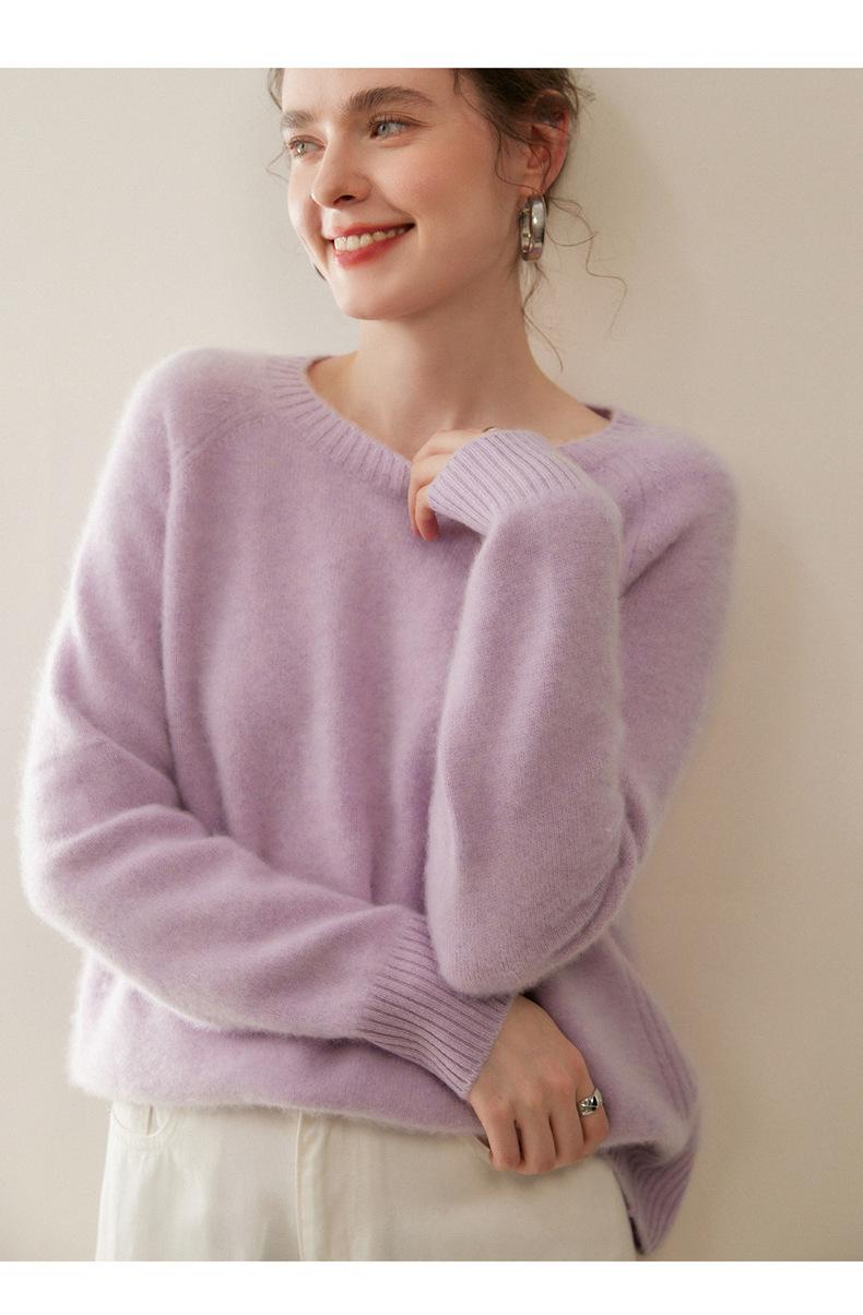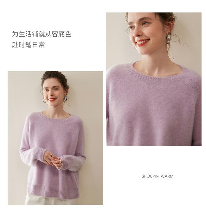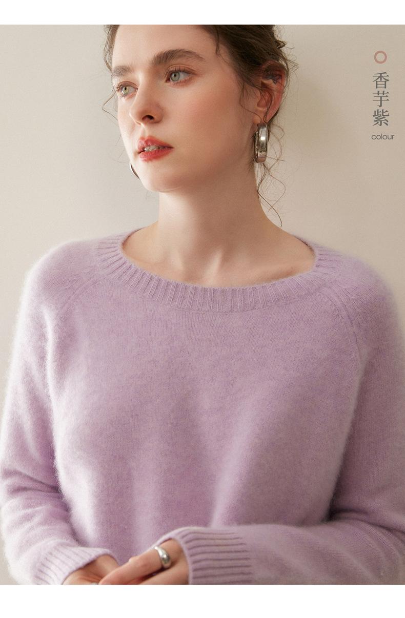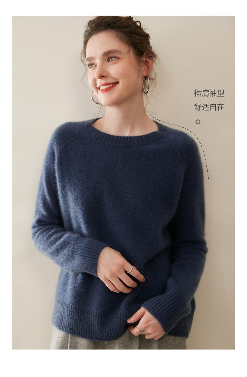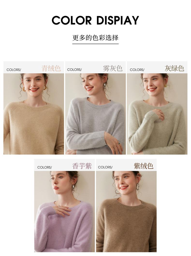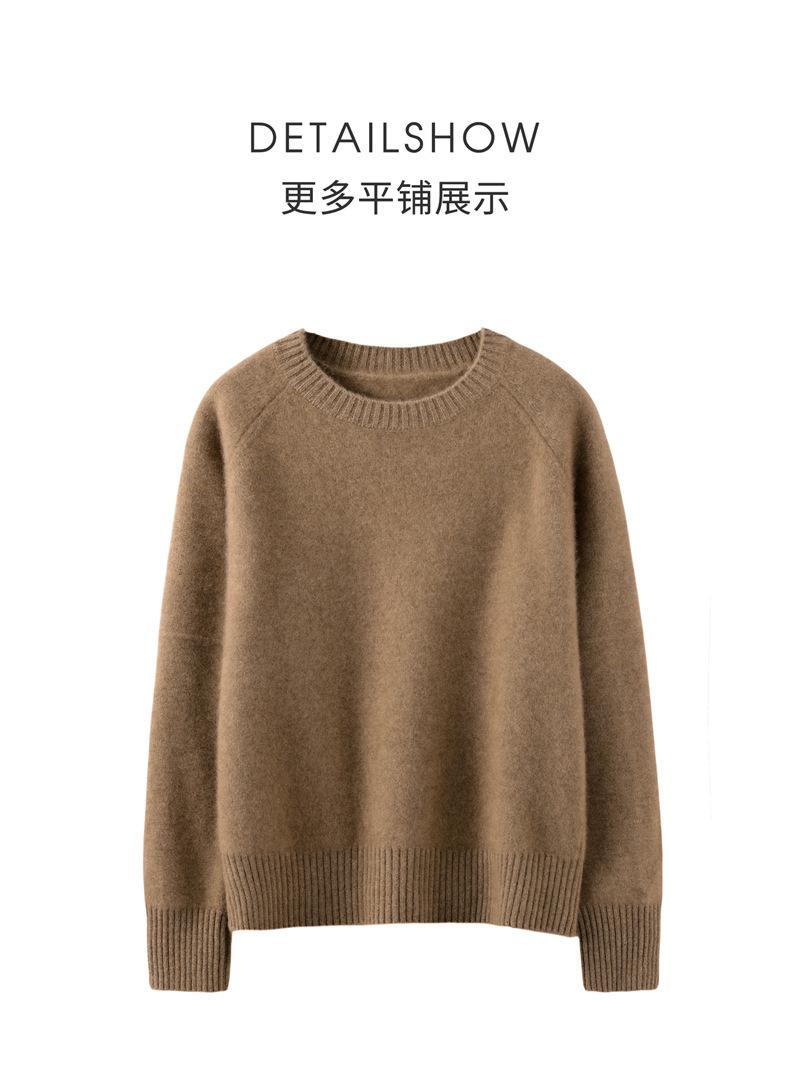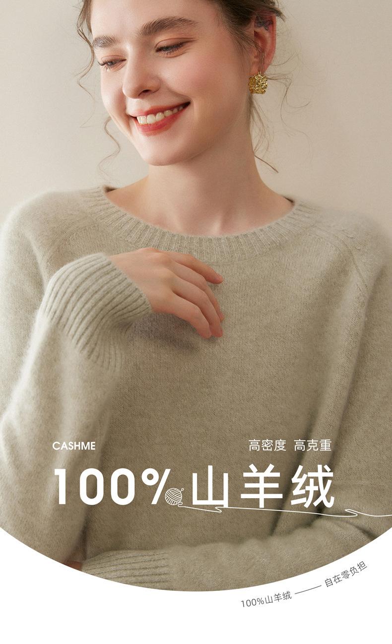 Capa Base de Punto de Cachemira de Cuello Redondo para Mujer, Suéter de Manga Larga Holgado Cómodo Suave Versátil Capa Interior Cálido Manga Raglán