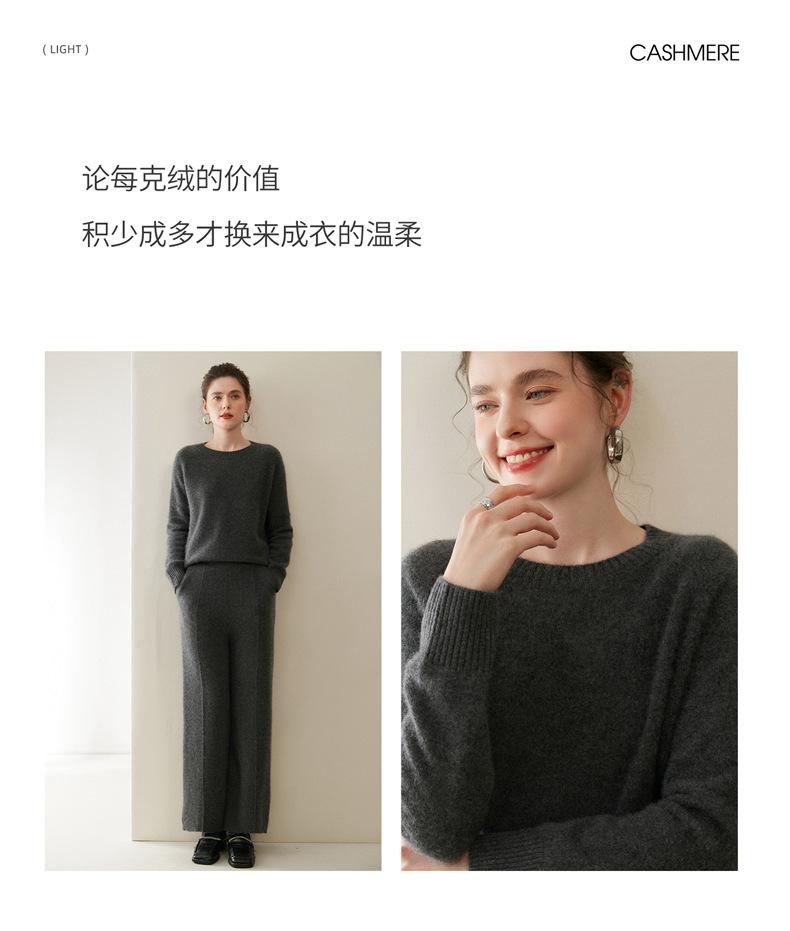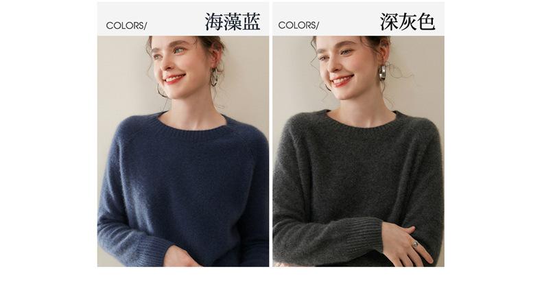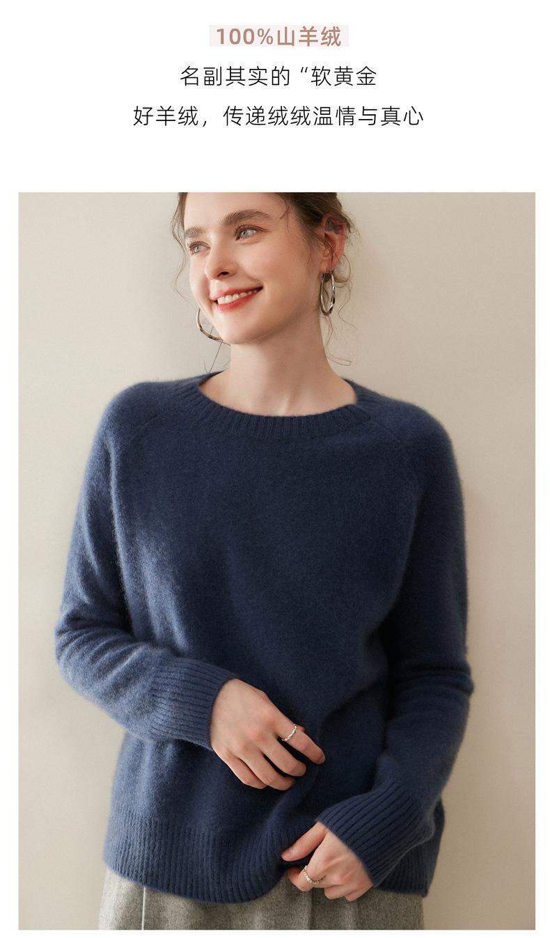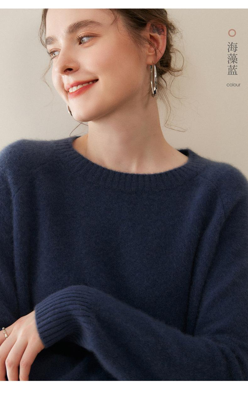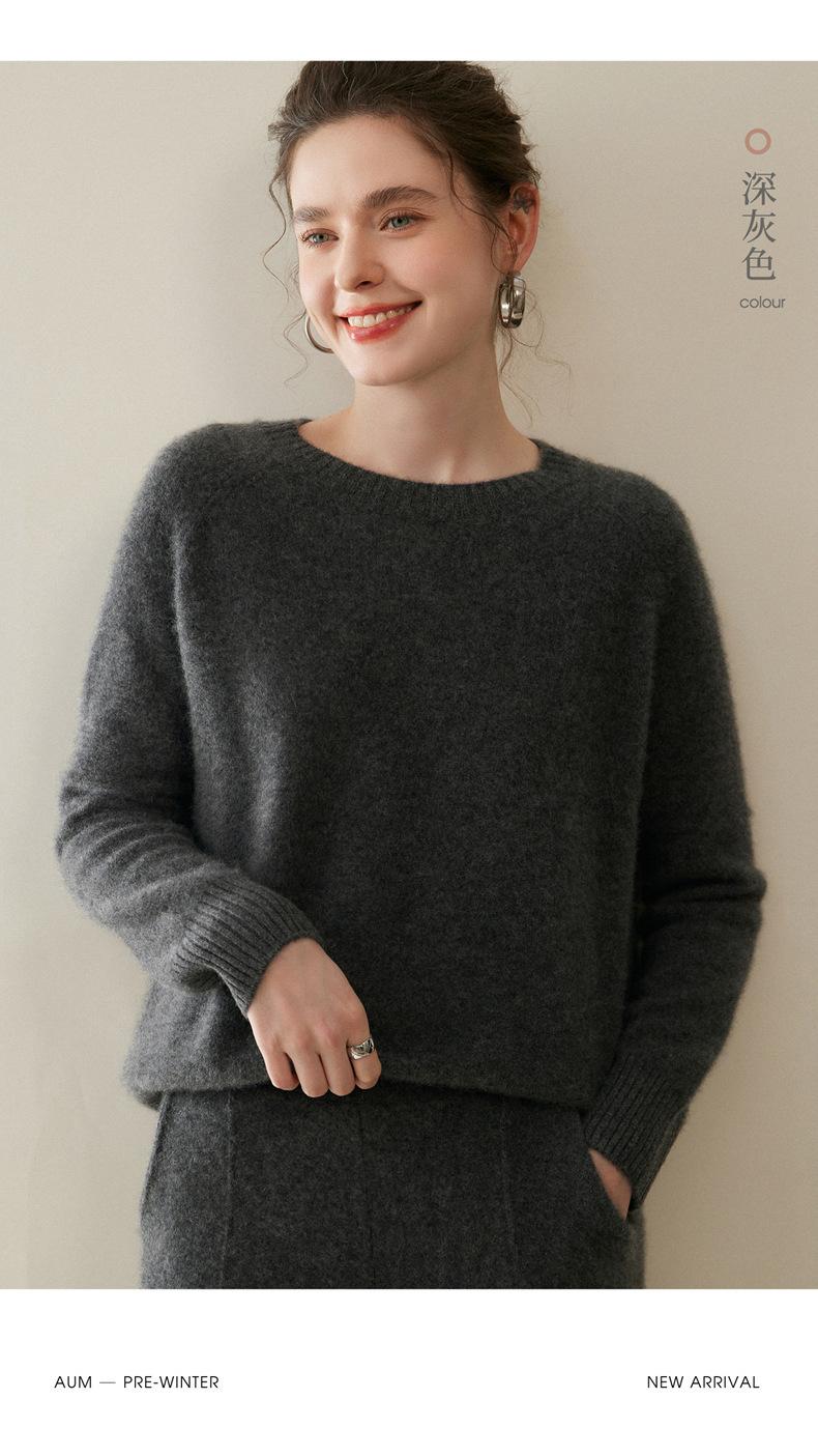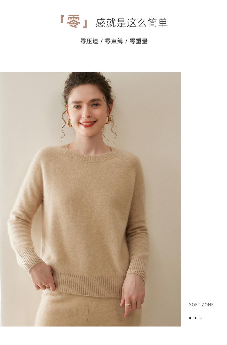 Capa Base de Punto de Cachemira de Cuello Redondo para Mujer, Suéter de Manga Larga Holgado Cómodo Suave Versátil Capa Interior Cálido Manga Raglán