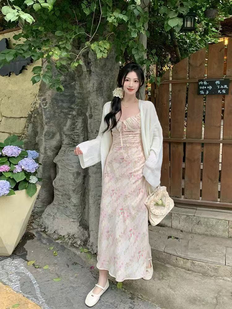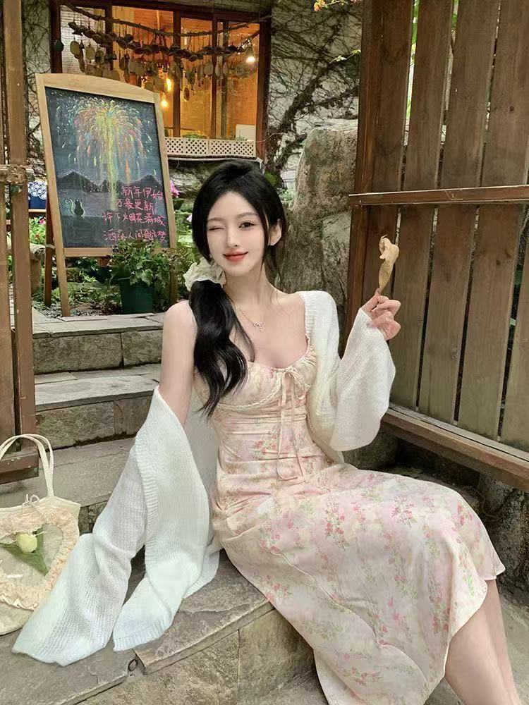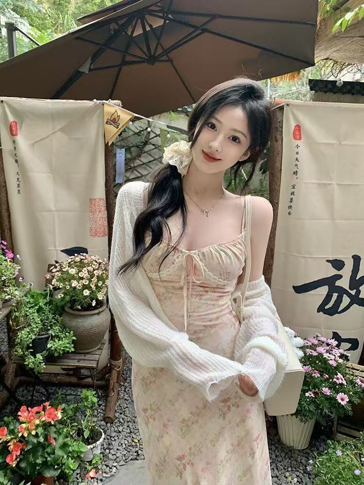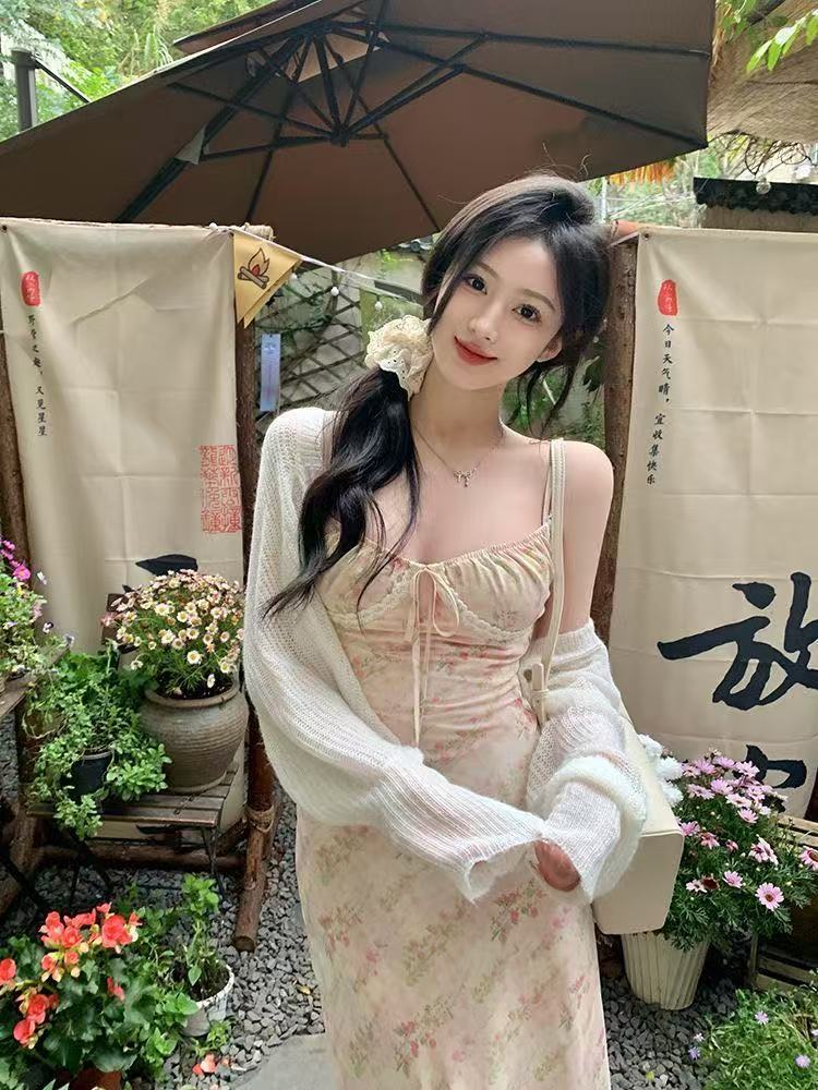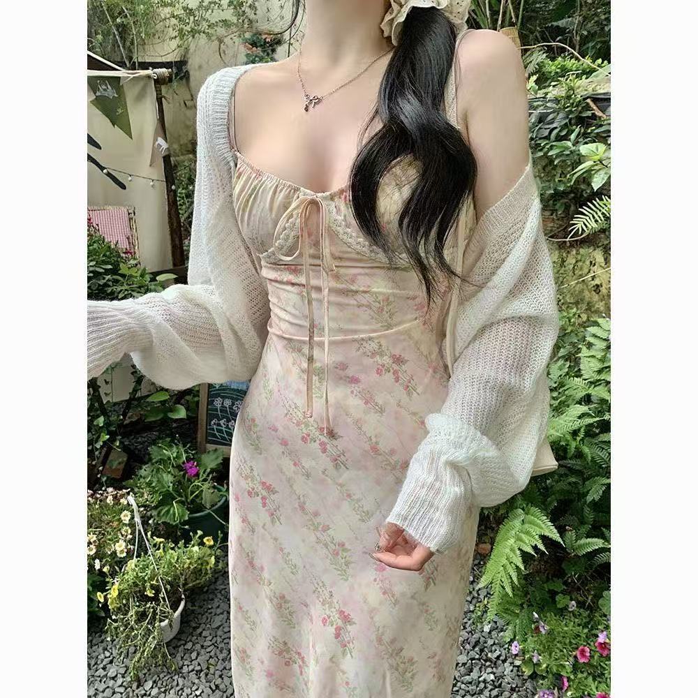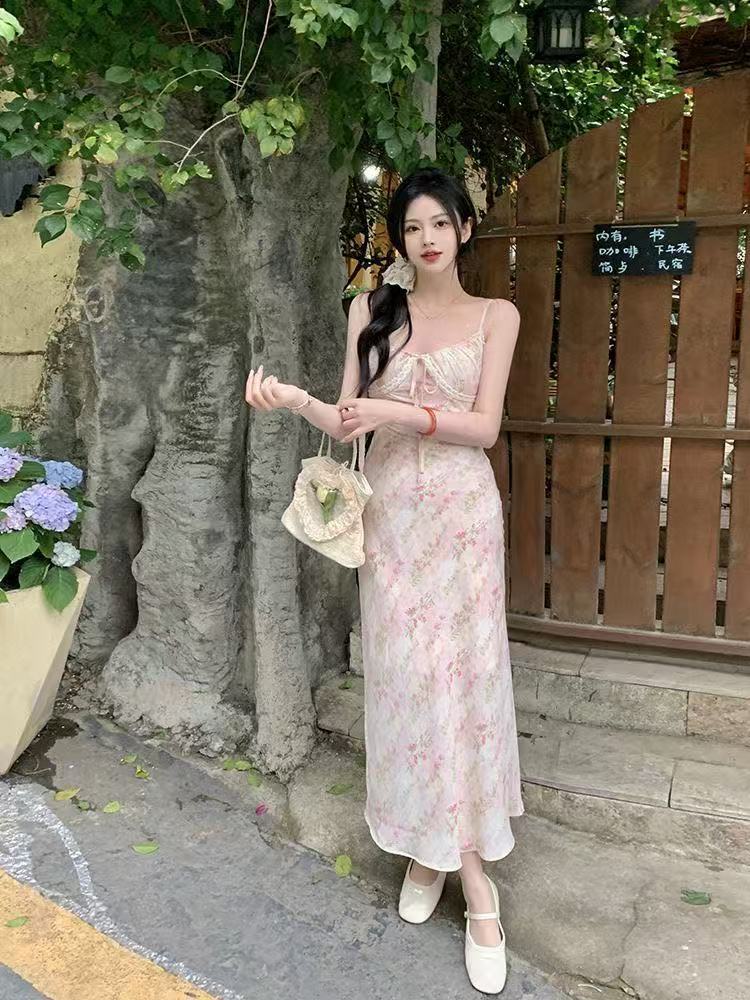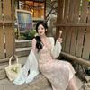 Vestido de tirantes floral para mujer, verano 2025, nuevo, falda larga francesa con empalme de encaje