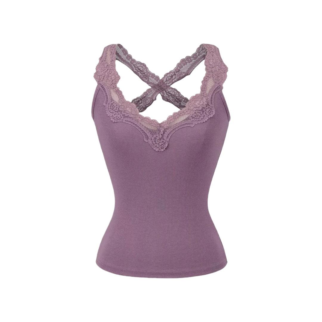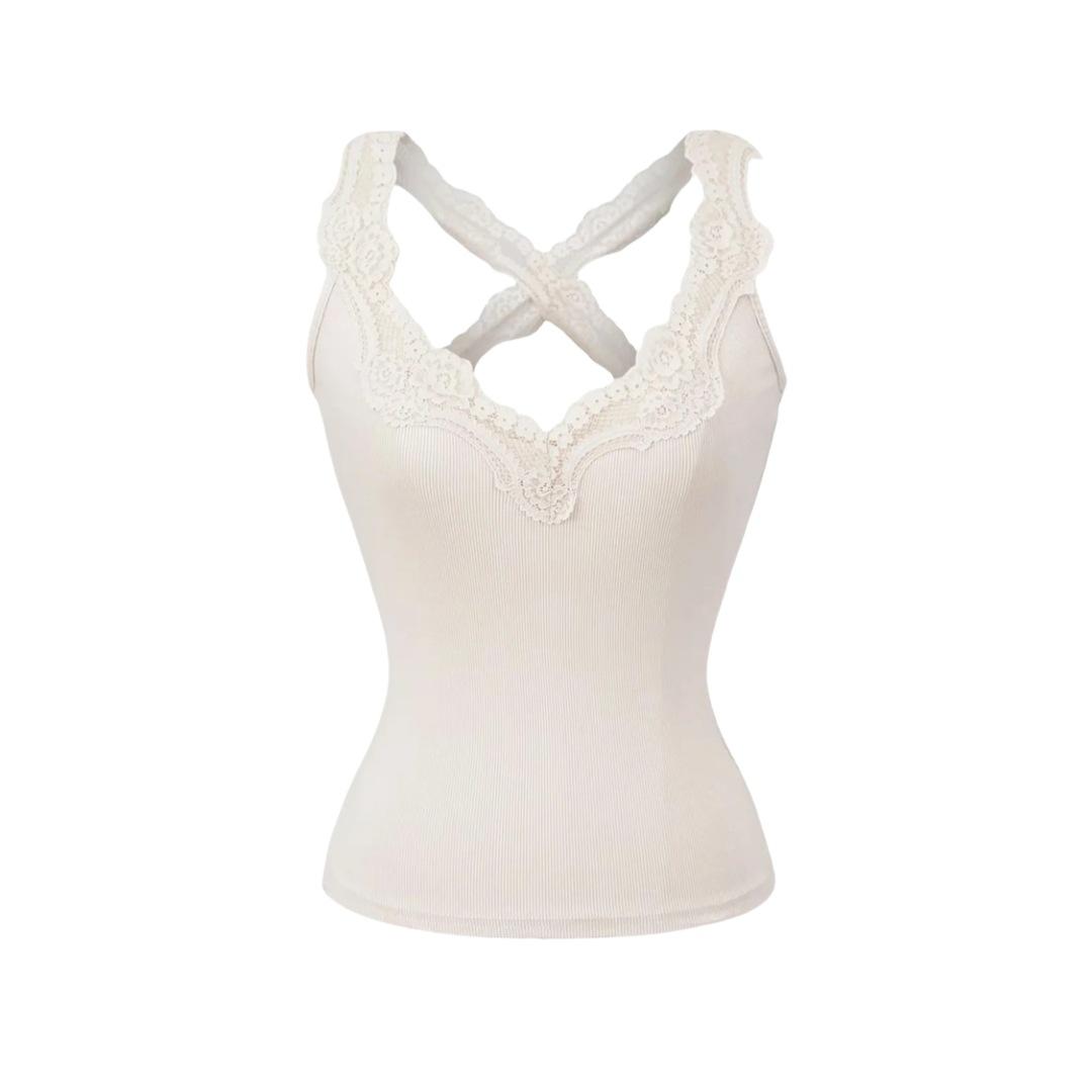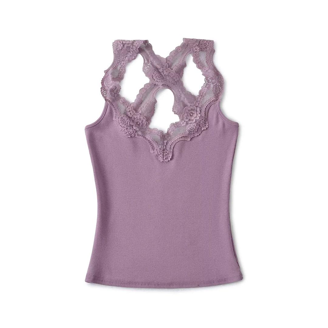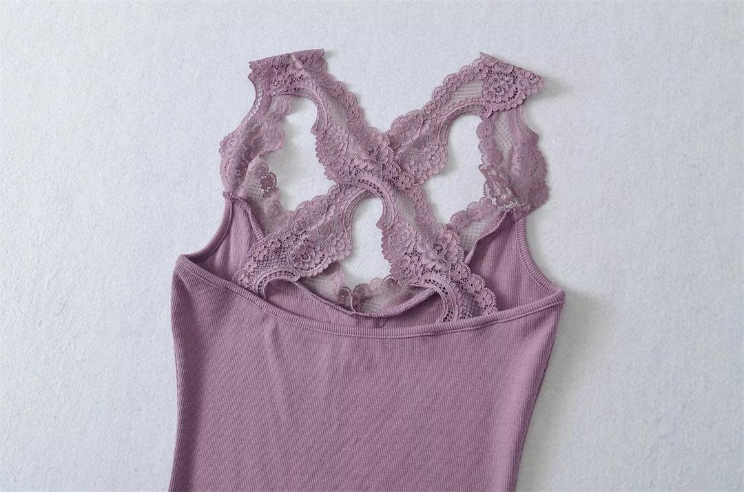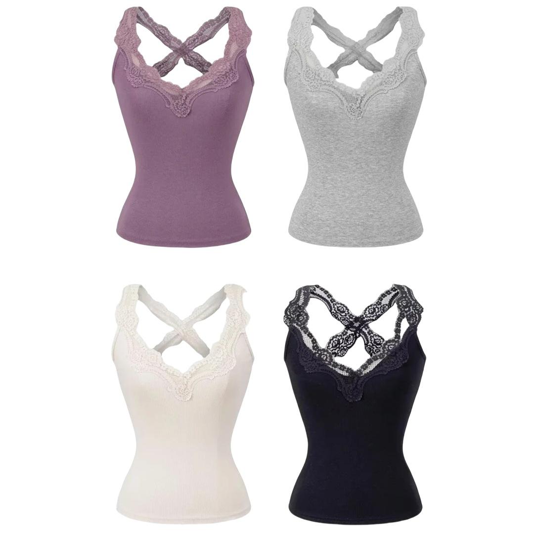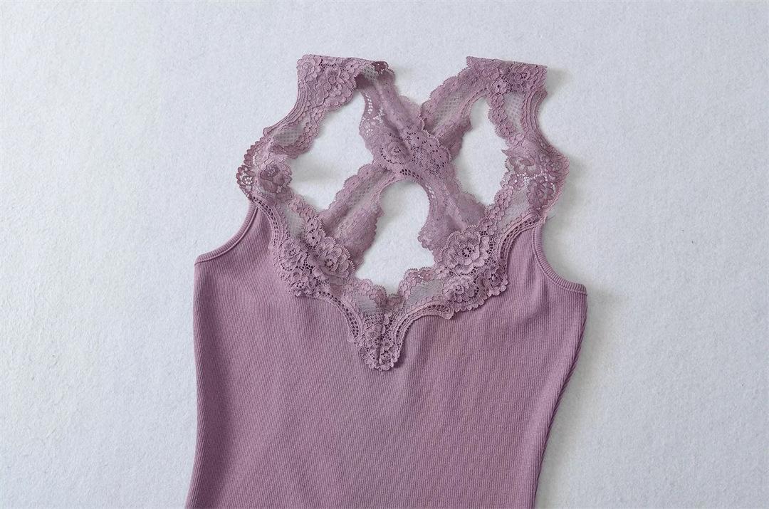 Chaleco Sexy de Encaje Cruzado en la Espalda de Color Sólido para Mujer Verano Nuevo Delgado Sin Mangas Tirantes Top Básico para Usar Exterior