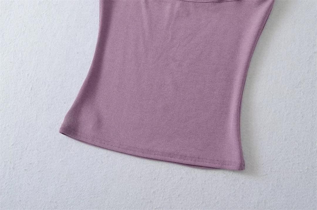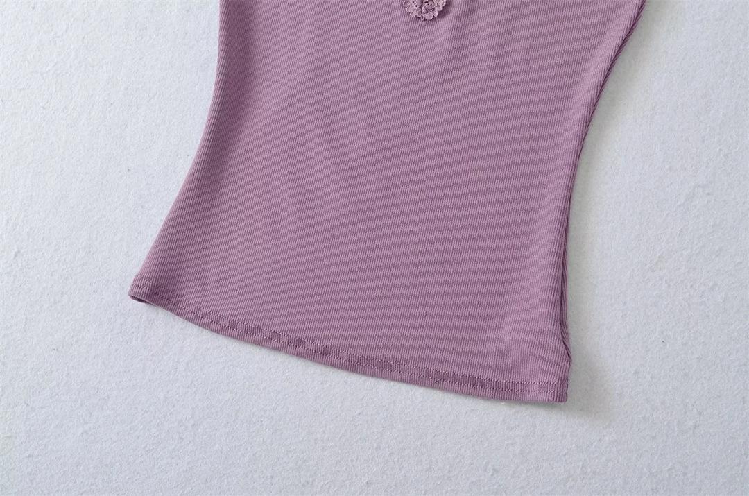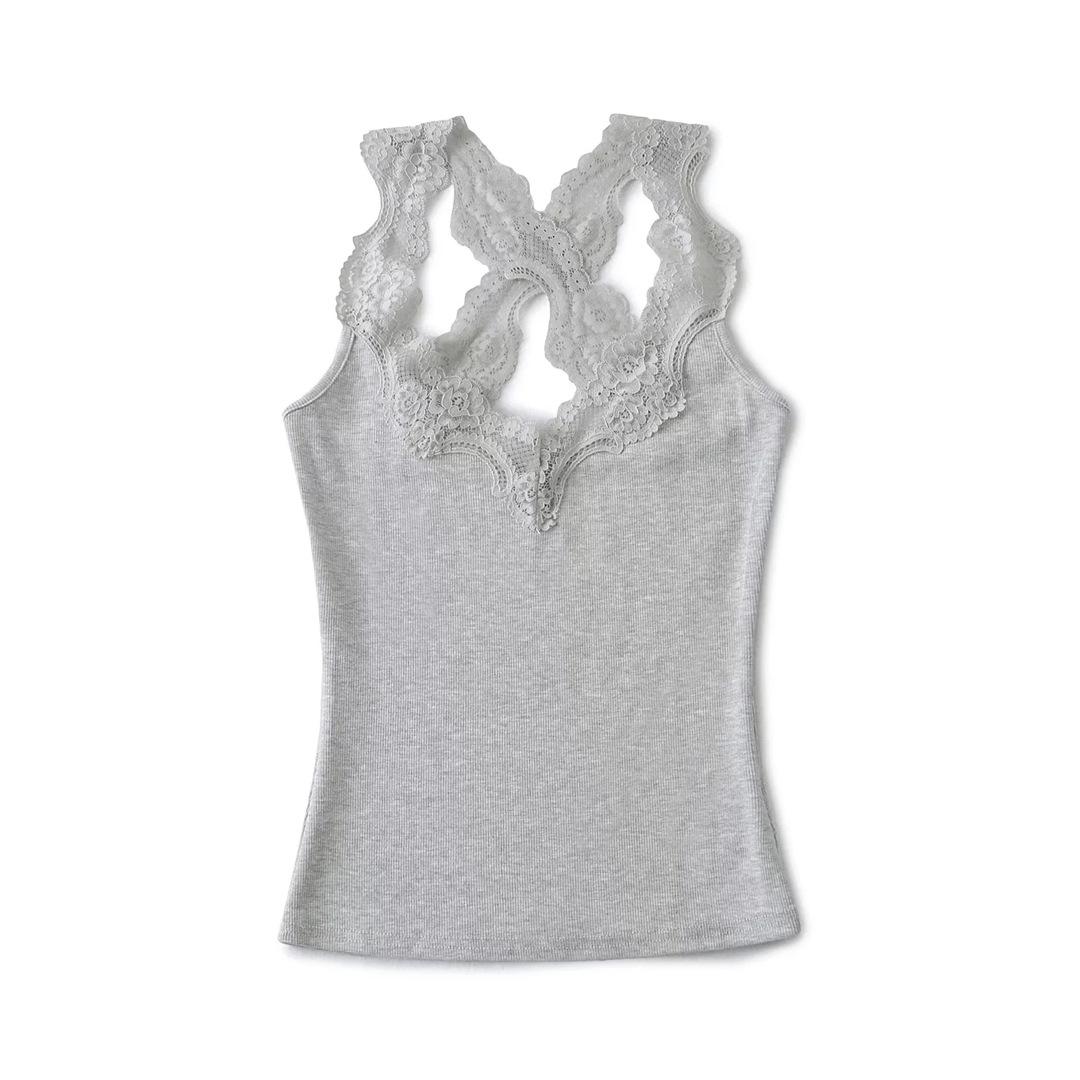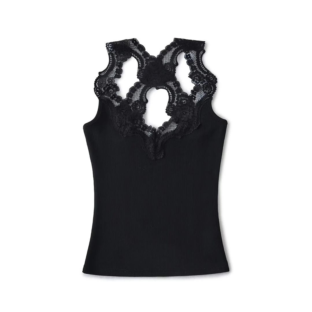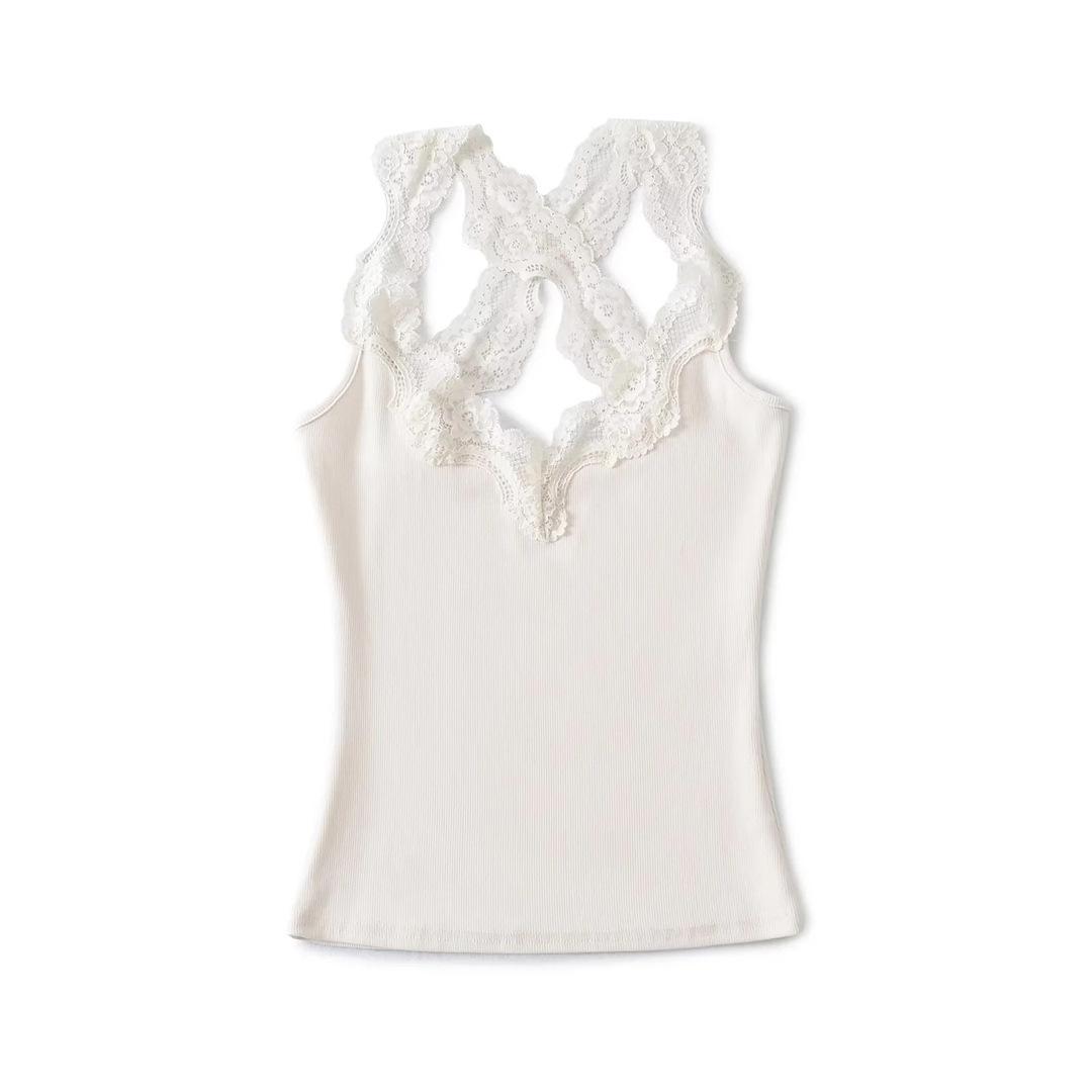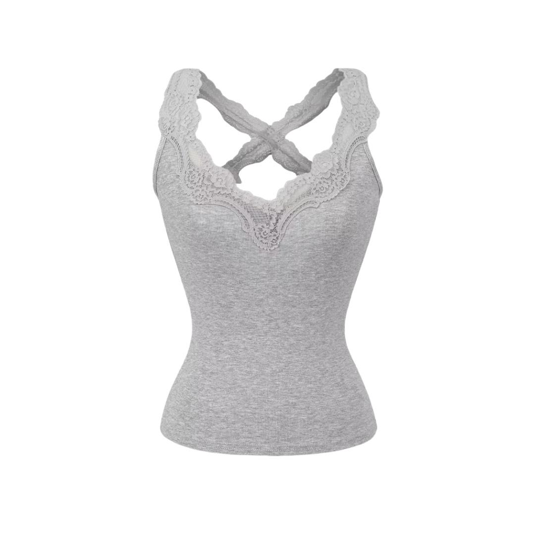 Chaleco Sexy de Encaje Cruzado en la Espalda de Color Sólido para Mujer Verano Nuevo Delgado Sin Mangas Tirantes Top Básico para Usar Exterior